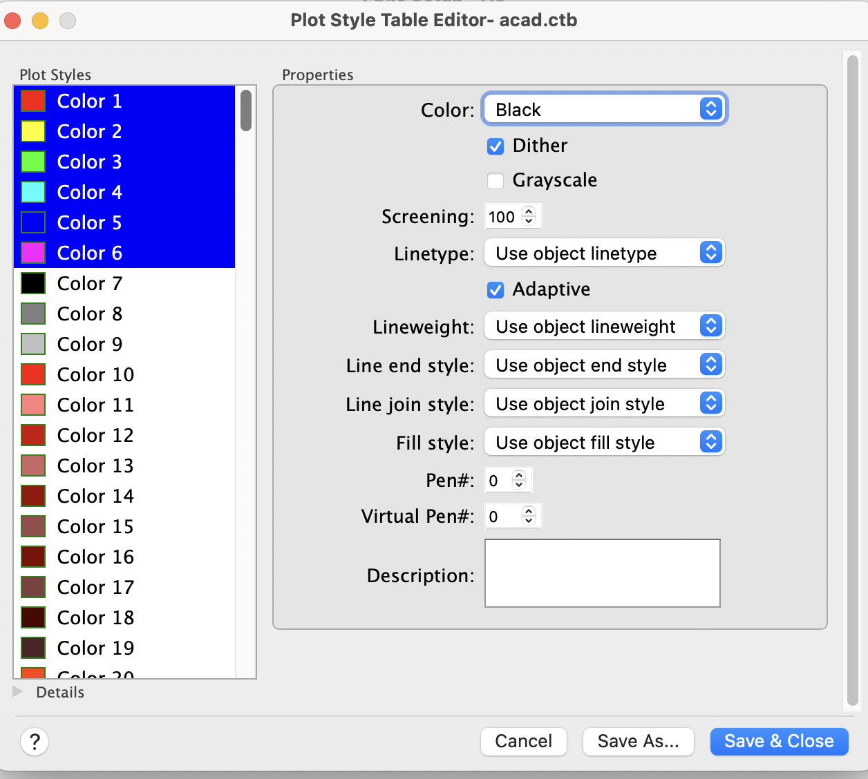 -Ajueste das espessuras da linha, editando o ficheiro CTB para garantir uma apresentação gráfica mais precisa.