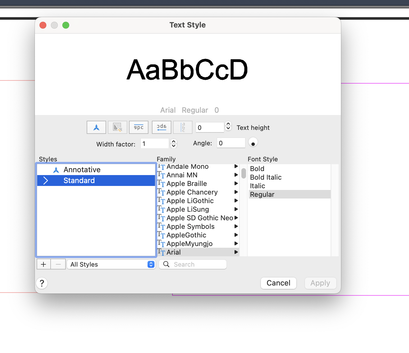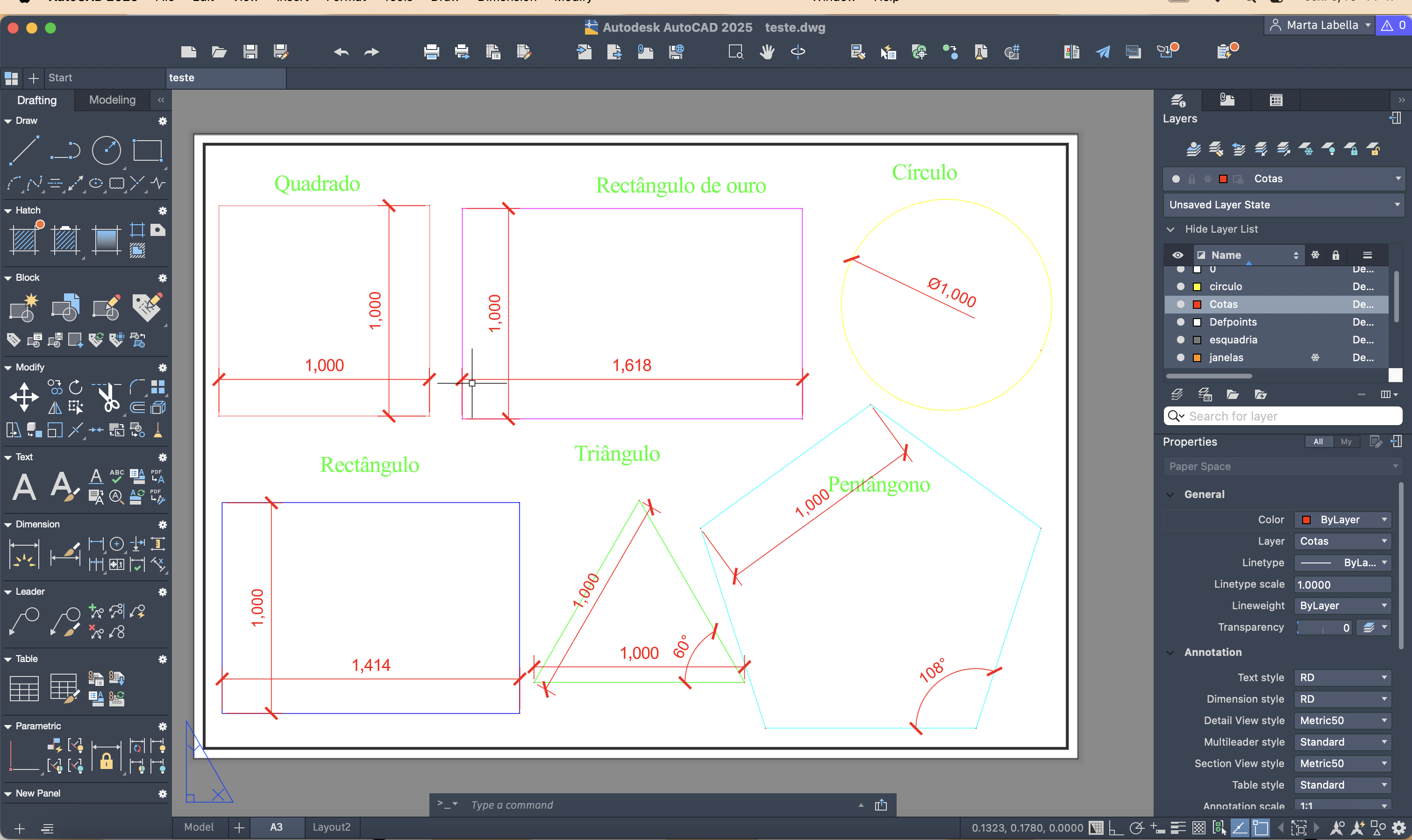 -Uso do comando DIM e DIMSTYLE para configurar os diferentes estilos de cotagem no Layout, incluindo a personalização dos tipos de letra utilizados.