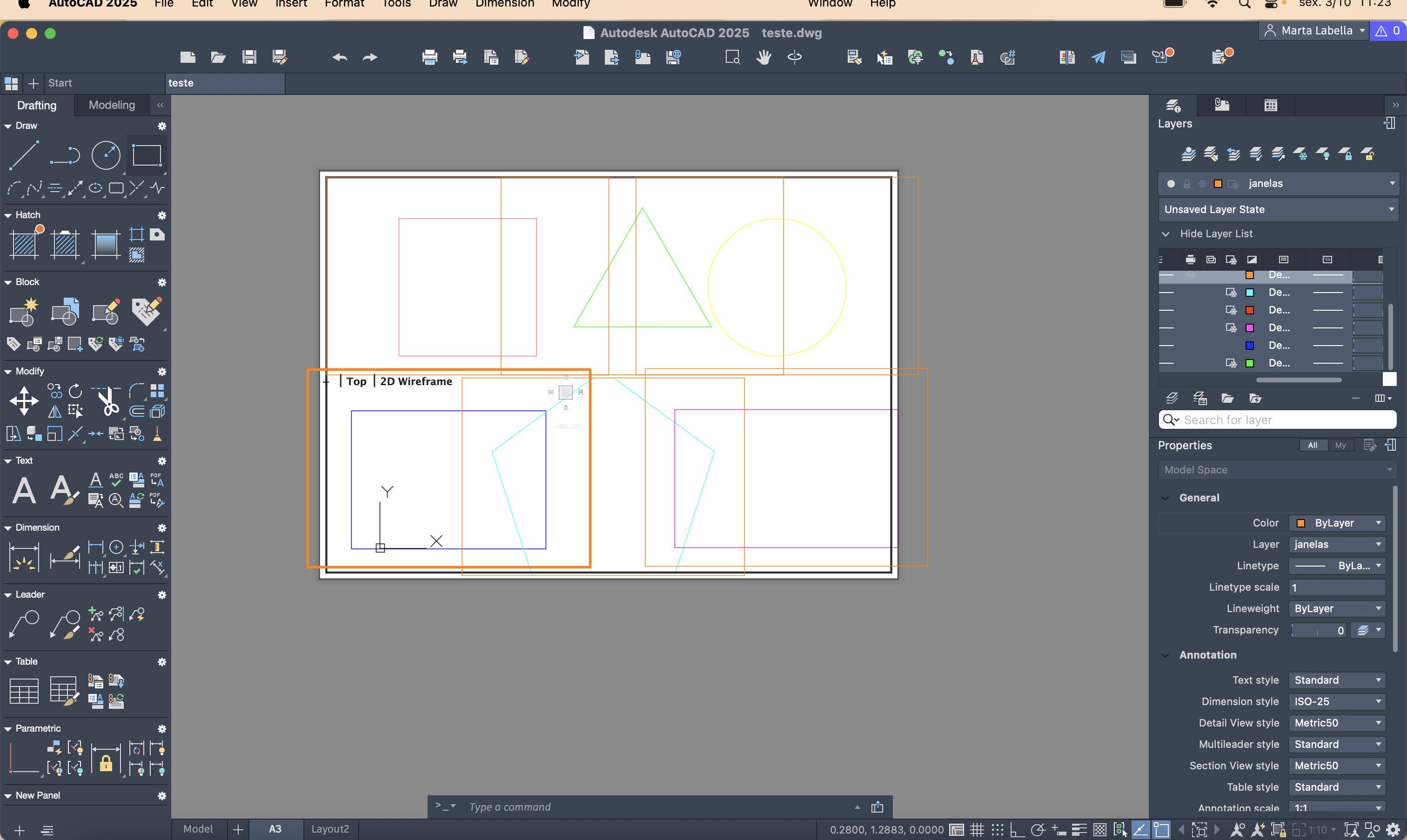 -Gestão de LAYERS, inclindo a criação, bloqueio e FREEZE, com o objetivo de controlar a visibilidade e a edição dos diferentes elementos do desenho.