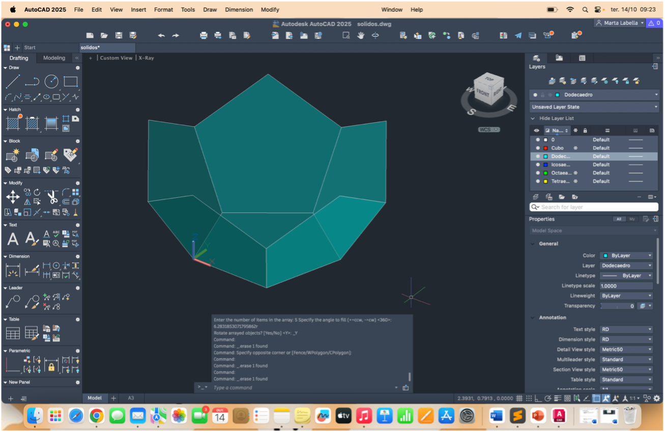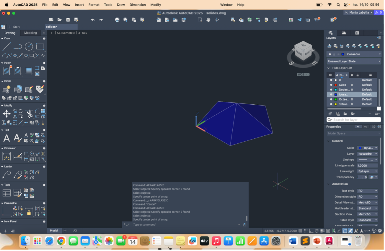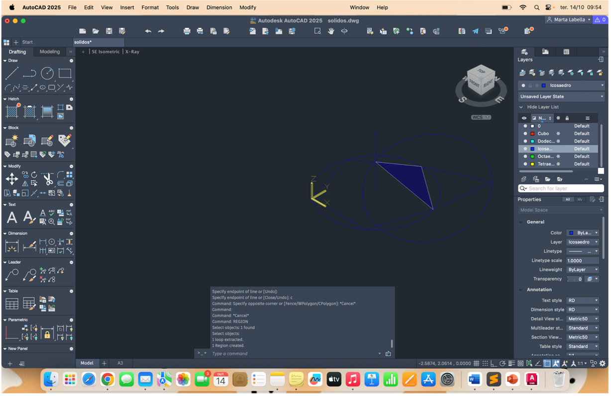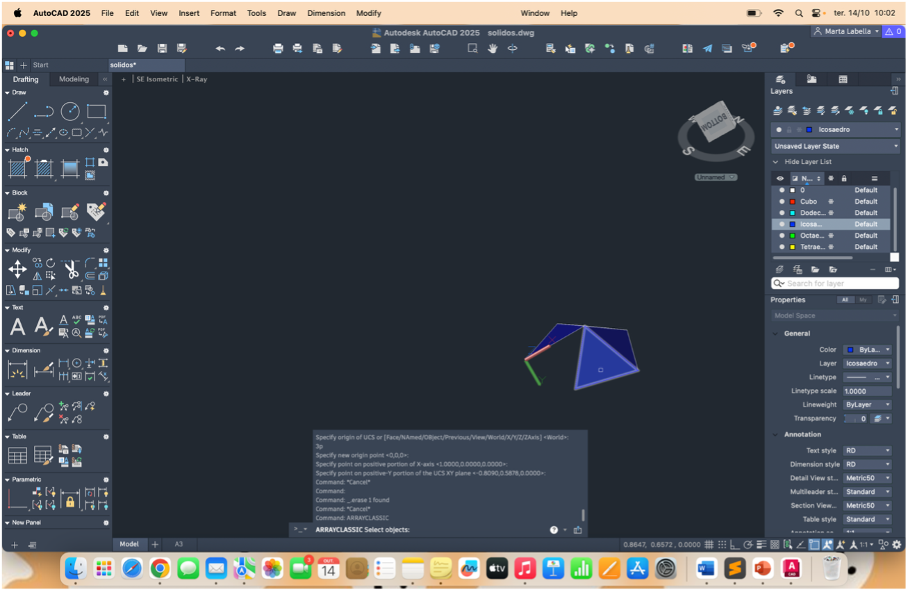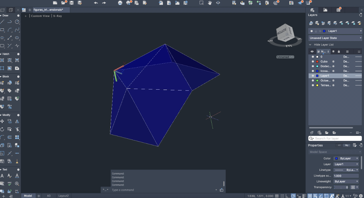 Criação de um triângulo e posteriormente a sua repetição, a partir da utilização dos comandos: POLYGON, CIRCLE, LINE, -VPOINT, UCS, 3DPOLY, REGION e ARRAYCLASSIC.