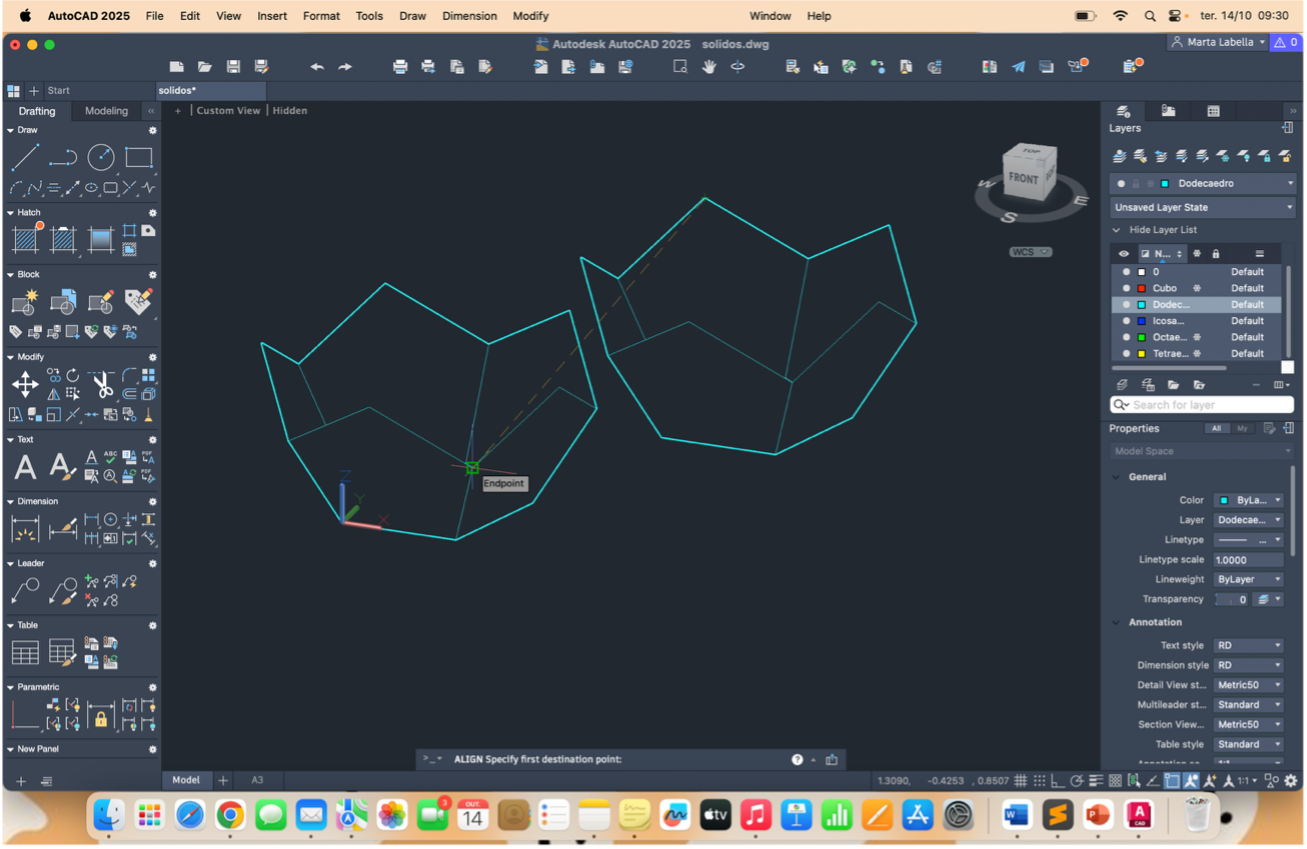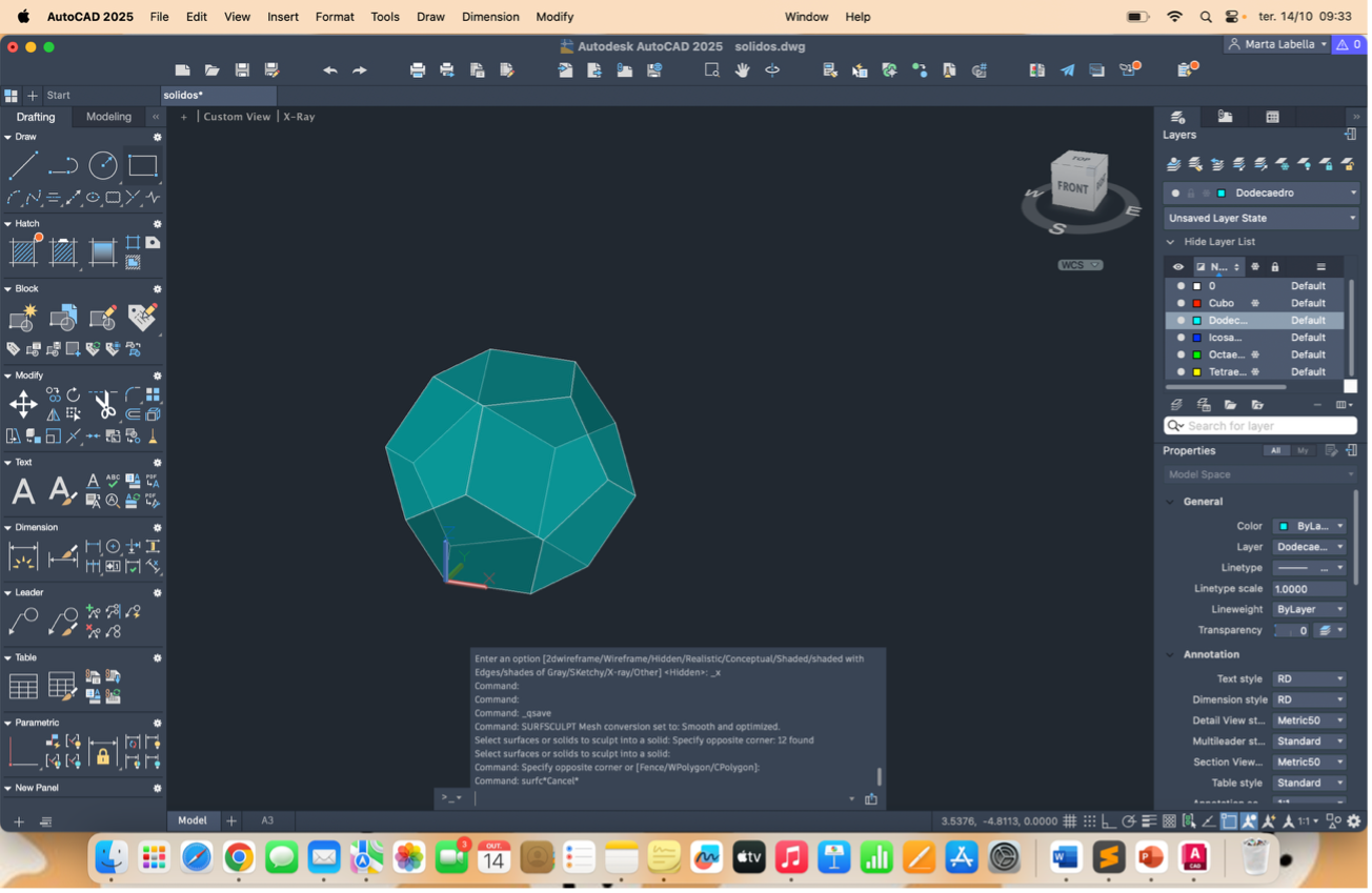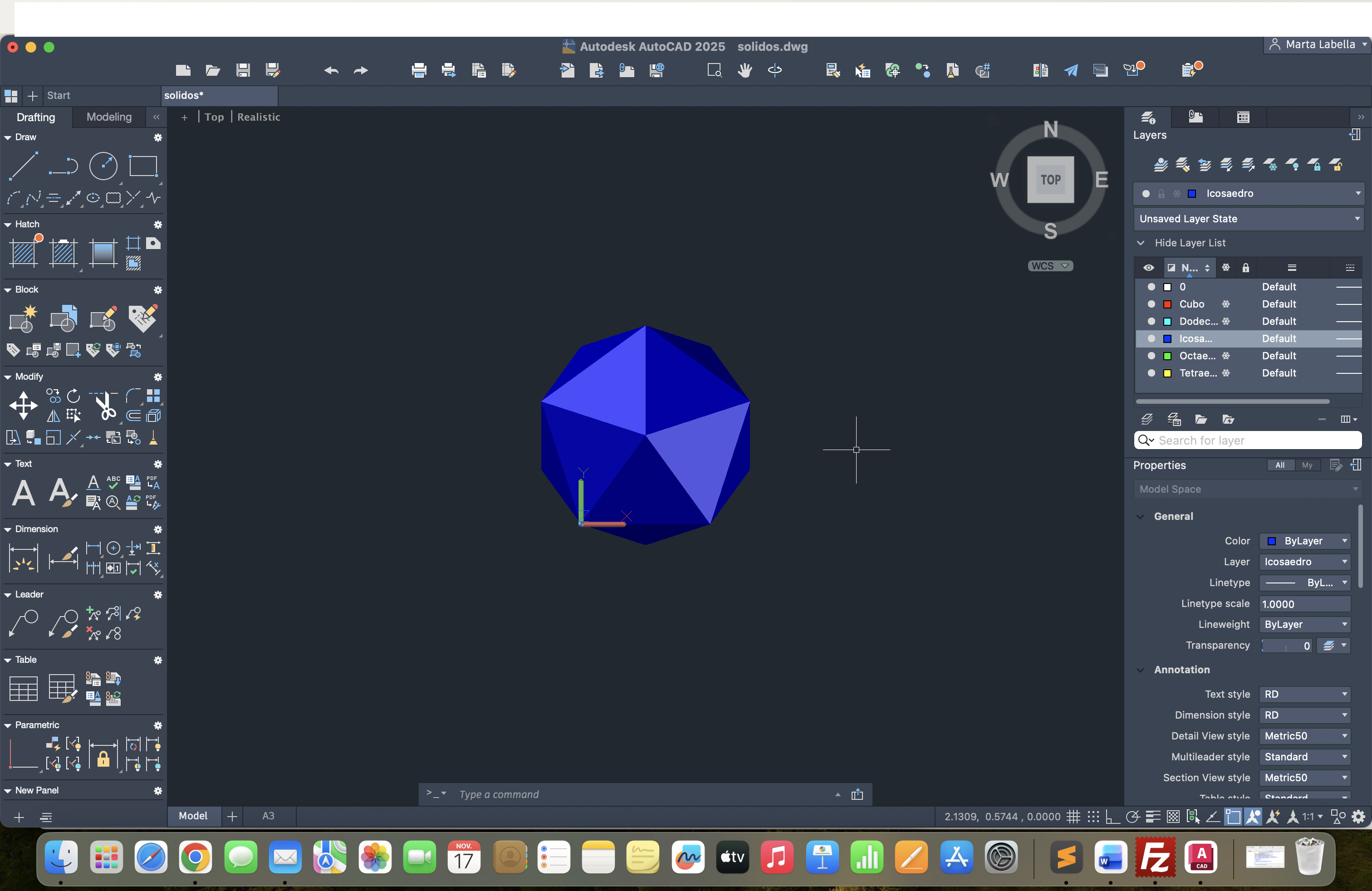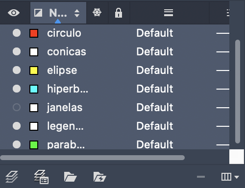 Criação de cinco layers diferentes para cada um dos sólidos a desenvolver:
