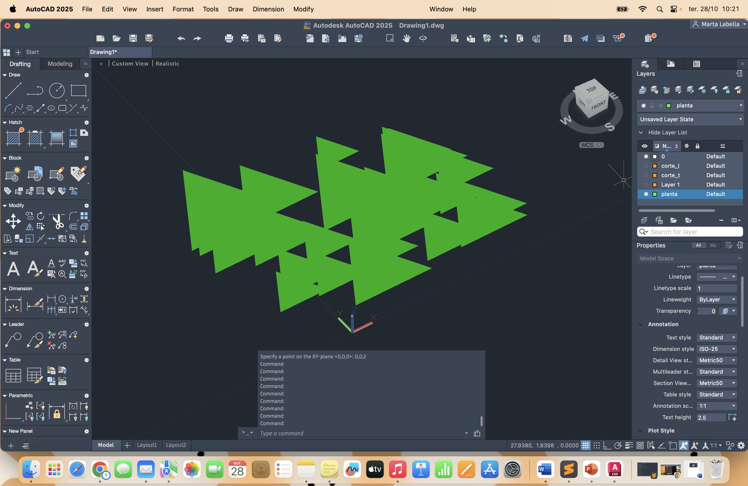 Colocação de legendas e cotas neste mesmo layout, com recurso aos comandos DIM e TEXT.