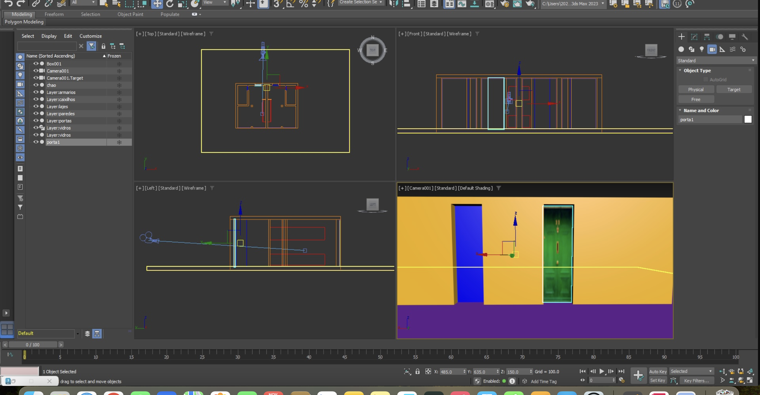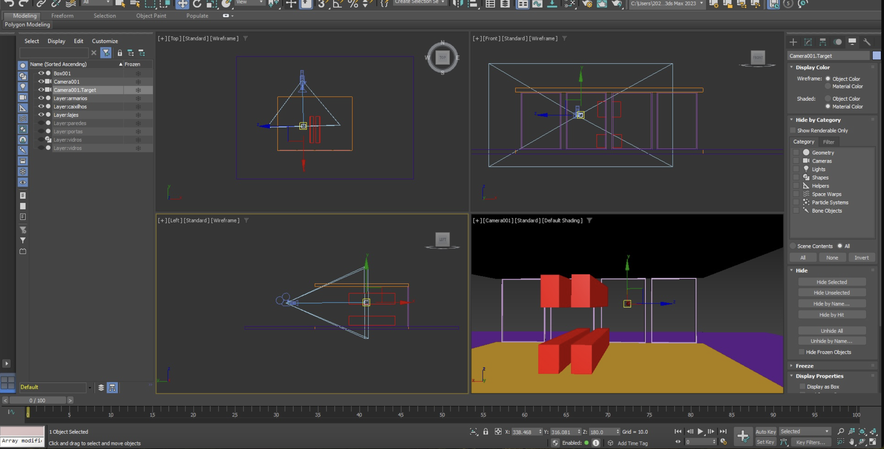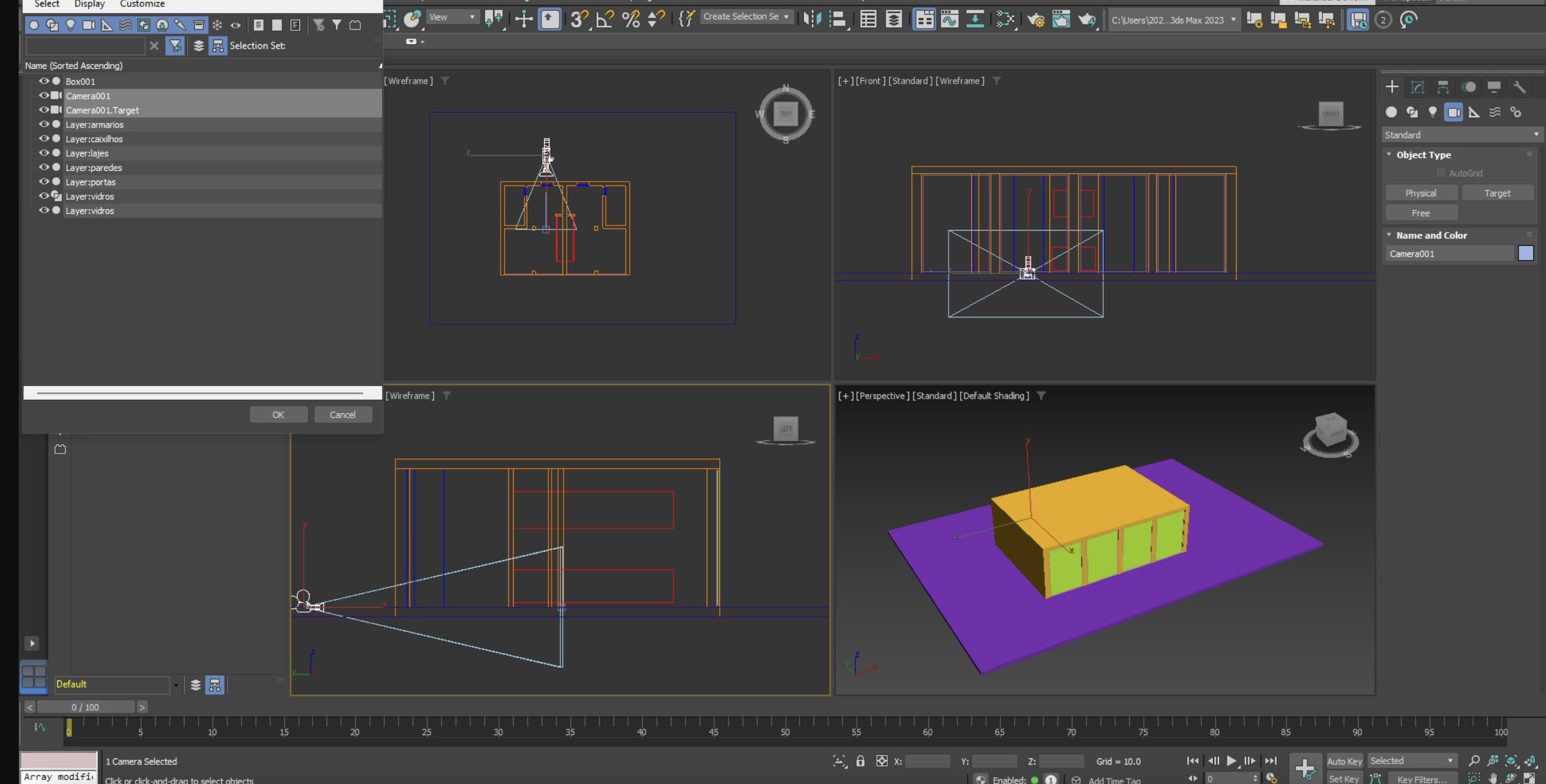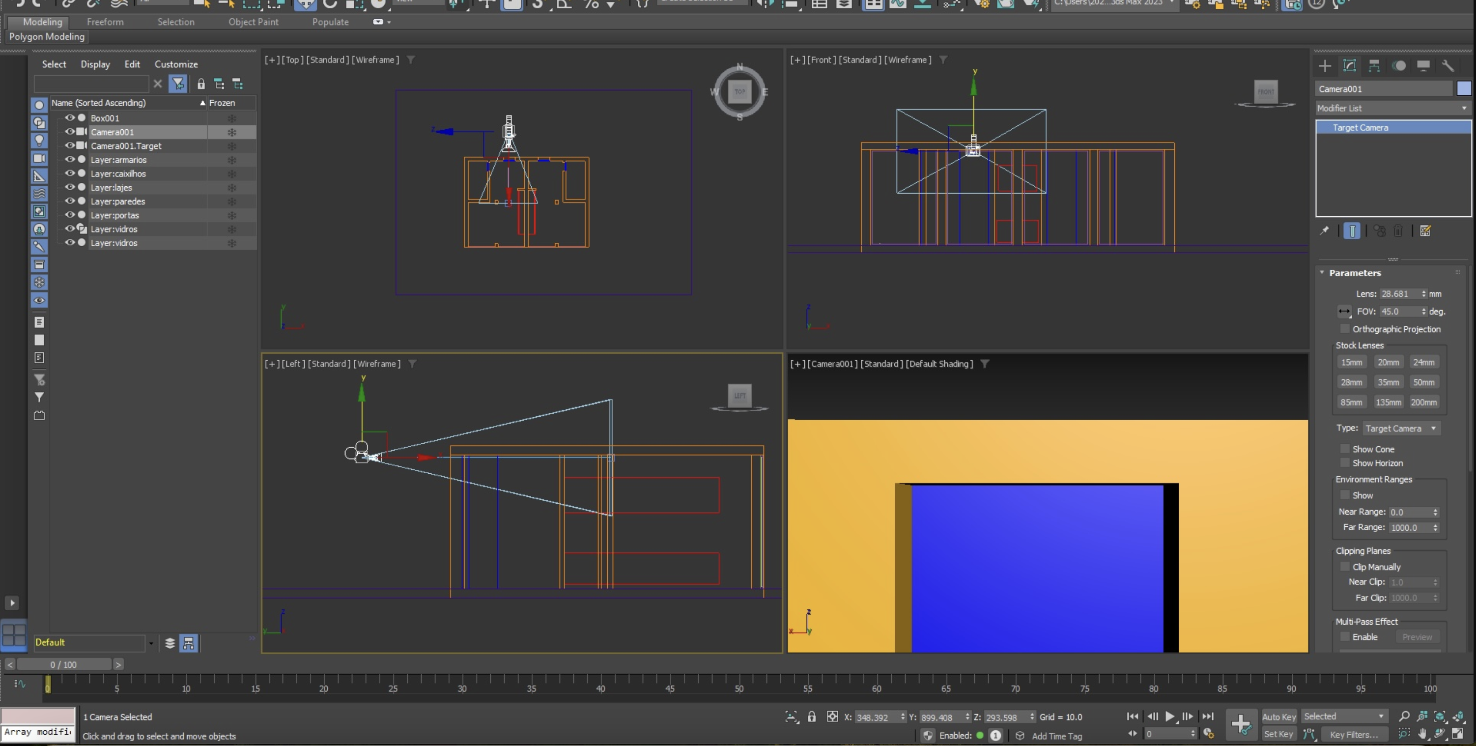 Criação de uma câmara target, Câmara 1, e respectivo manuseamento.