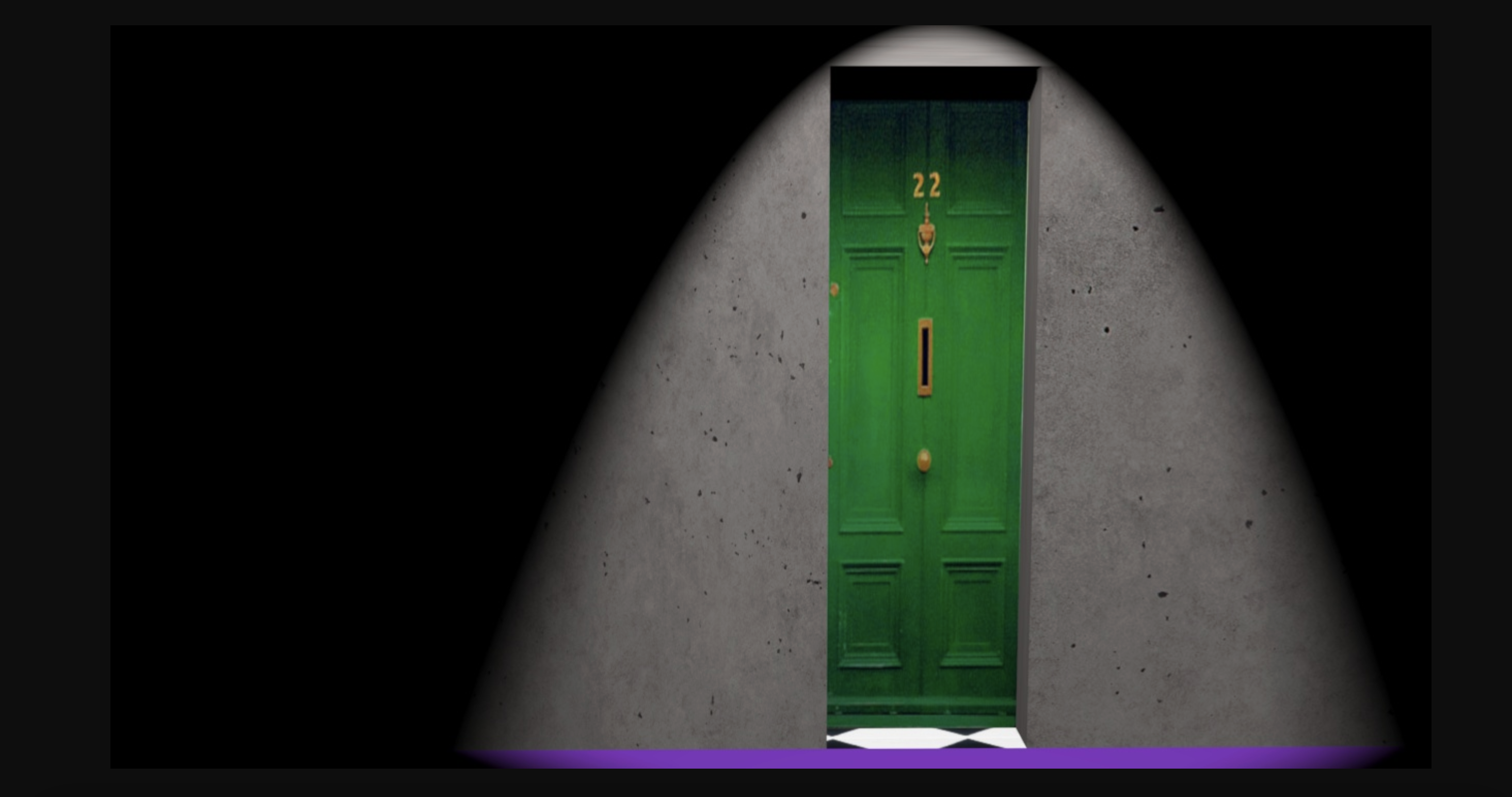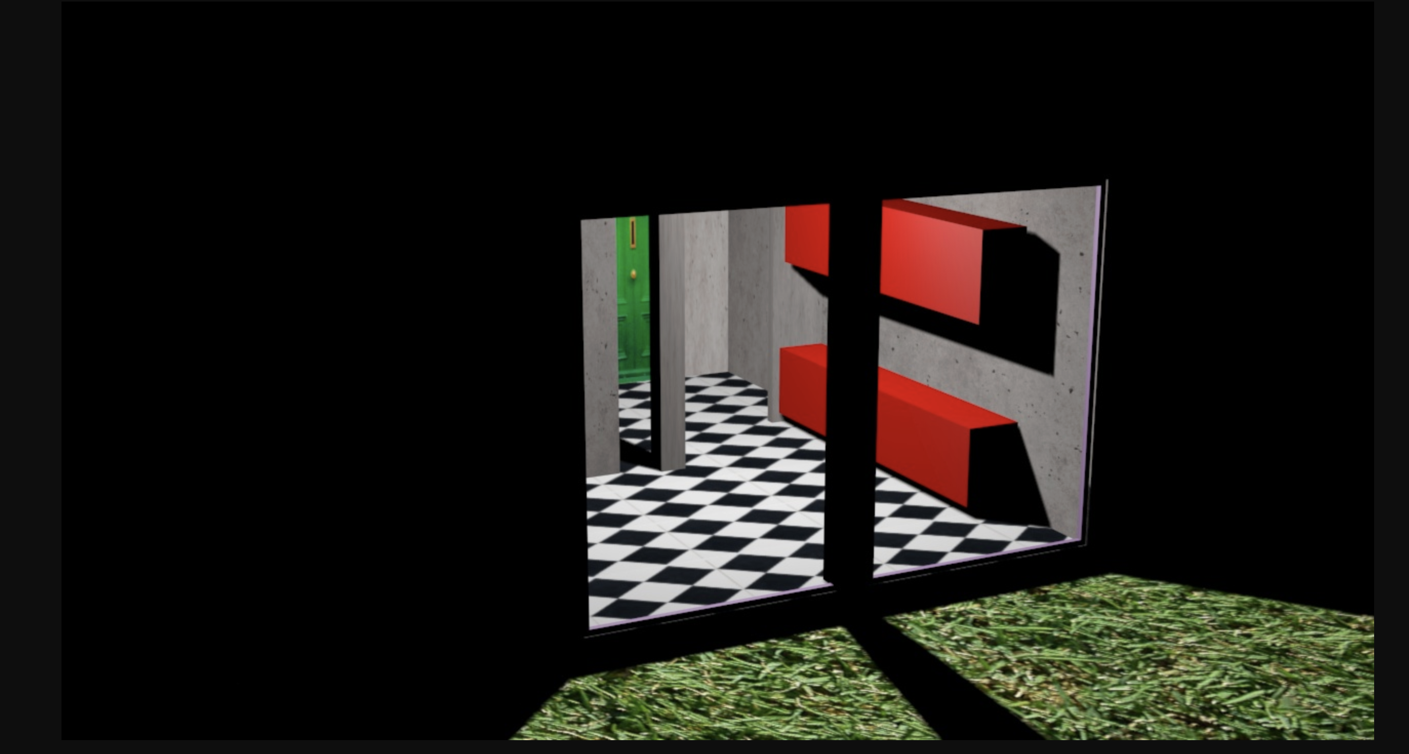 Perspectiva do T0 através da uma outra câmara, com outro foco de luz vindo do interior da sala.