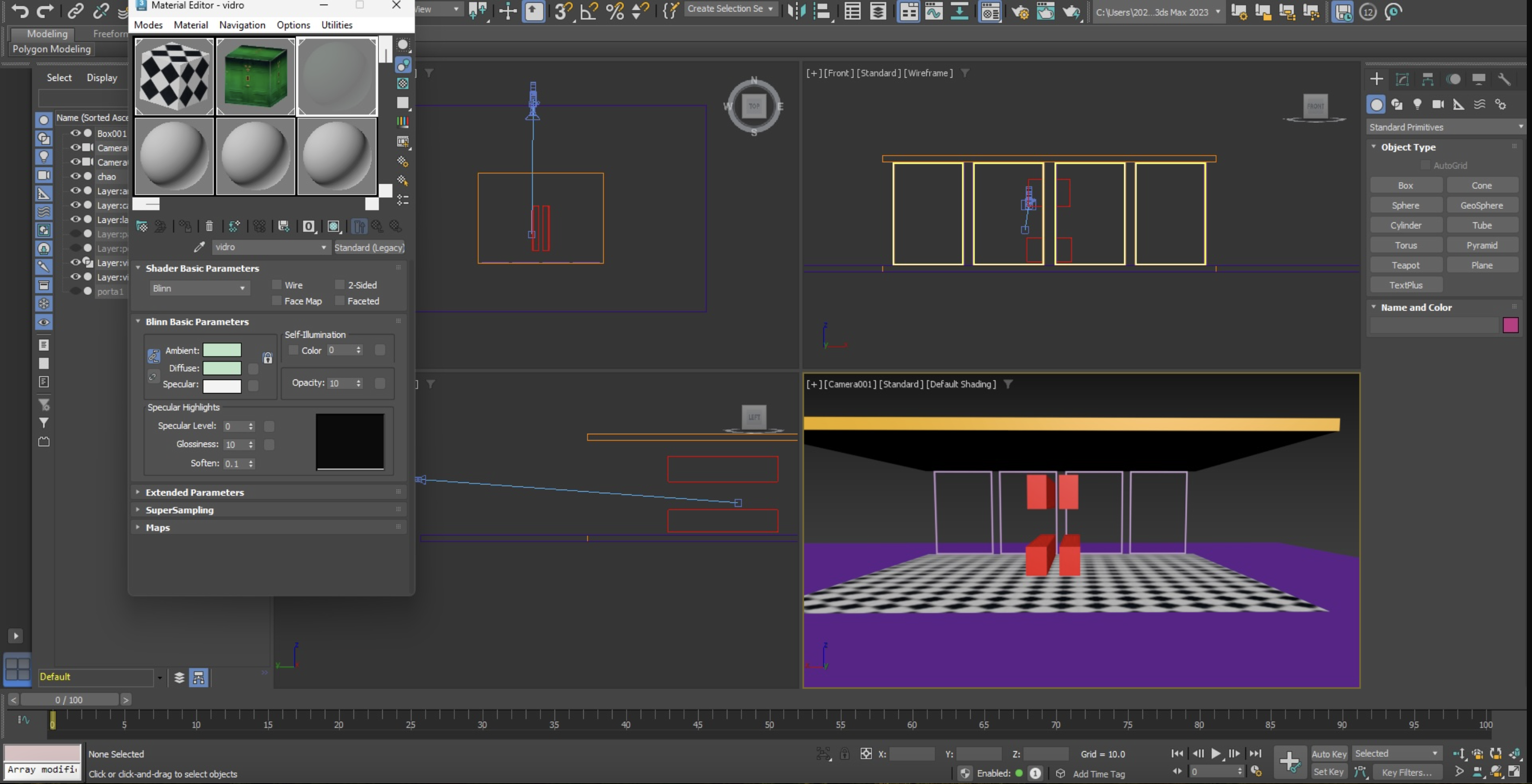 Criação do material vidro através da cor azul-esverdeada com baixa opacidade.