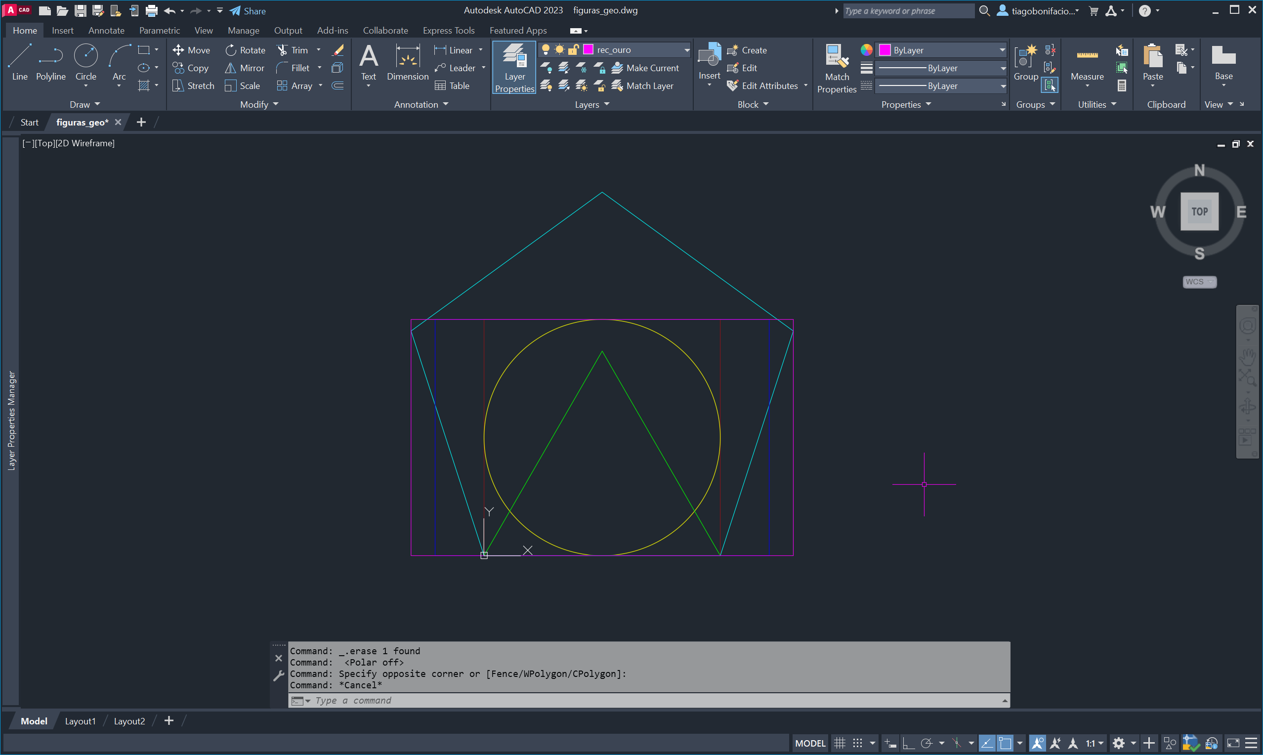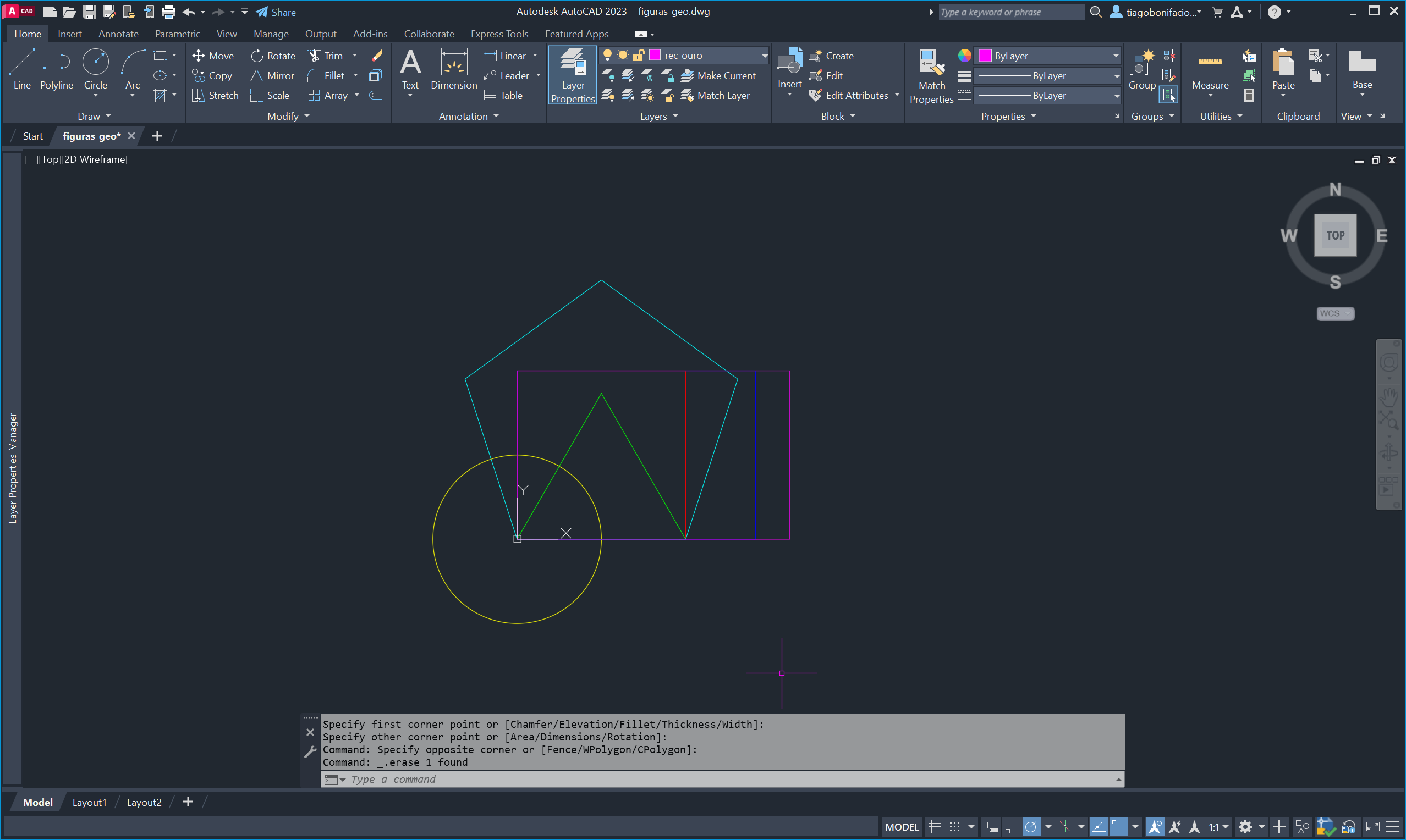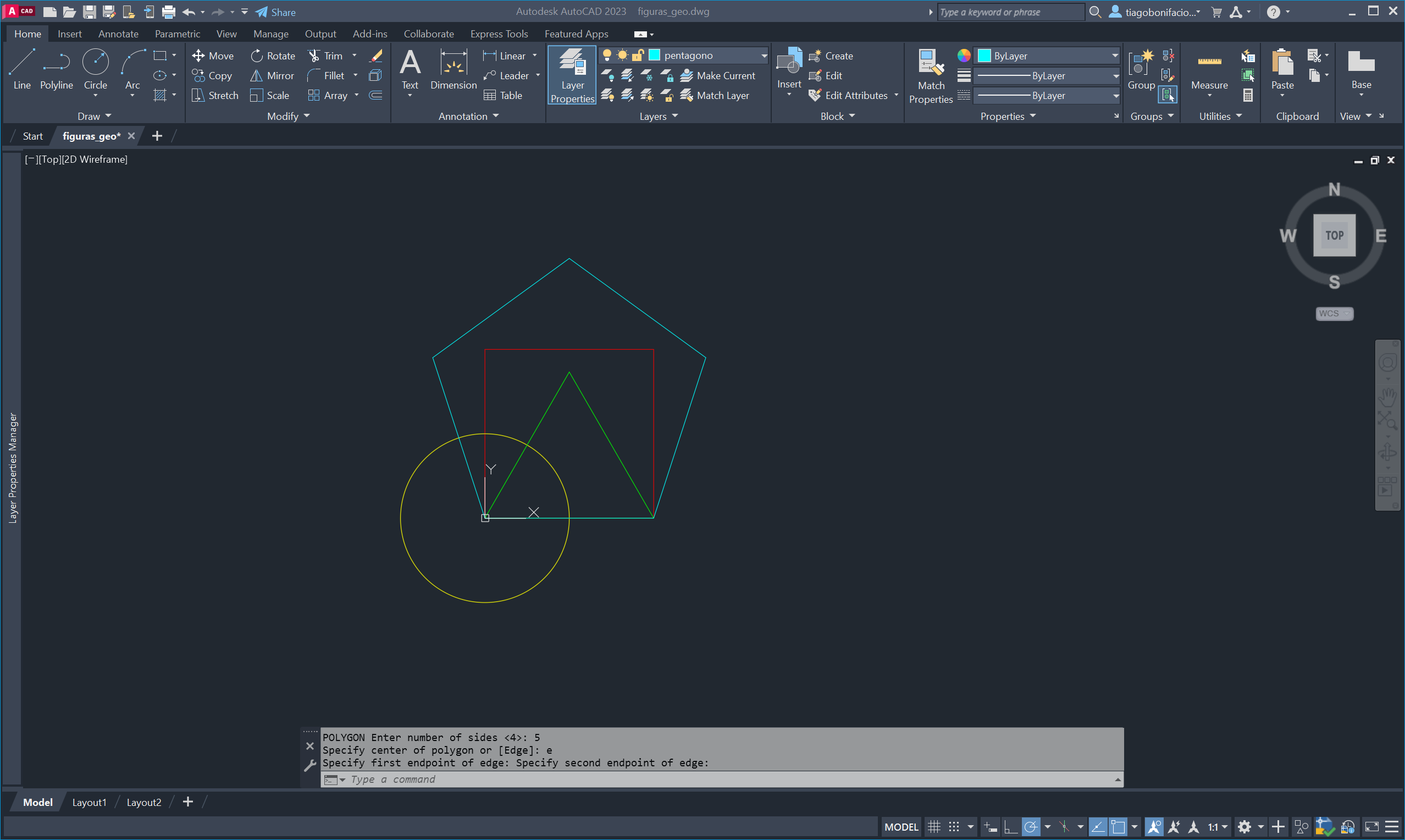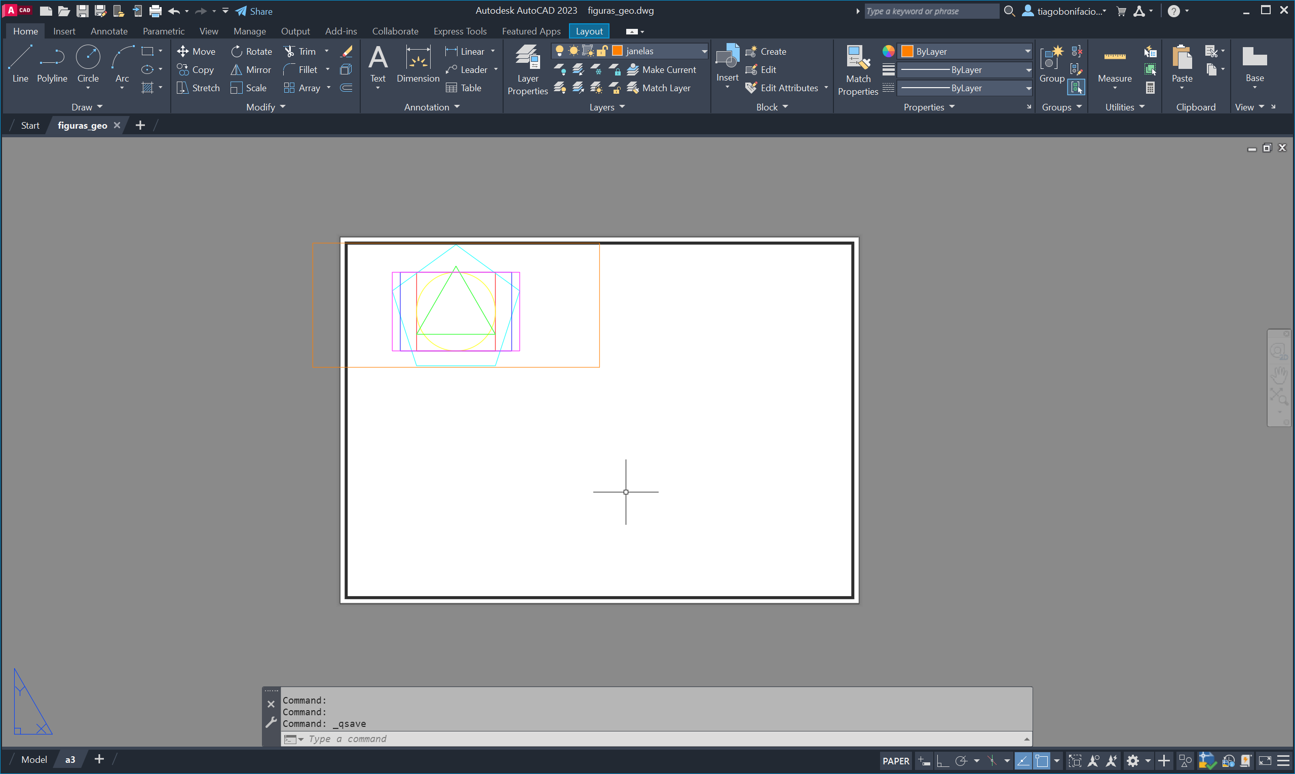 No final da aula, aplicaremos o comando MOVE para movimentar o centro dos polígonos para o centro do quadrado.