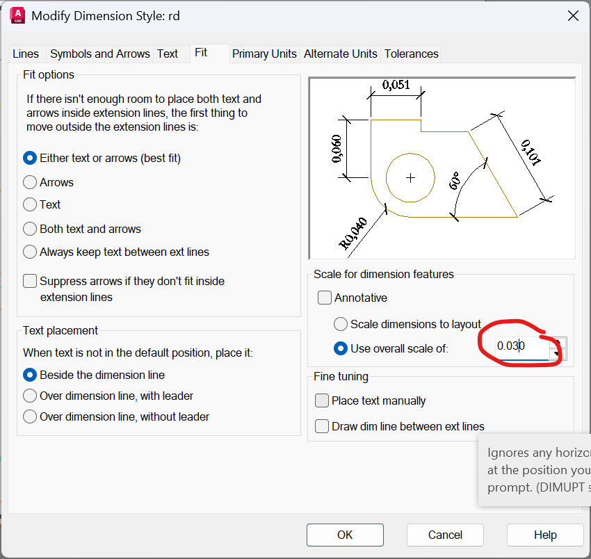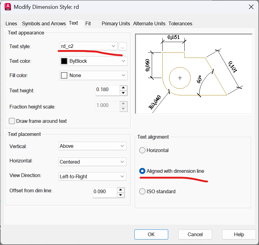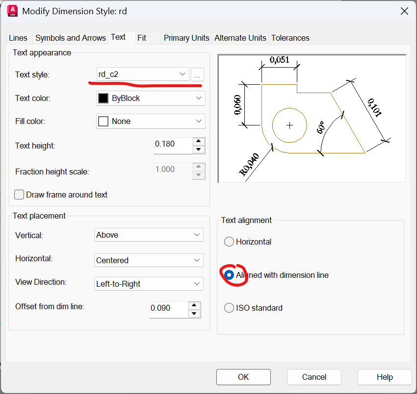 Inserção e formatação de textos dinâmicos (dtext) para anotações e legendas.