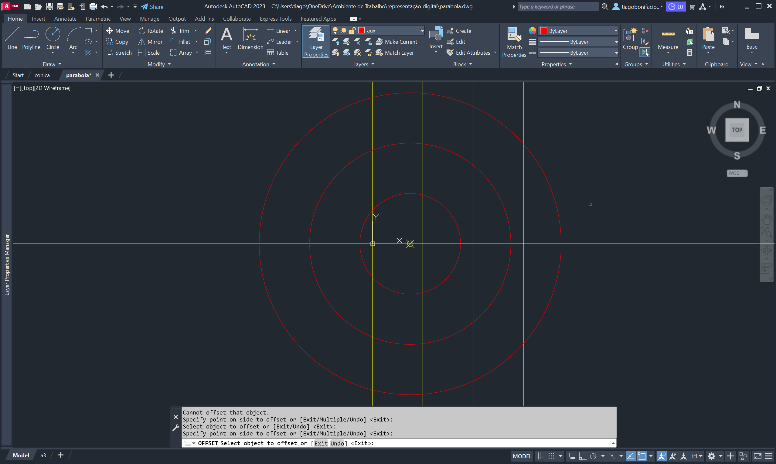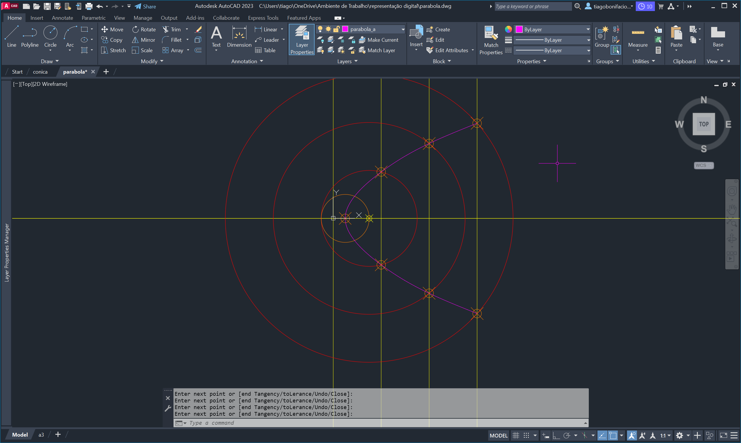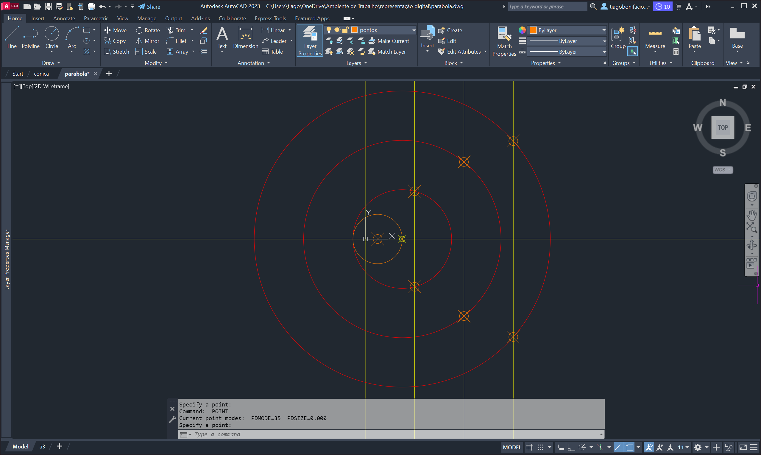 circunferências paralelas, originando pontos pelos quais traçámos uma curva com o comando