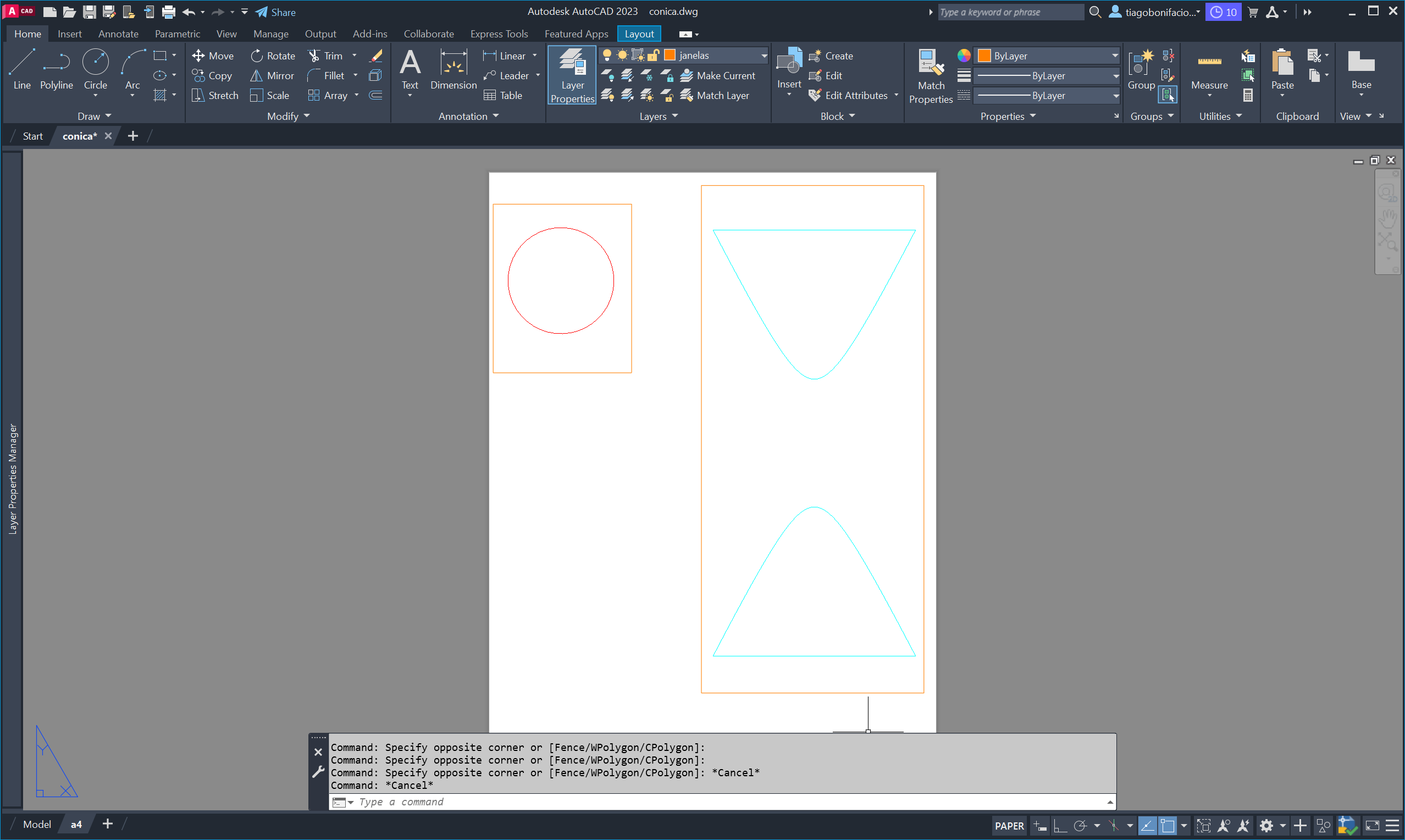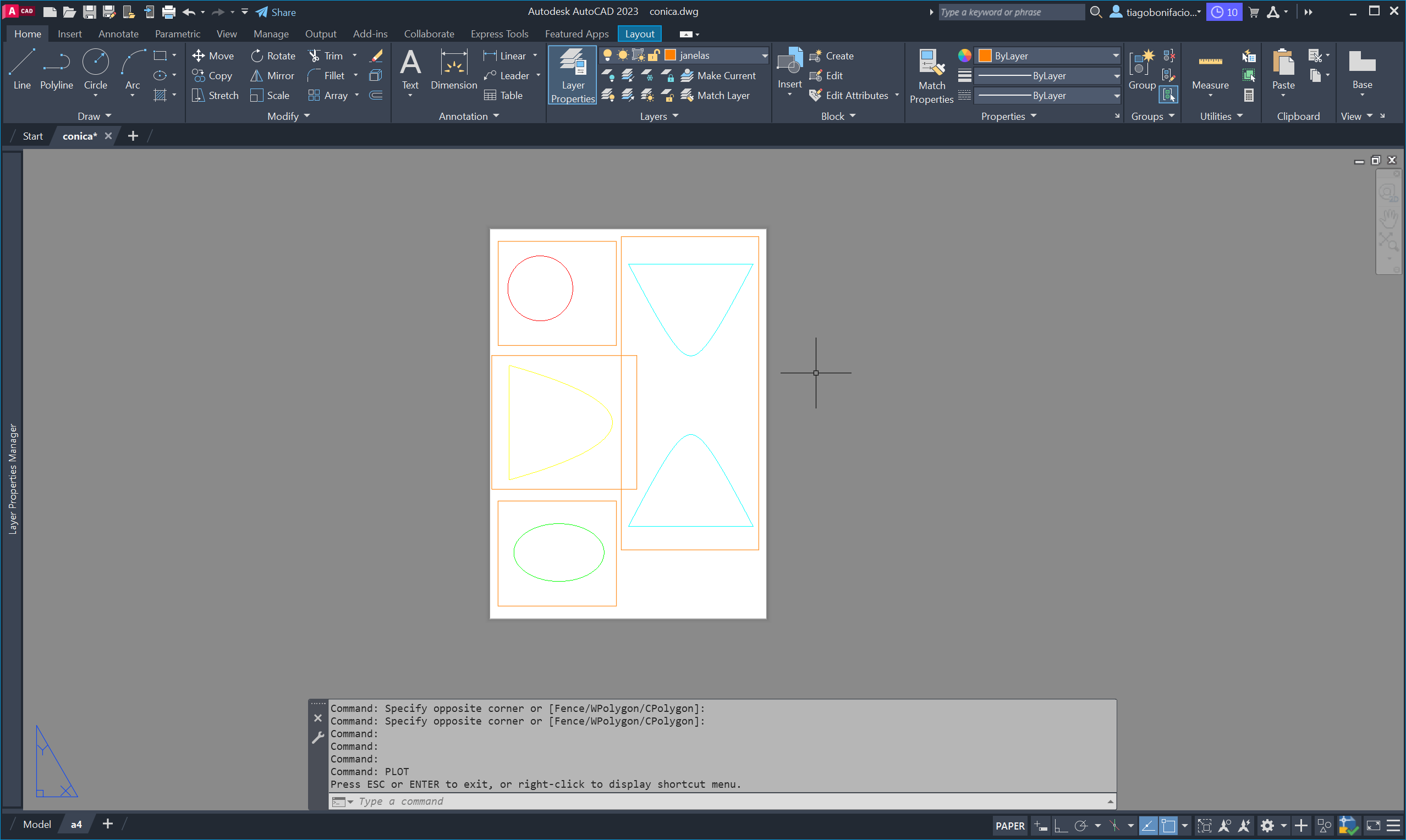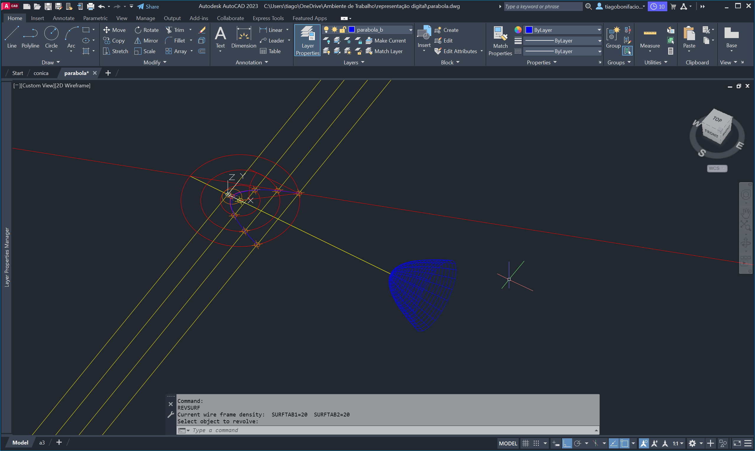 e a hipérbole, recorrendo ao comando PLAN e aos UCS anteriormente gravados.