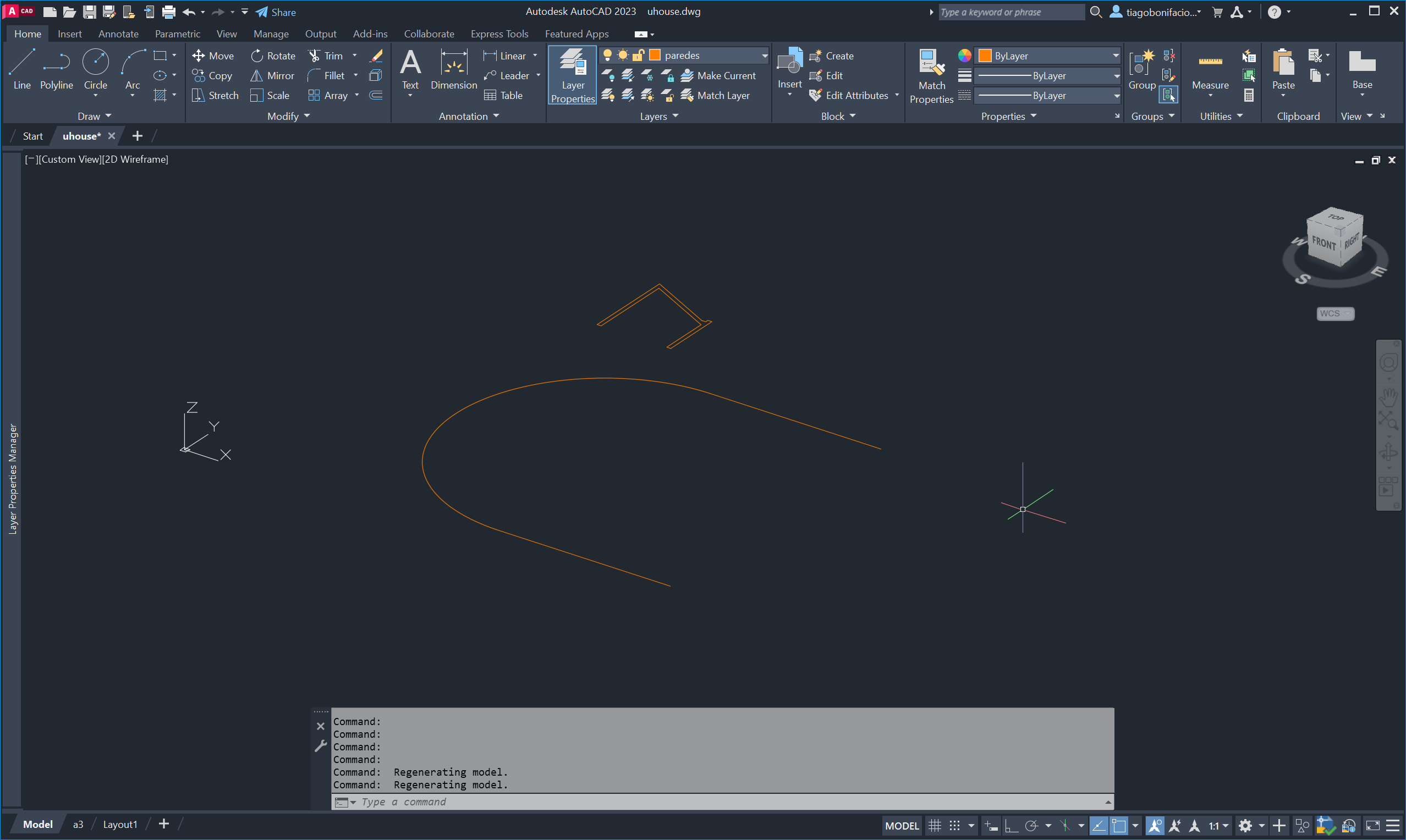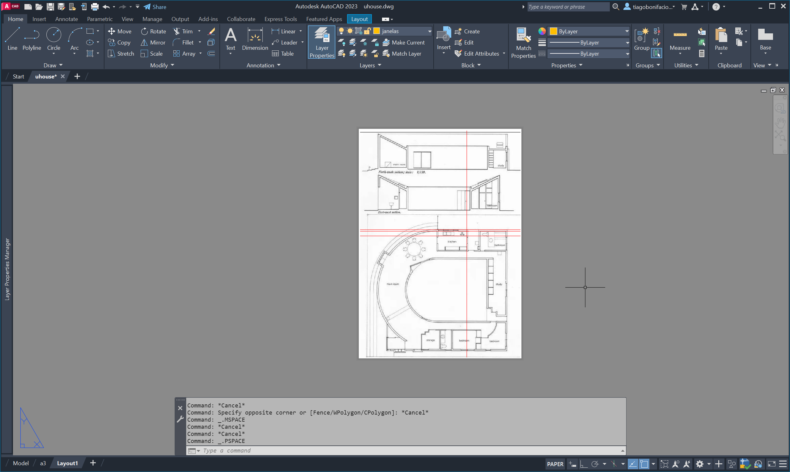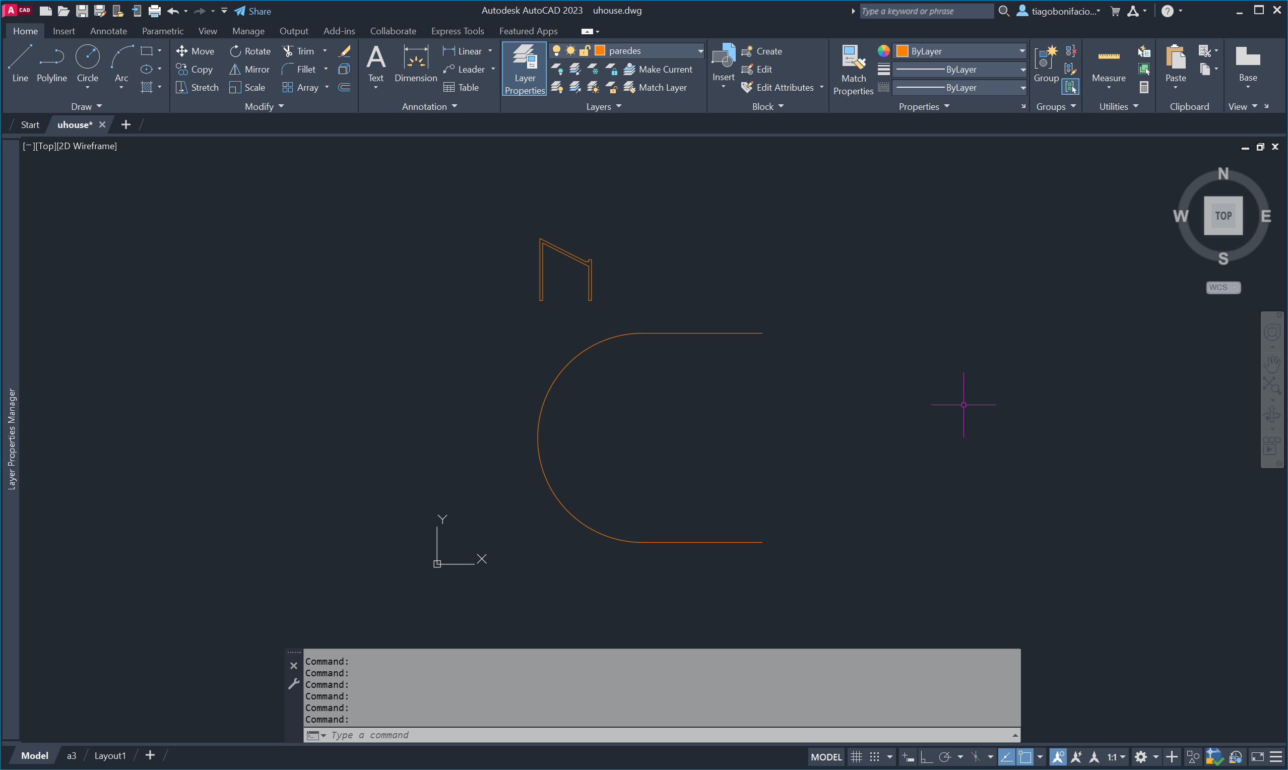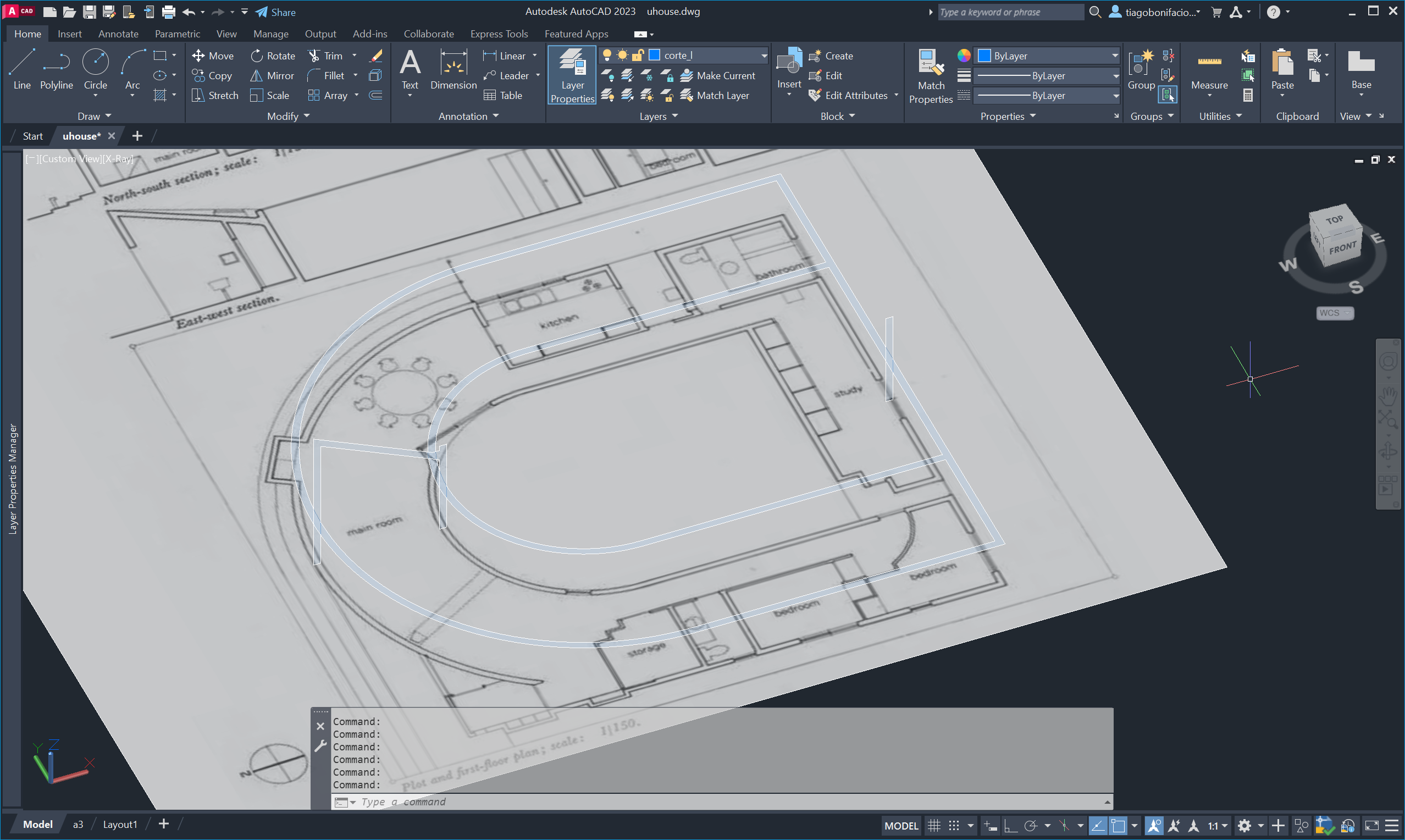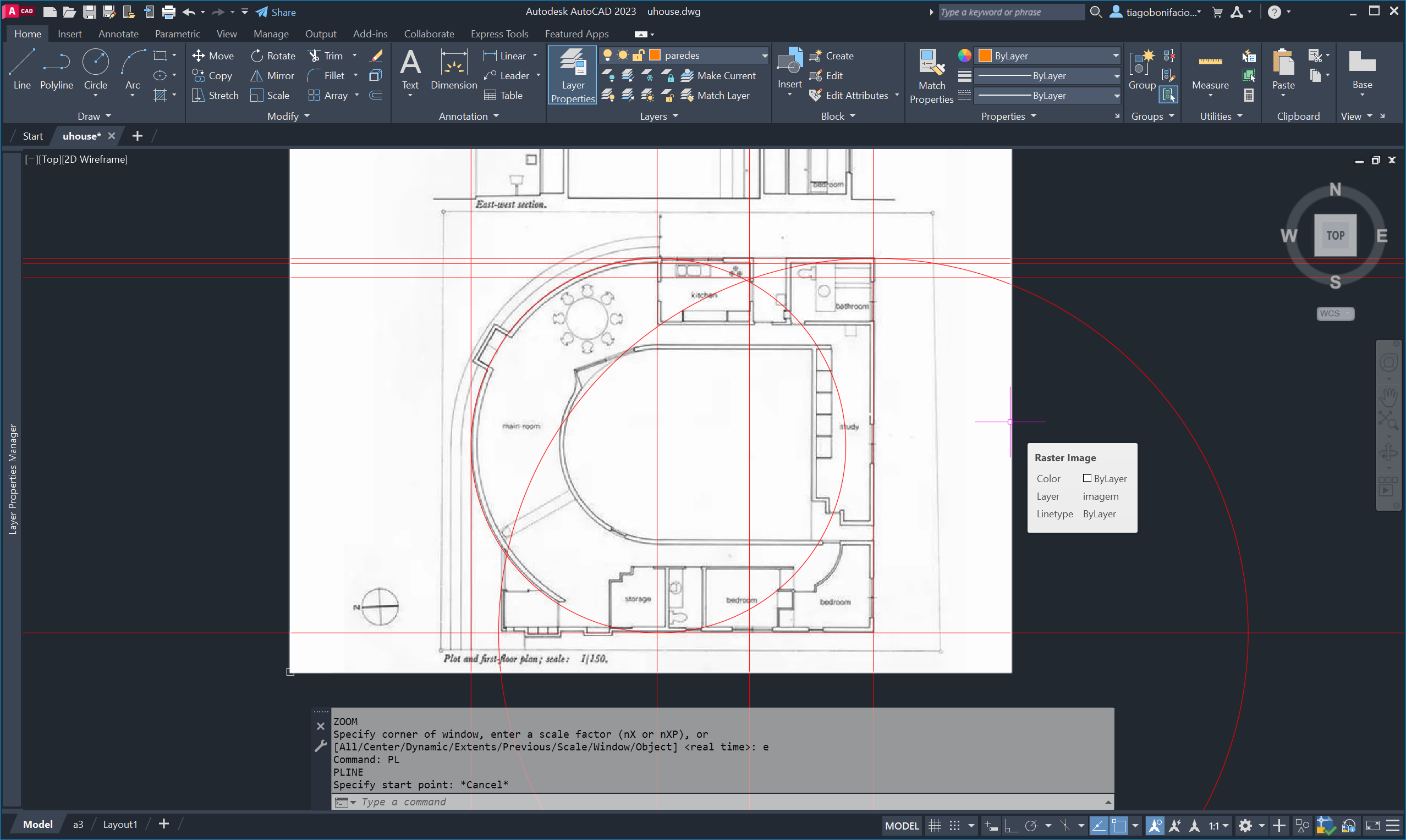 Nesta segunda aula da semana trabalhámos com a planta da casa uHouse, criando linhas auxiliares (XL) e círculos para estruturar o desenho.