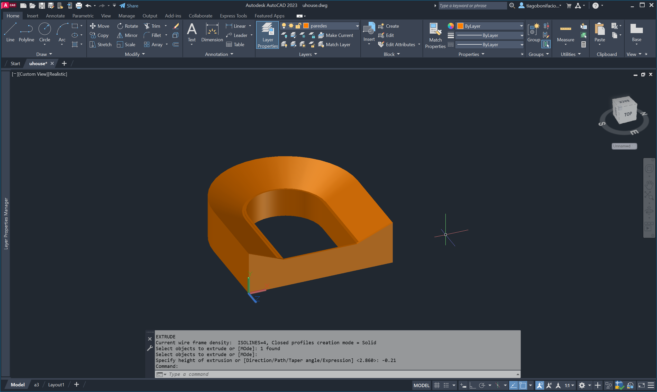 Aplicámos o comando EXTRUDE às polylines do contorno do edifício para criar o volume tridimensional.
