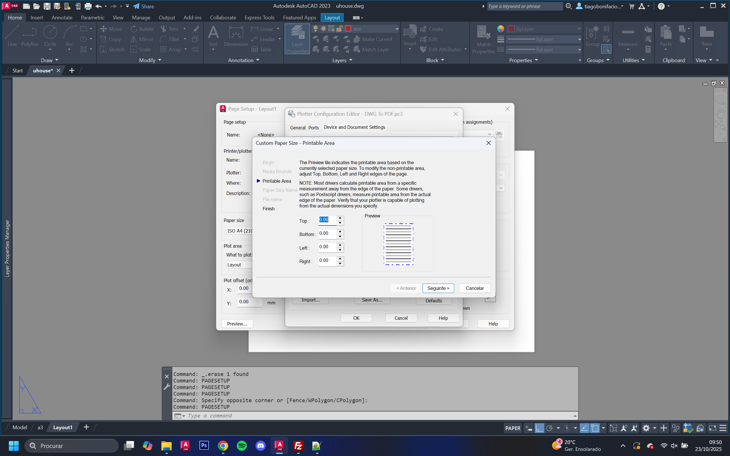 No Layout, criámos folhas A0 sem margem em formato vertical com viewports nas escalas 1/1000 e 1/100.