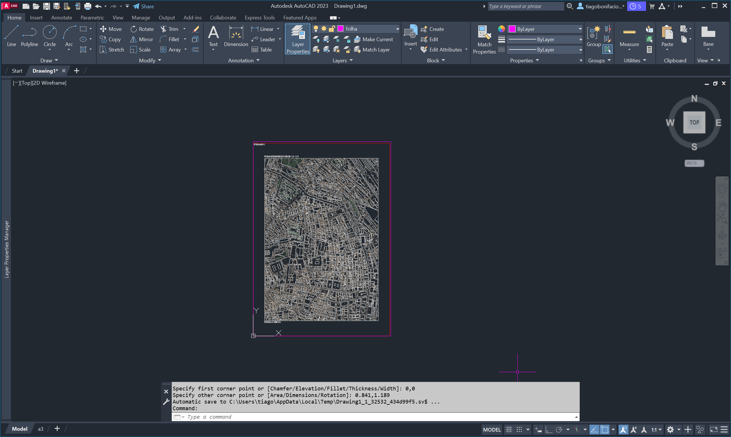 No Model Space, escalámos a planta para 1/1000 e configurámos a escala base 1:1 (1m=1m).