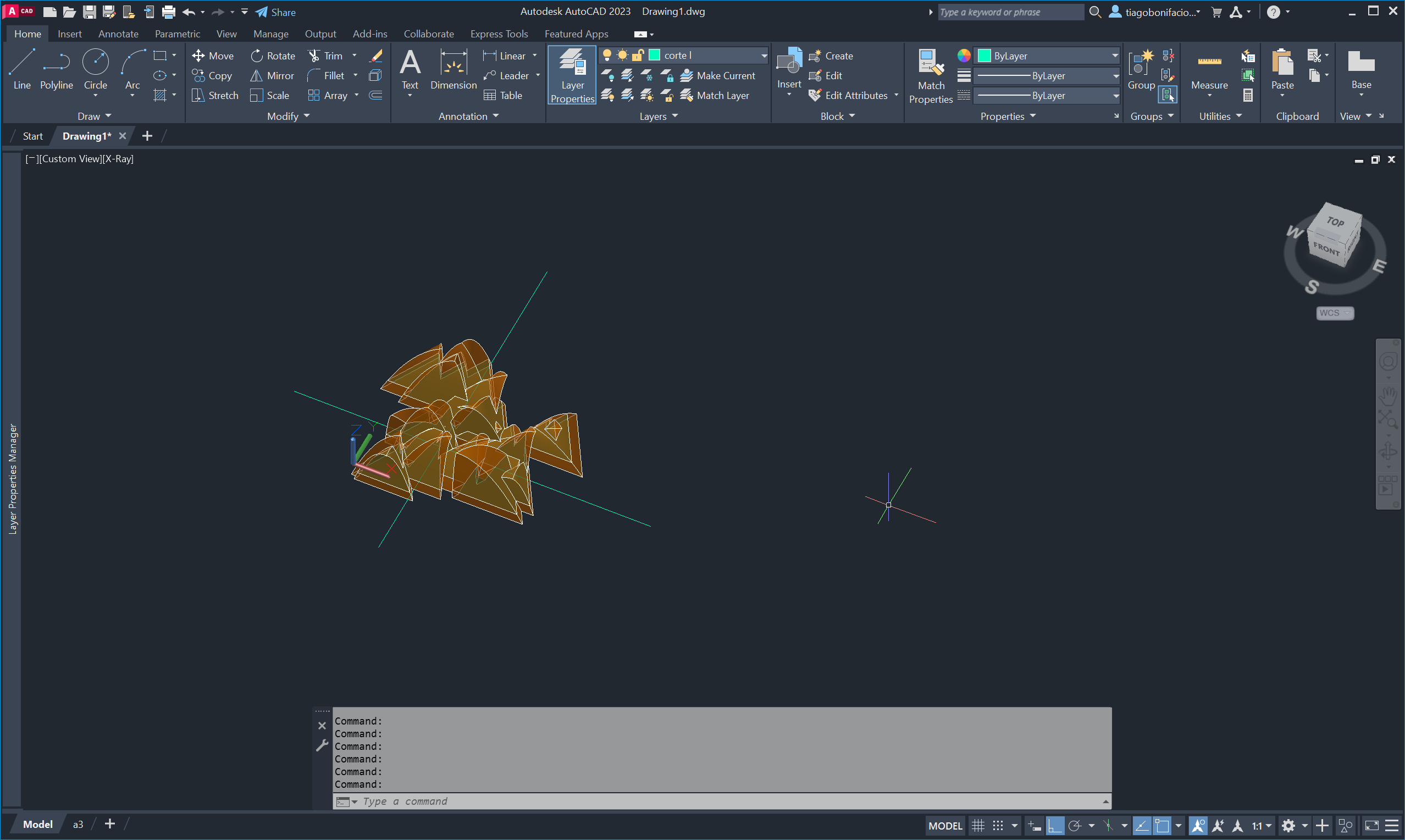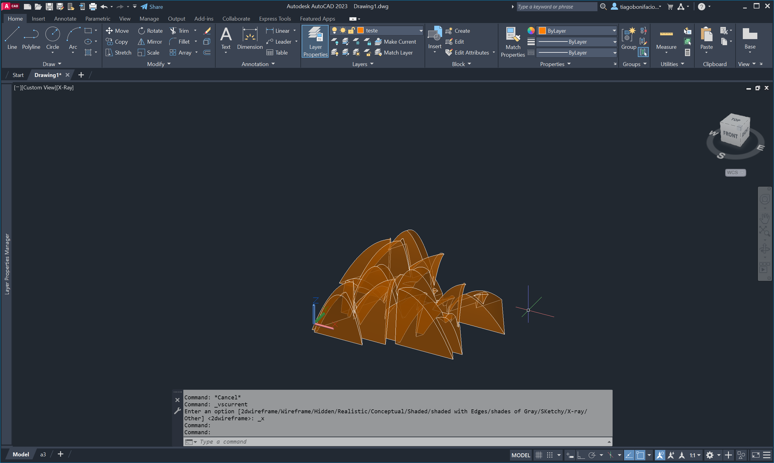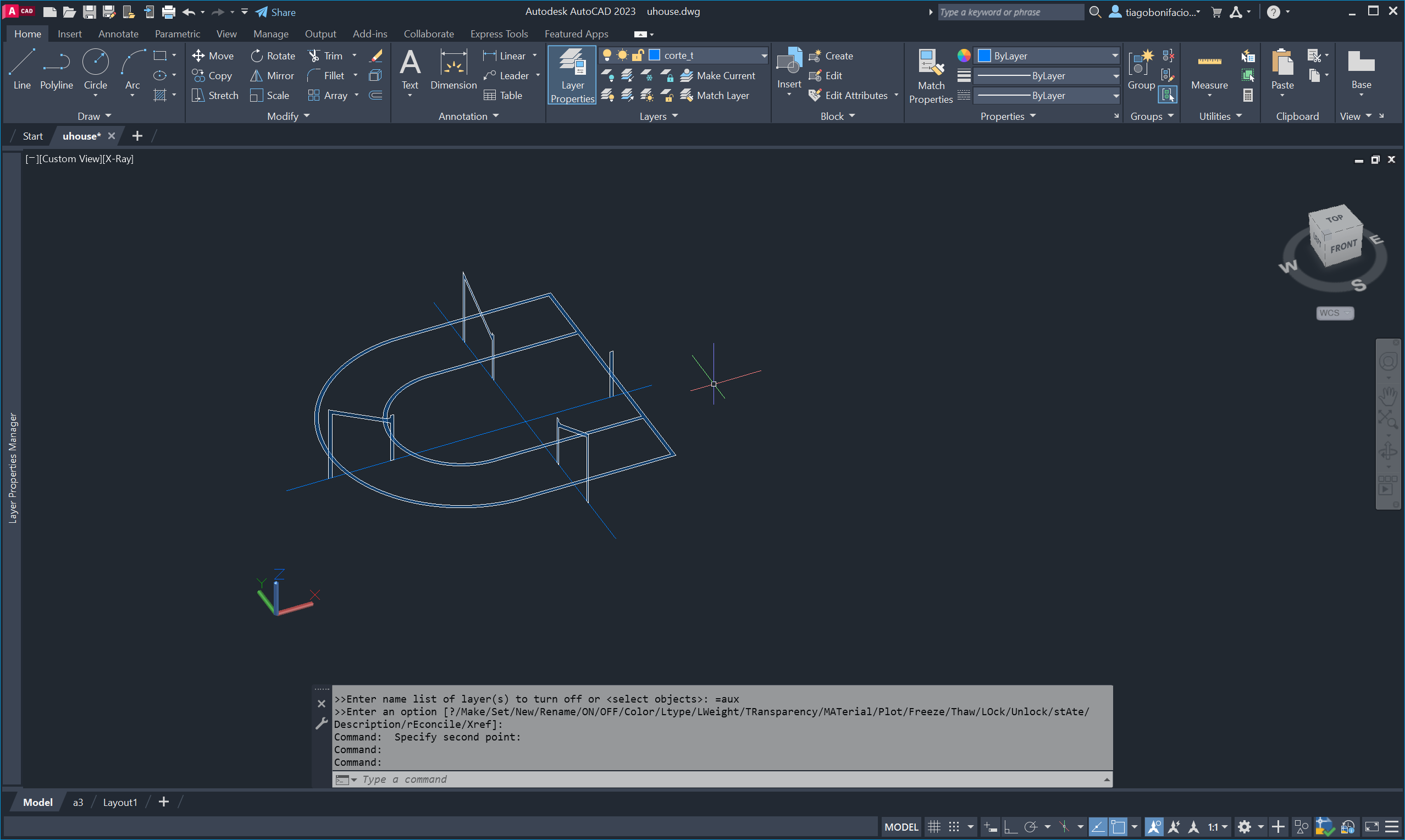 Na aula, concluímos as plantas e cortes da casa Uhause, inserindo-os no Paperspace onde procedemos ao seu escalamento através dos comandos MV e Zoom. Aplicámos lock nas janelas para fixar as viewports e garantir a estabilidade da apresentação. De seguida, explorámos a criação de triângulos utilizando uma macro disponibilizada no site da colega Patrícia Reis (https://patriciareis-20141222.blogspot.com/). Após o download da macro, carregámo-la no AutoCAD através do comando APPLOAD e desenvolvemos vários protótipos tridimensionais. Utilizámos o comando SECTION para gerar plantas, cortes e alçados dos objetos/pavilhões criados. Aplicámos o comando EXPLODE para decompor os objetos em linhas individuais, facilitando a sua análise e manipulação. No final da aula, trabalhámos com hipérboles, explorando formas geométricas mais complexas e as suas aplicações em representação digital.