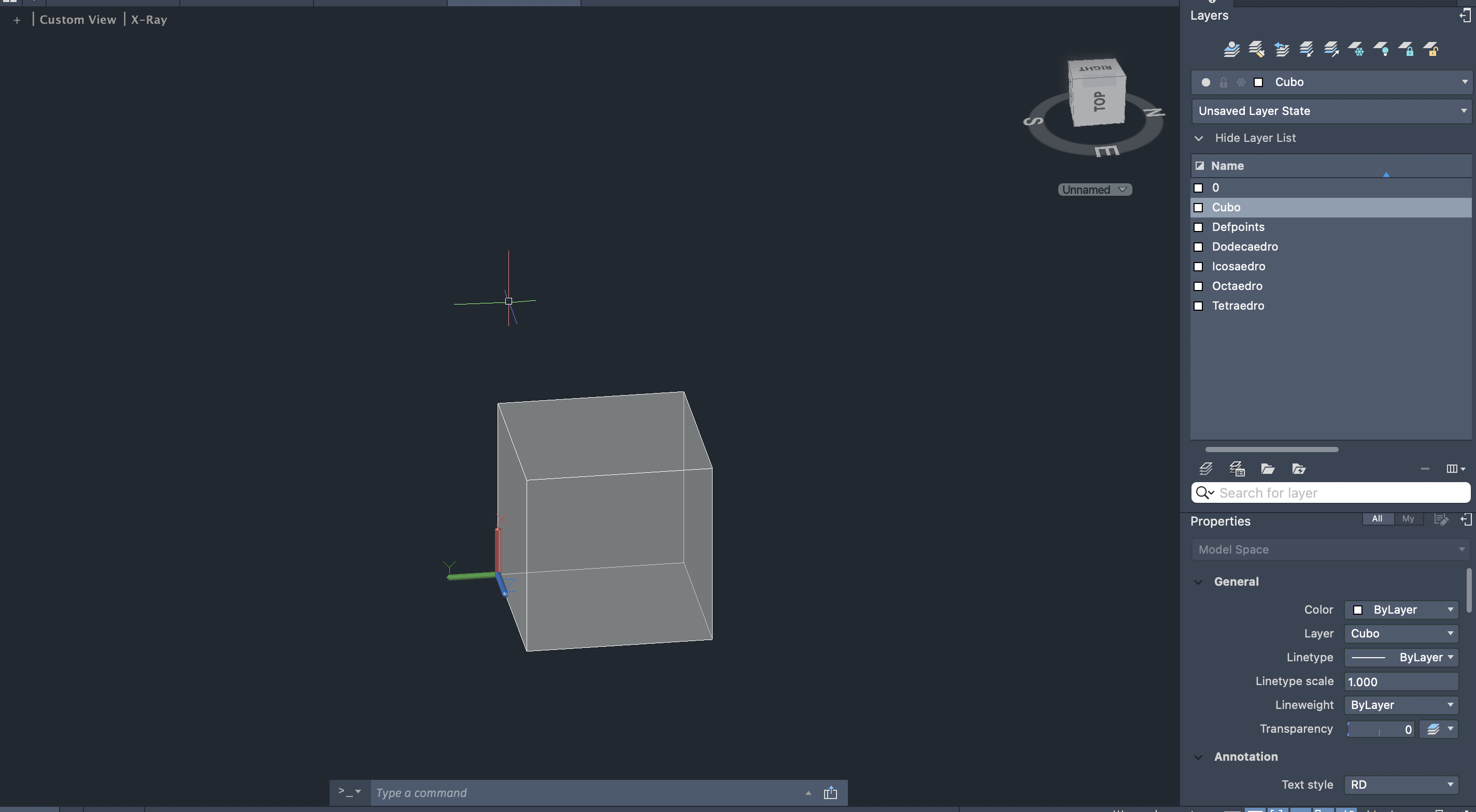 Planificamos o cubo e mudámos o UCS para que pudéssemos rodar as faces de forma rigorosa.