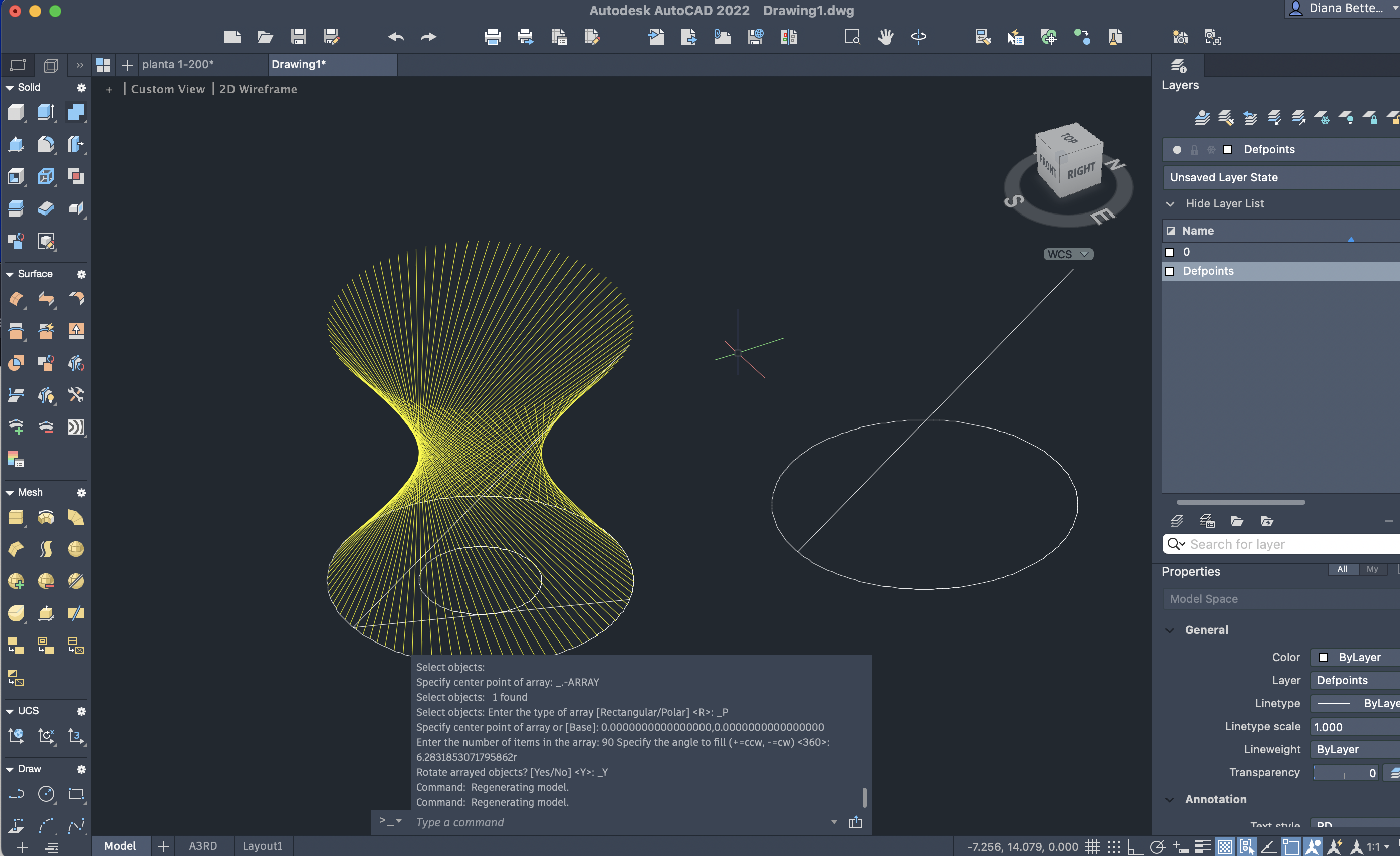 - Utilizamos os comandos arrayclassic, para que se repita a reta geratriz a volta da base.