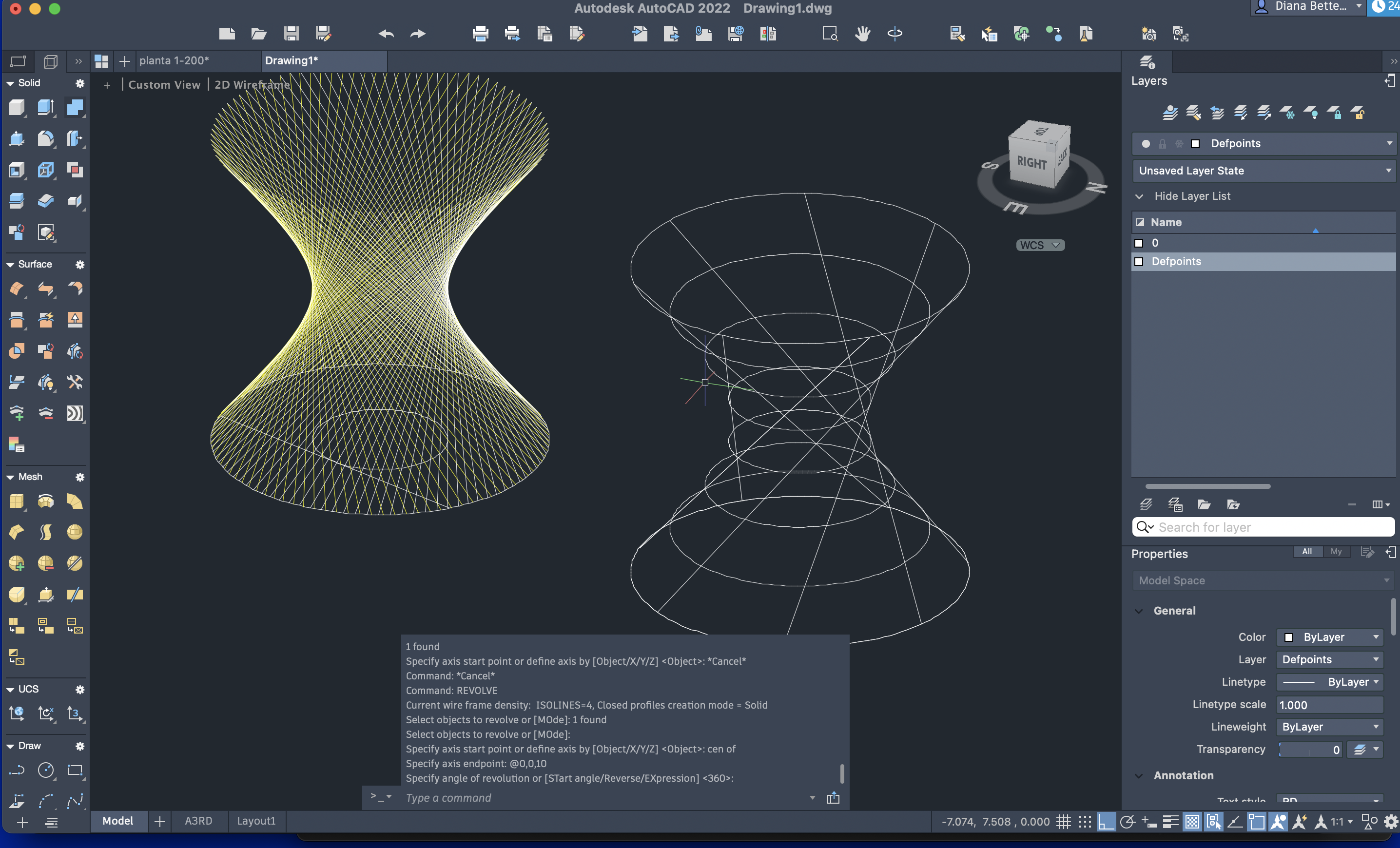 - Utilizamos o comando revolve (center of; @0,0,10) para gerar um sólido 3D.