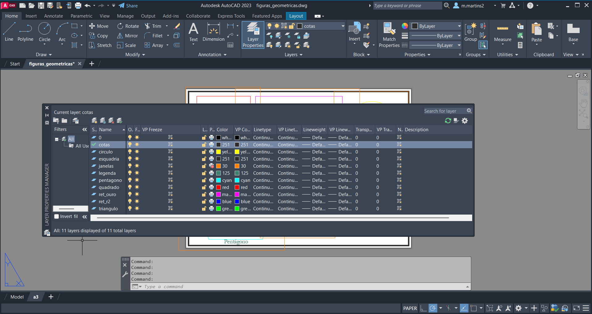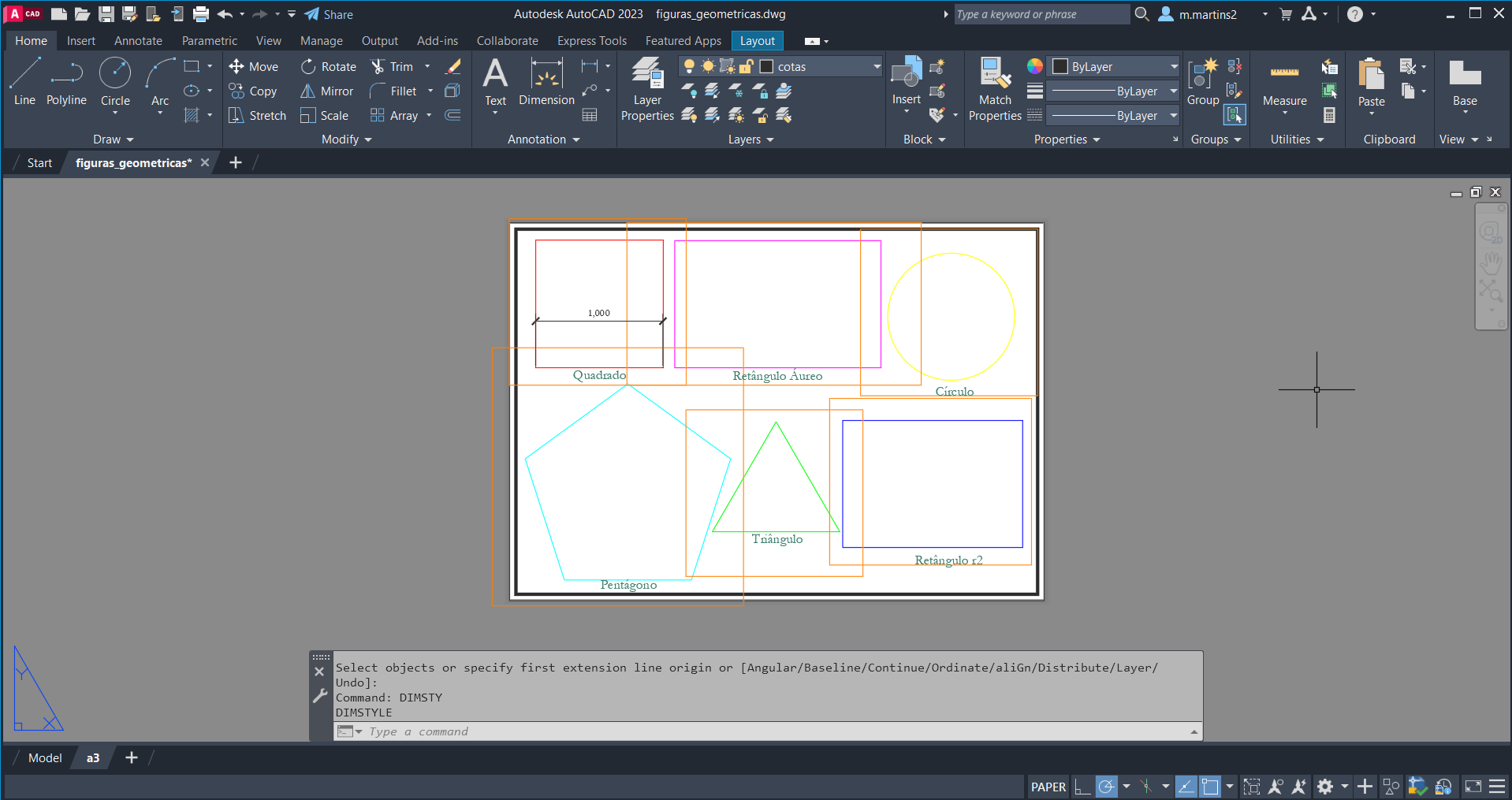 - Continuação da composição do layout das figuras geométricas.