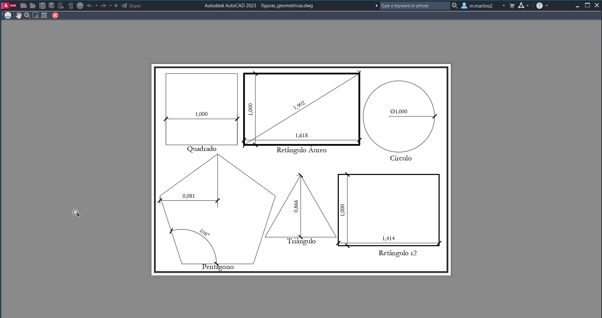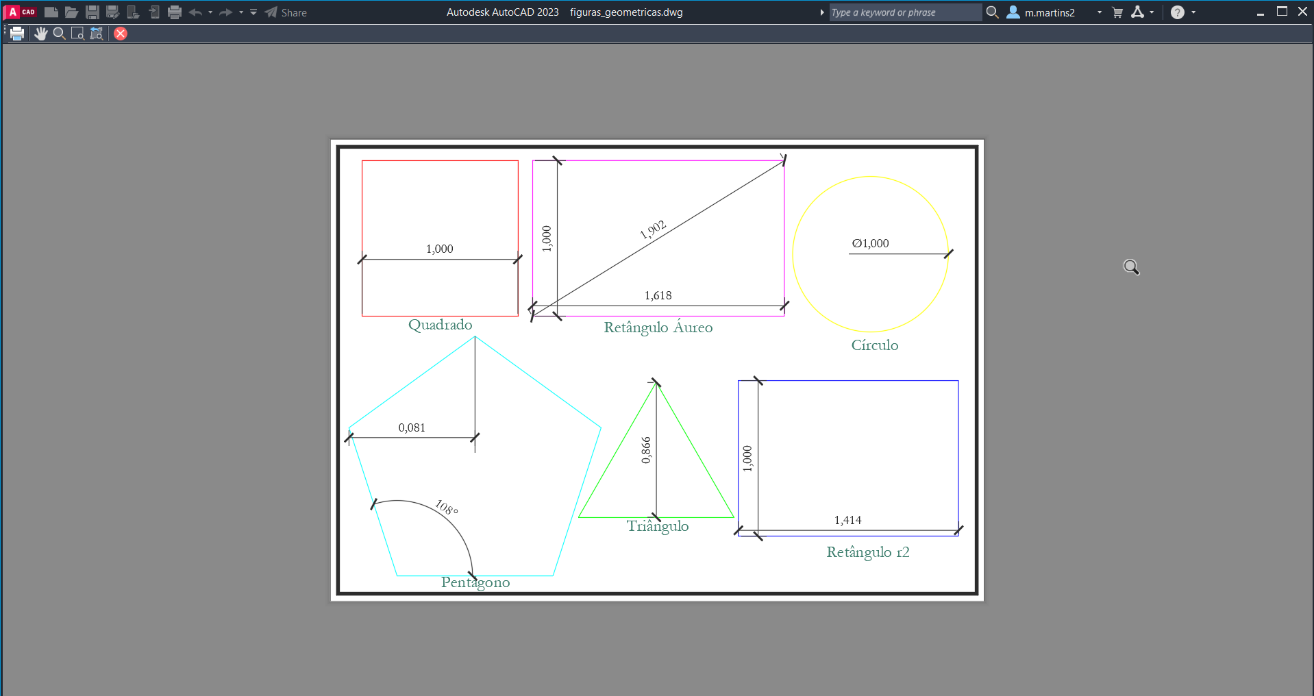 - Copiar mais 5 janelas, colocando as figuras do círculo, triangulo, ret_r2, ret_ouro e do pentágono.