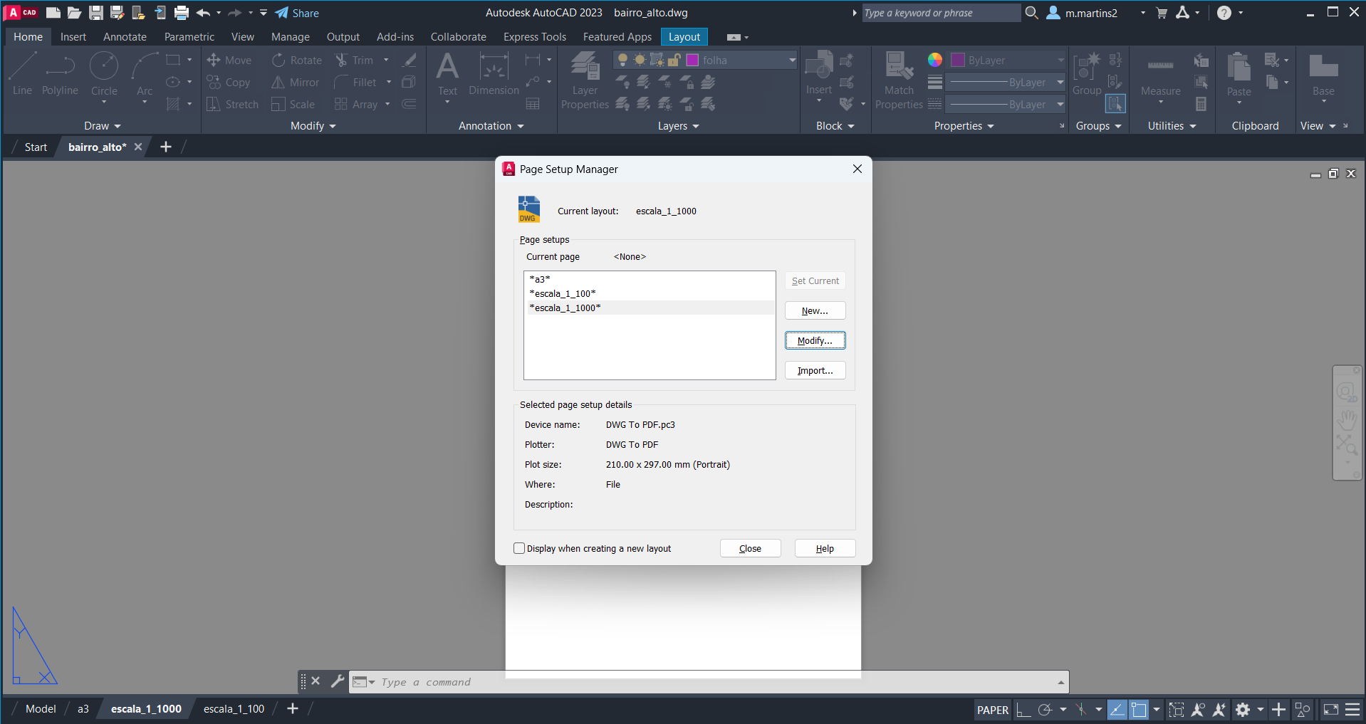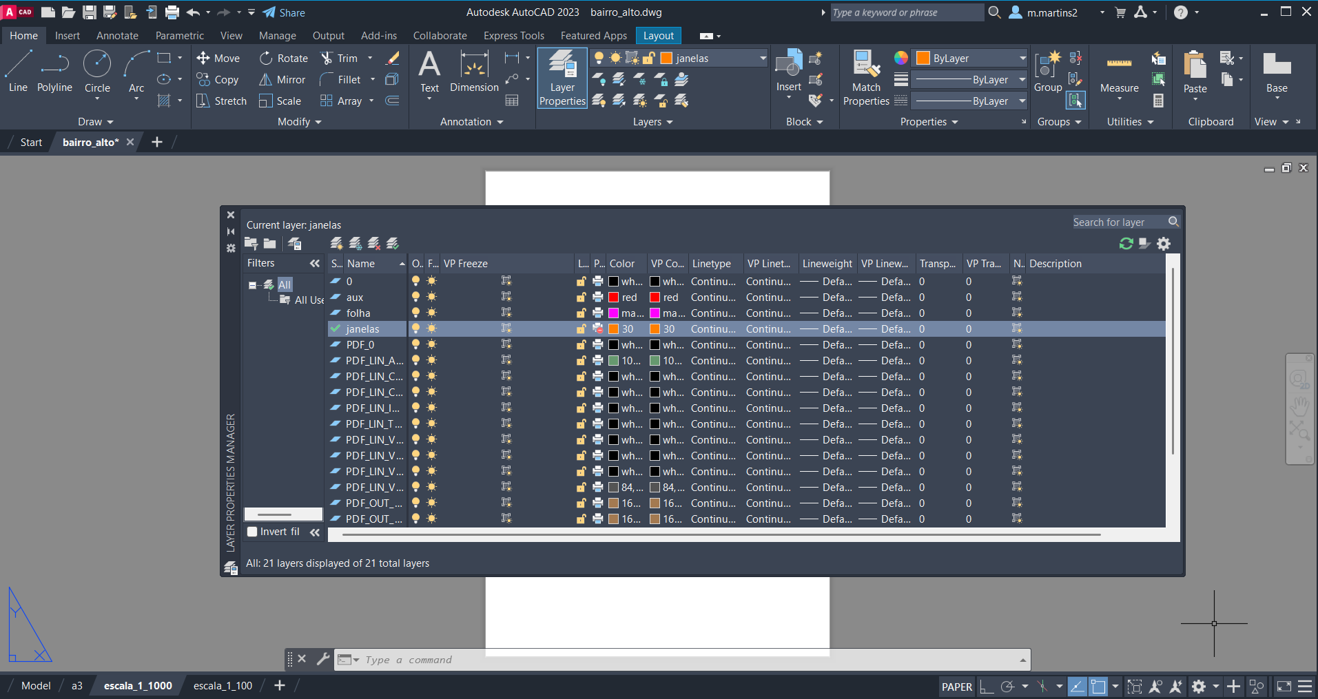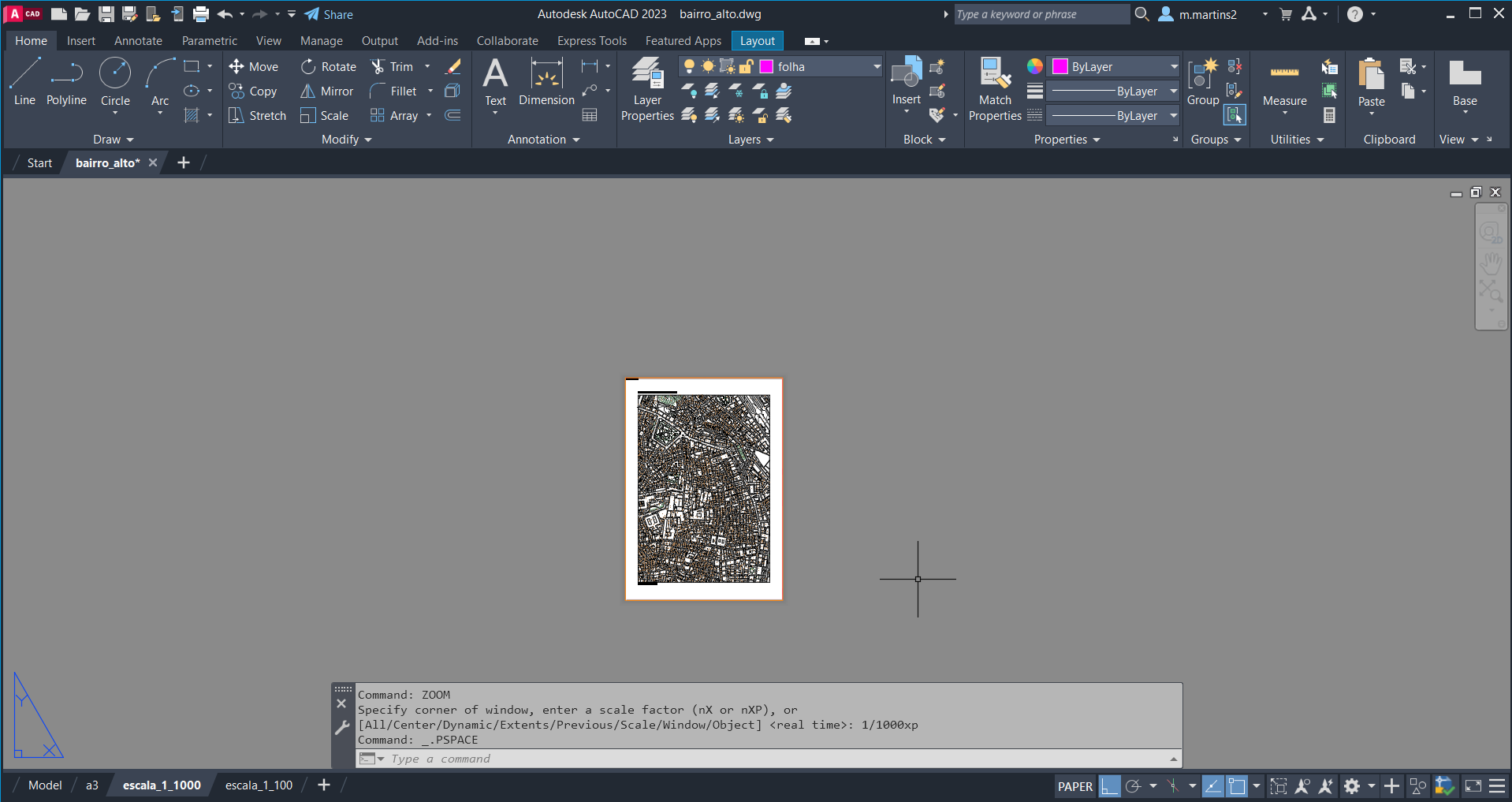 - Abrir zona Layout e criar 2 novos, "escala_1_1000" e "escala_1_100".