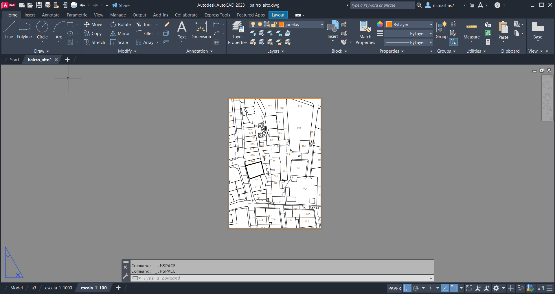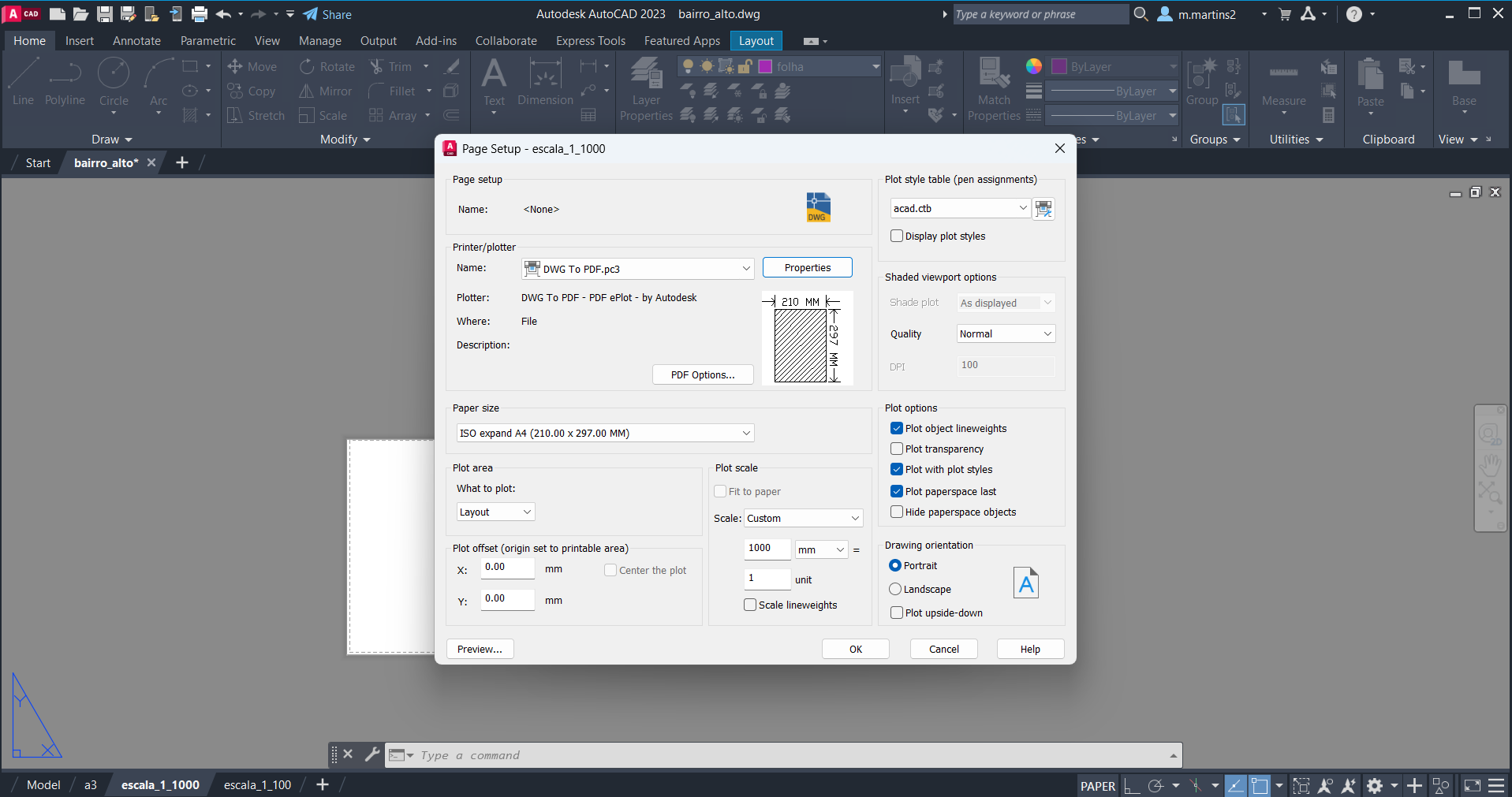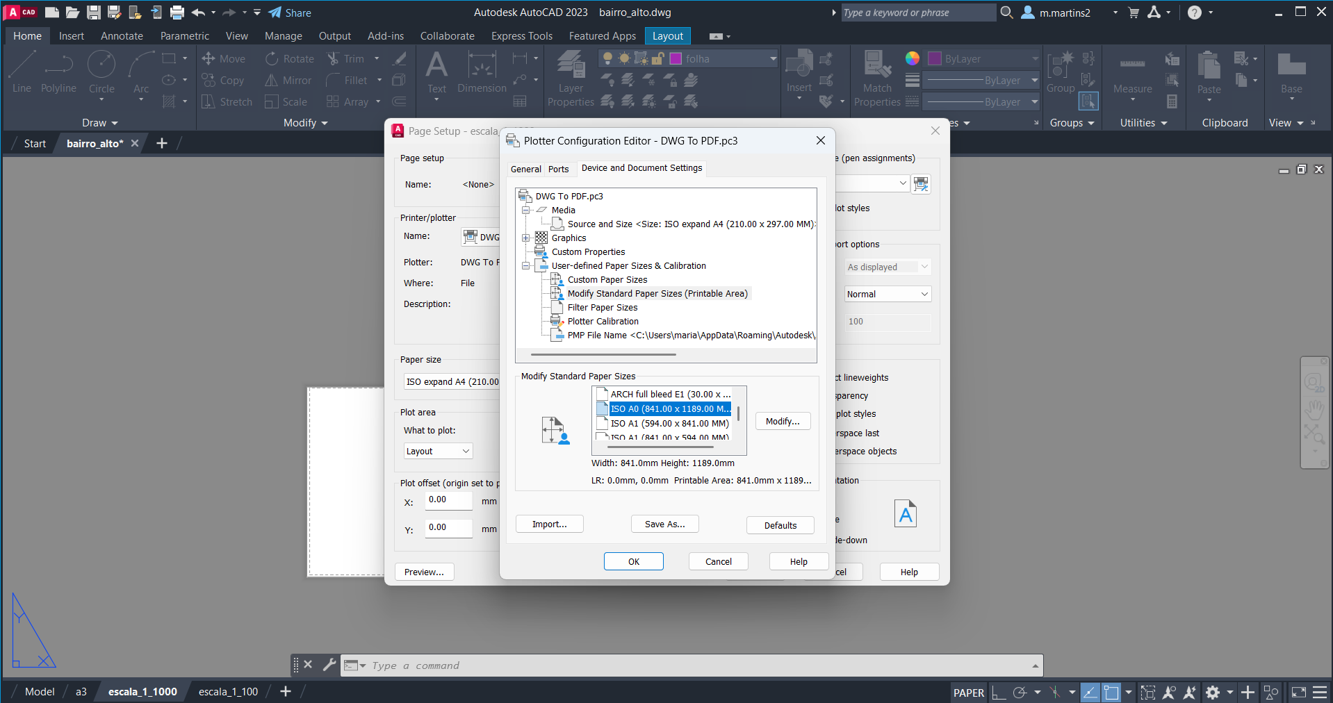 - Abrir zona Layout e criar 2 novos, "escala_1_1000" e "escala_1_100".