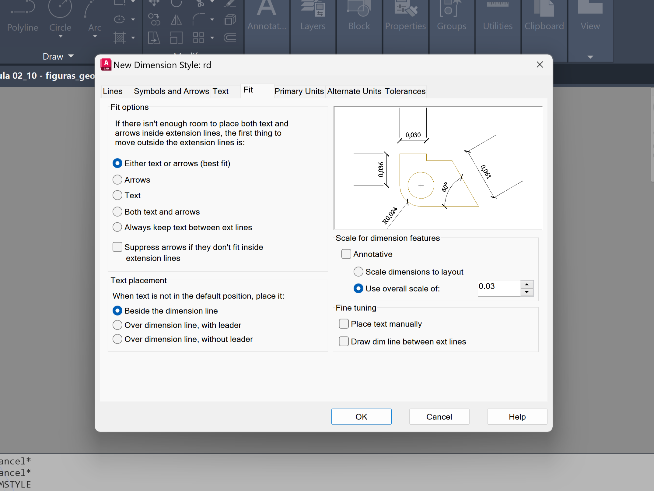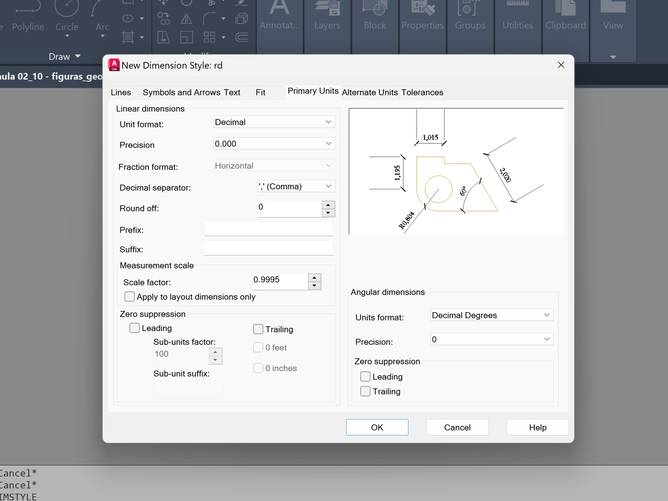 DIMSTYLE (ou D), configurando diferentes estilos de cotagem no LAYOUT, incluindo a