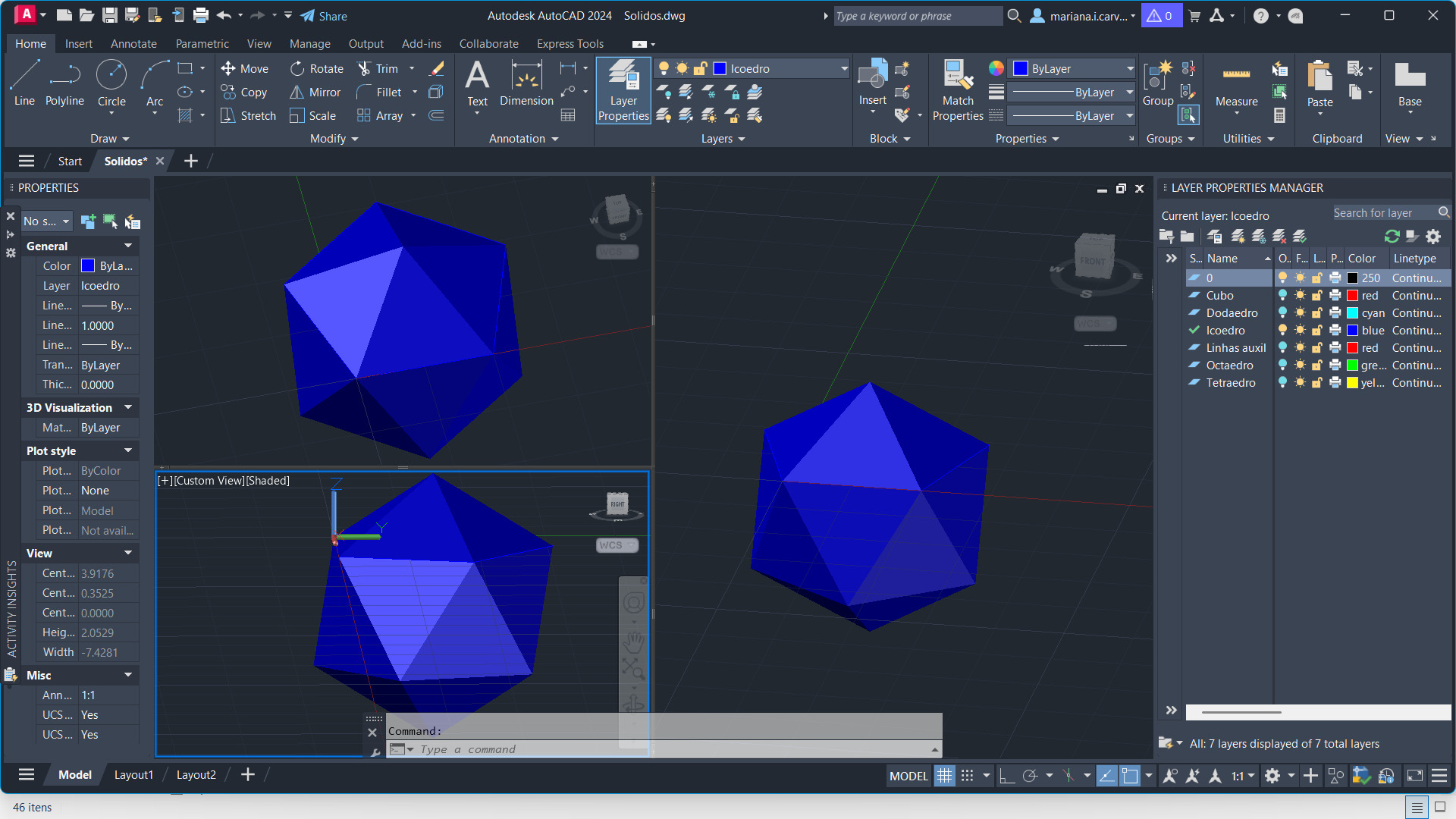 Introdução de comandos como Ucsfollow, Vpoint (ângulo de visualização), Box, Pomade e Id (identificação de coordenadas).