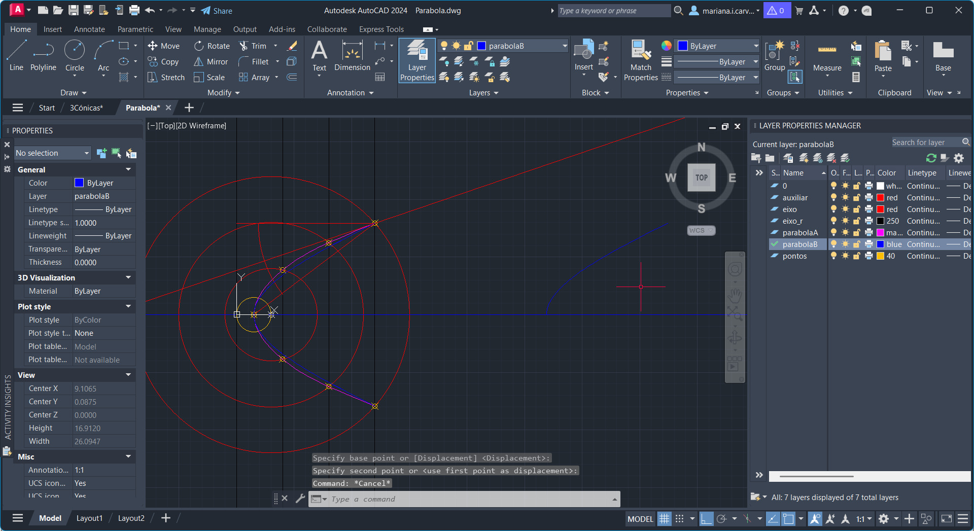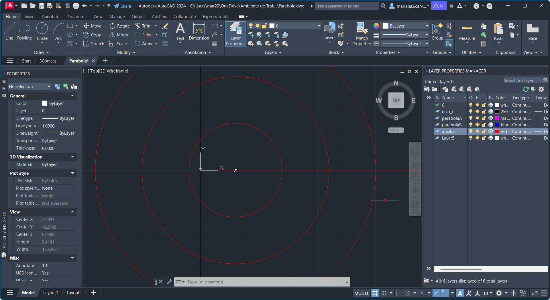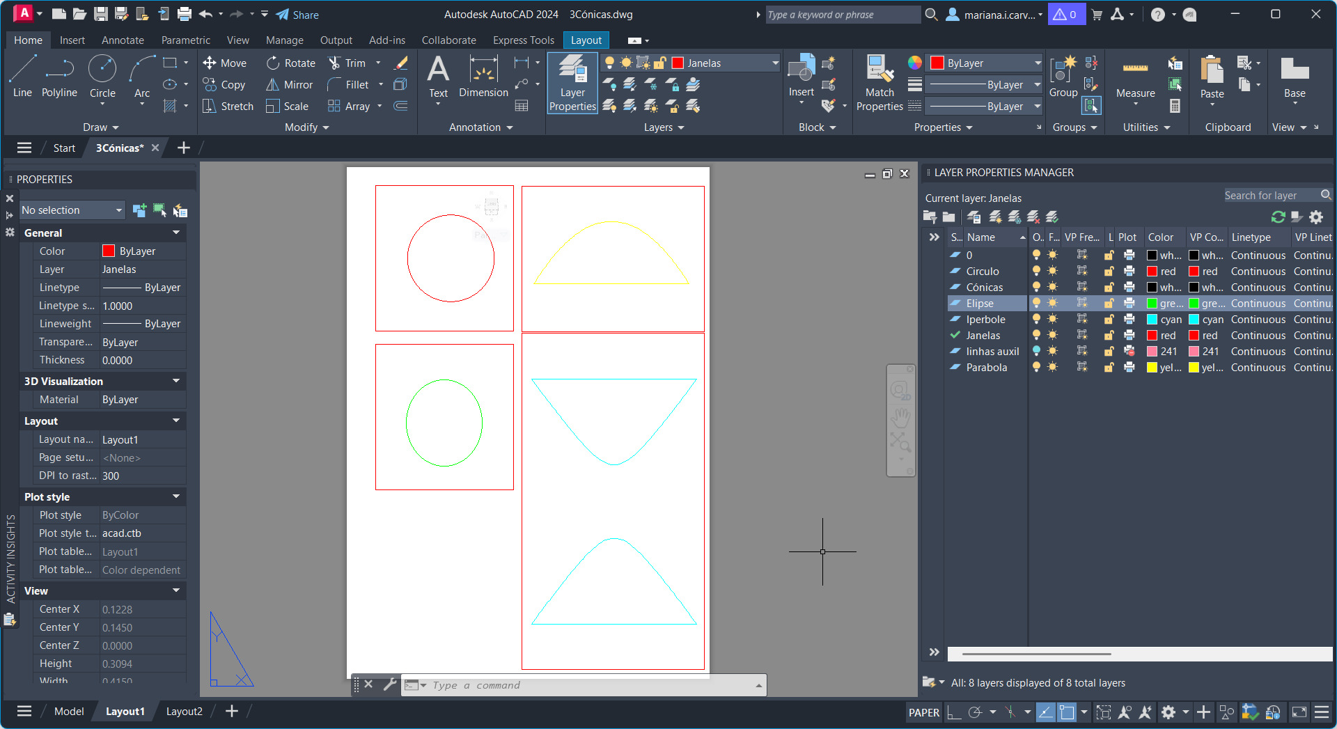 Trabalho em layout, e de layers e suas invisibilidades. Criação de uma janela através de Mview e gestão de vista na mesma com o comando Plan.