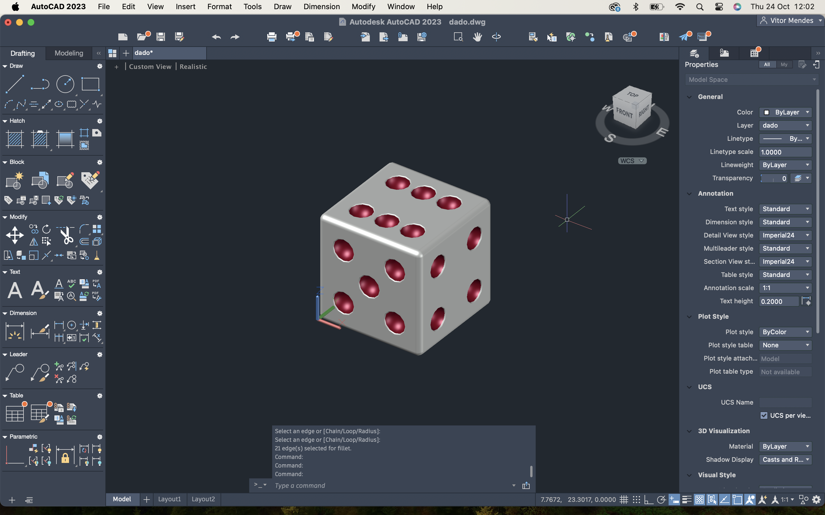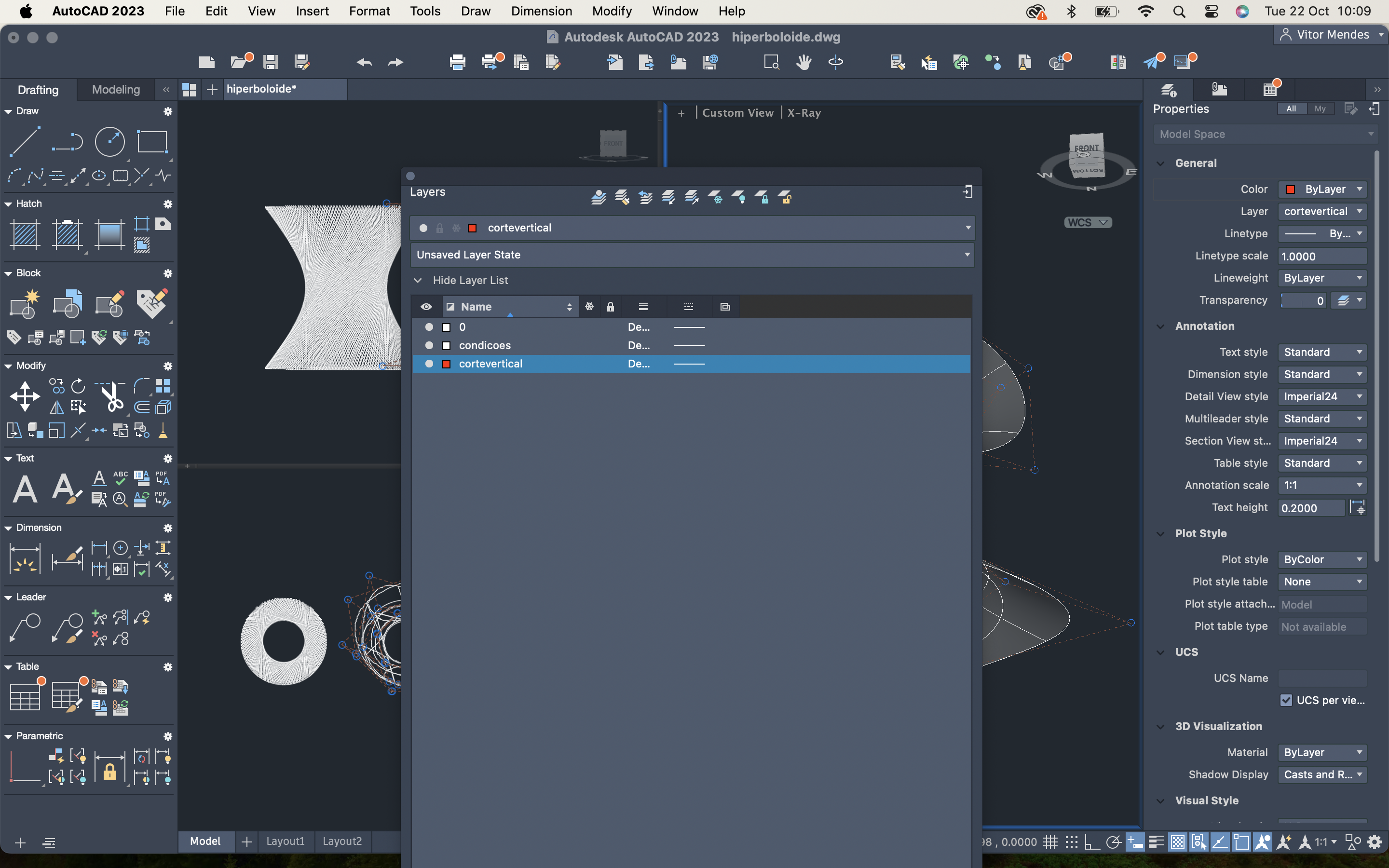 Desenvolvimento do exercício da hiperbolóide, através de várias vistas em simultâneo.