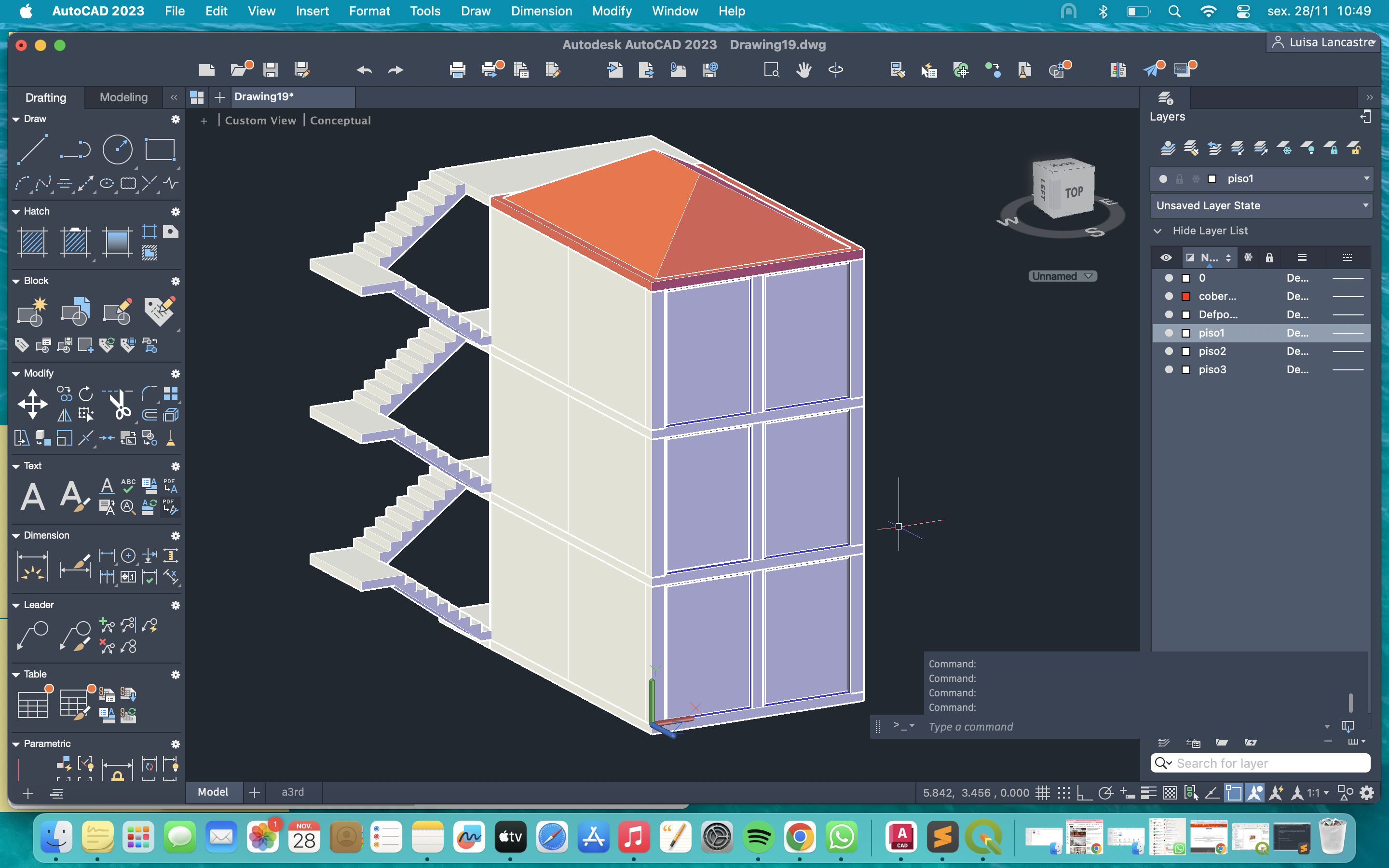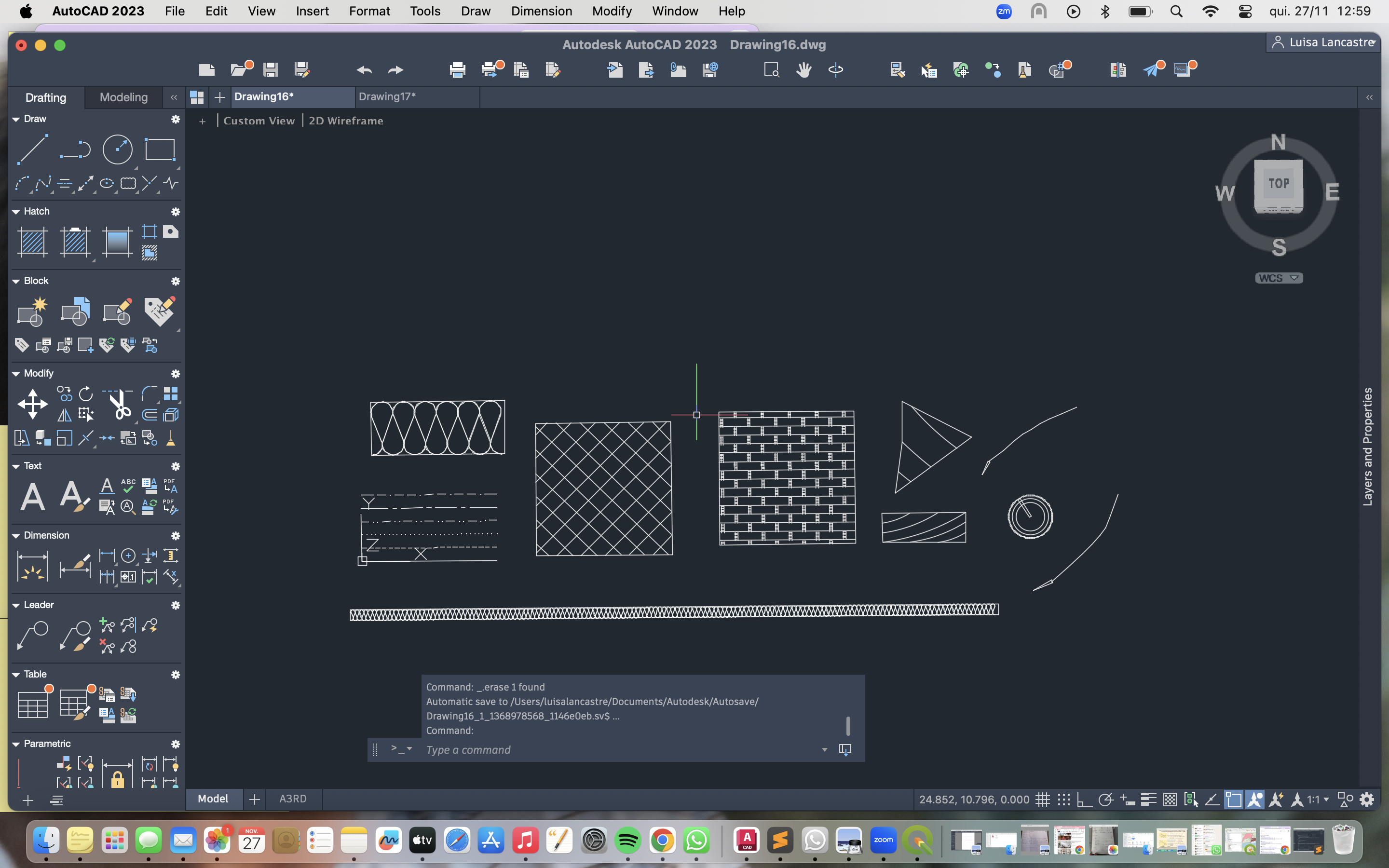 De volta au autocad, começámos criar, diversos retangulos, mexendo nos diferentes tipos de linhas, e nos diferentes tipos de texturas, também com ajuda de programaç;&ões, para textura de isolamentos, madeira, e criação de setas: