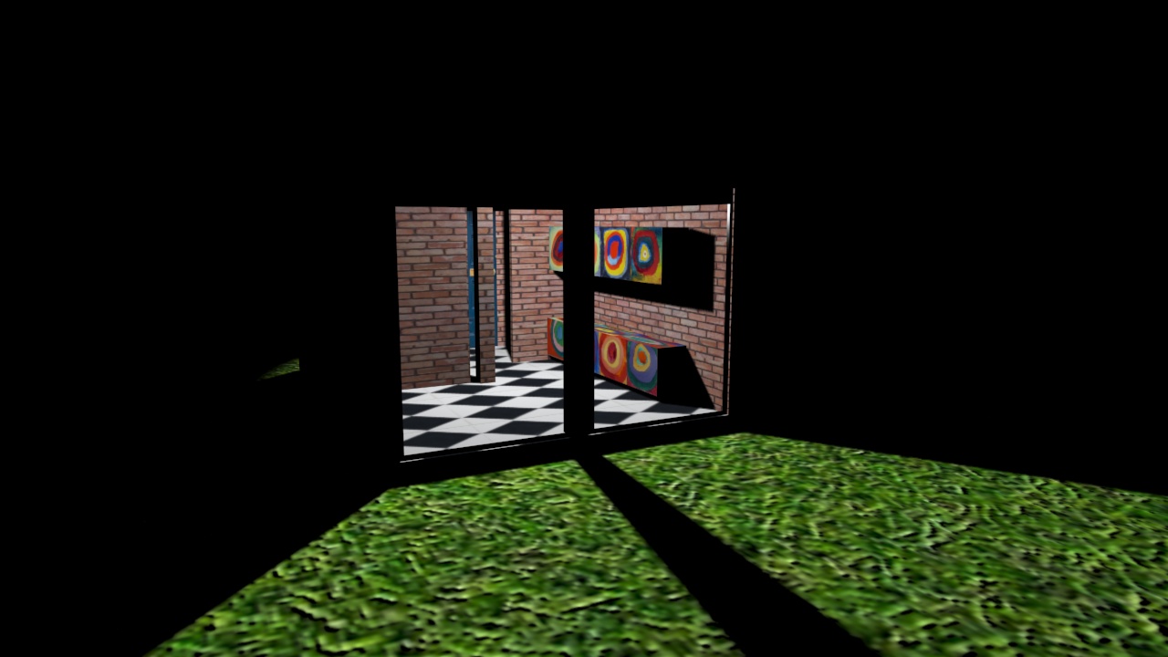 Atribuição de novos materiais para as paredes (tijolo de burro) e para os armários (obras de Kandinsky).