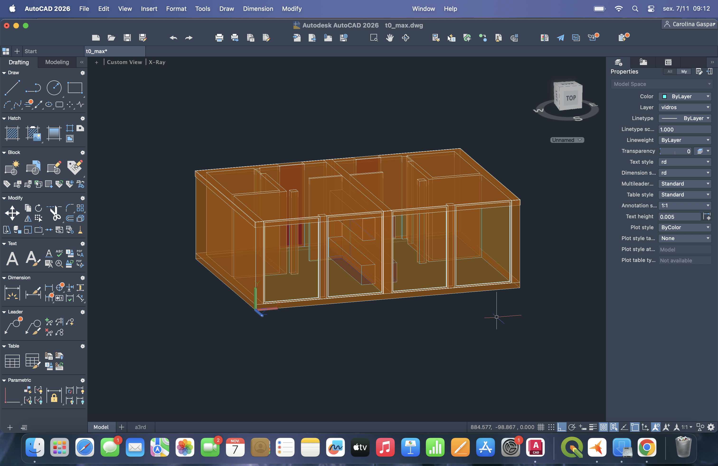 Colocação de elementos pré-existentes nas respetivas layers e adição de 1 lage (teto) no projeto. Duplicação do t0 através do comando "MIRROR".