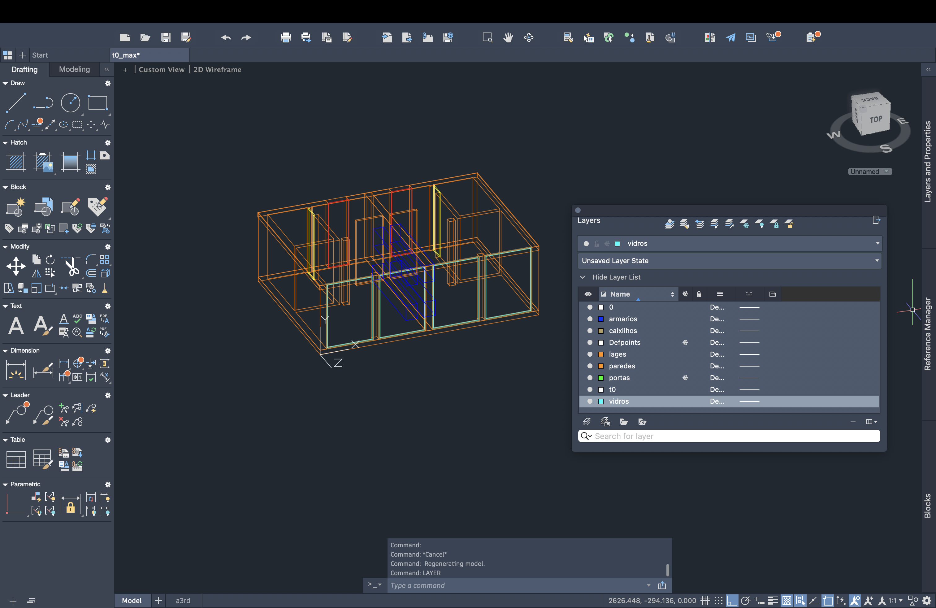Importação do ficheiro t0.dwg para o programa em uso.