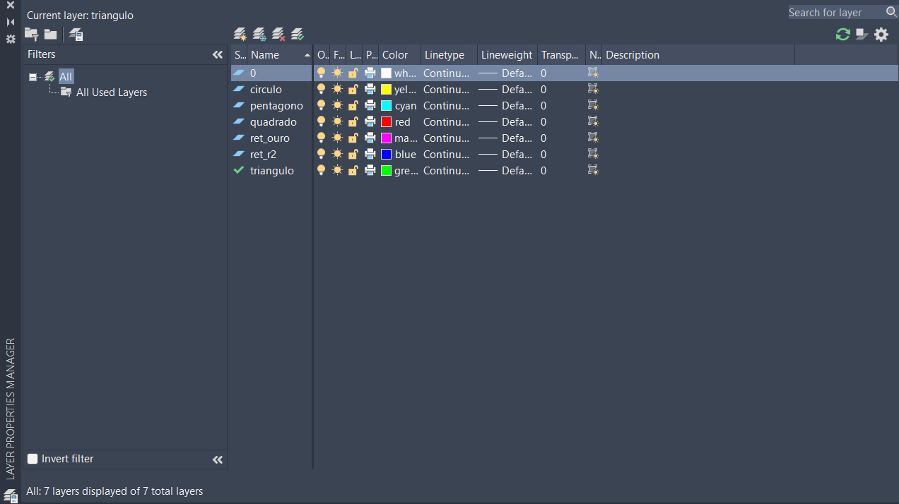 Criação de seis layers com nomes e cores diferentes.