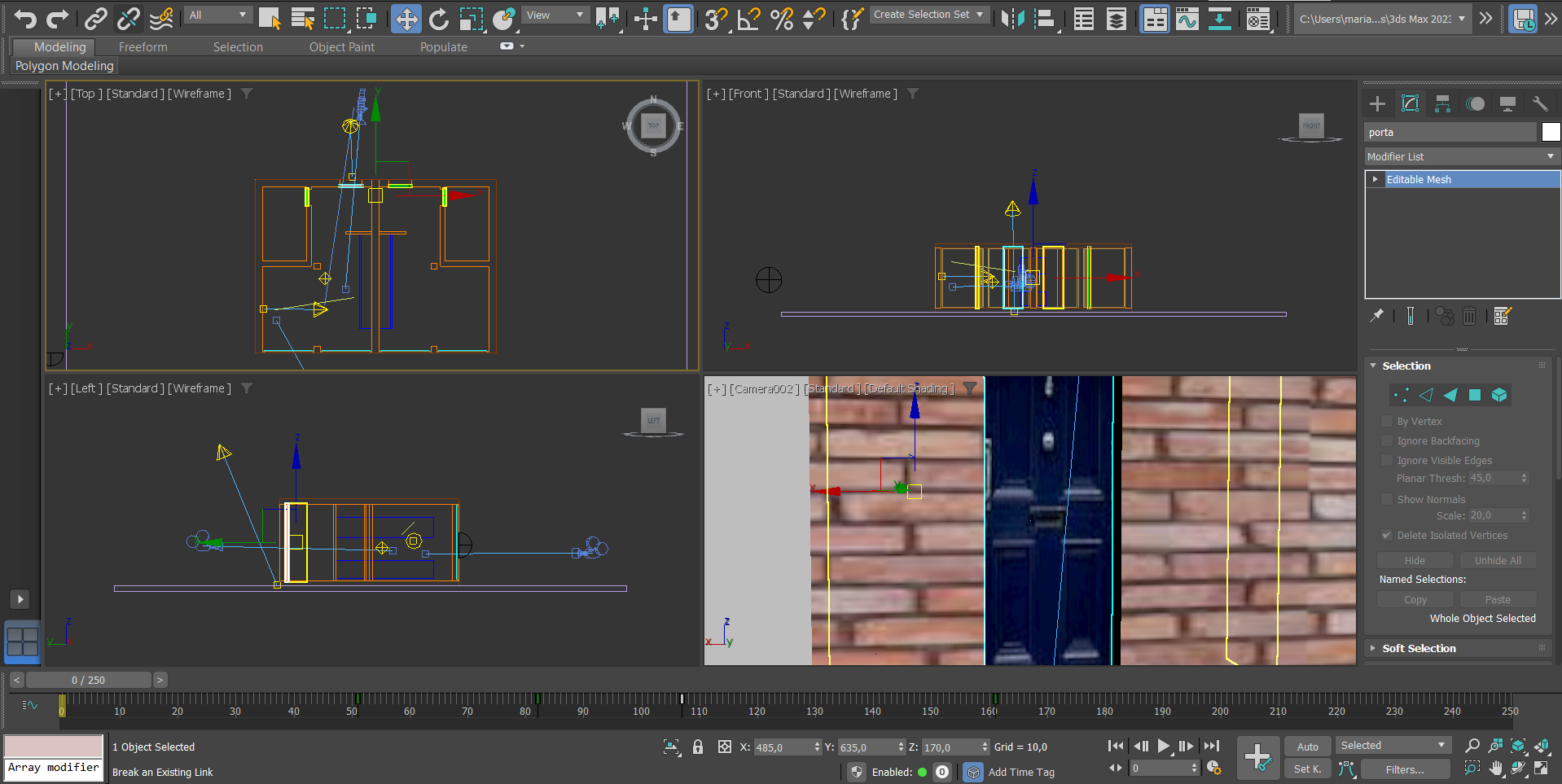 de 10 segundos no programa 3ds Max. Colocação de uma câmera em movimento e de luzes auxiliares à animação, como um