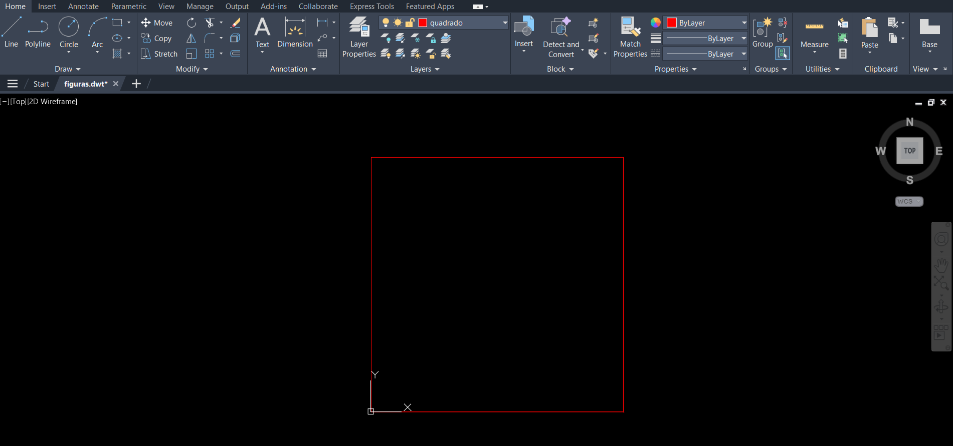 tendo sido feito apenas um quadrado.