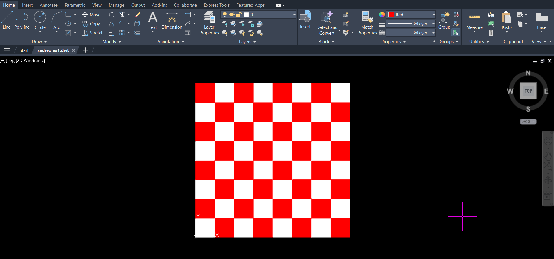 composto por quadrados brancos e vermelhos.