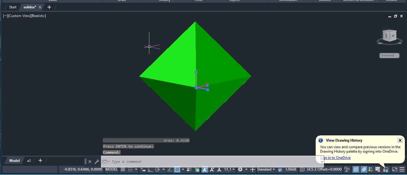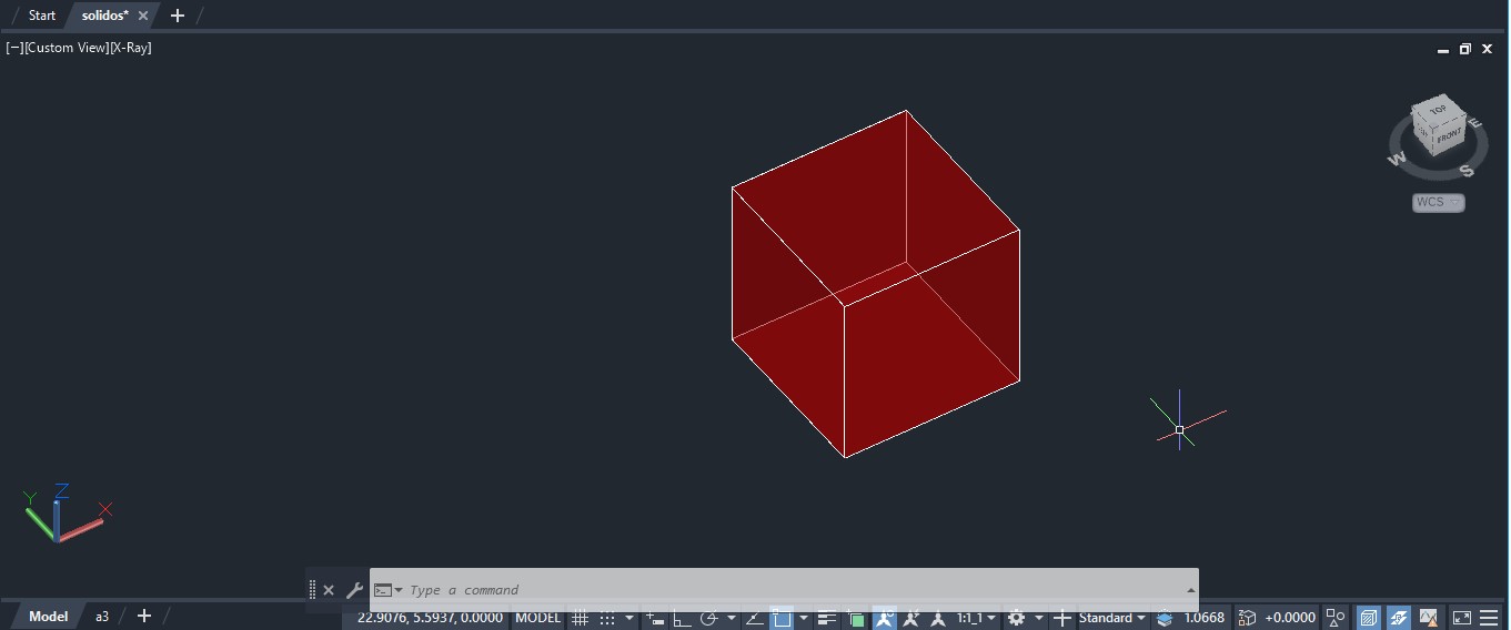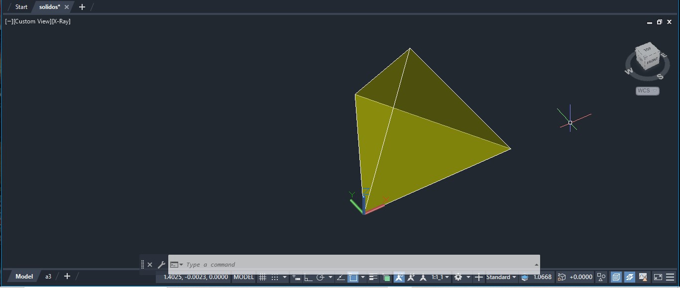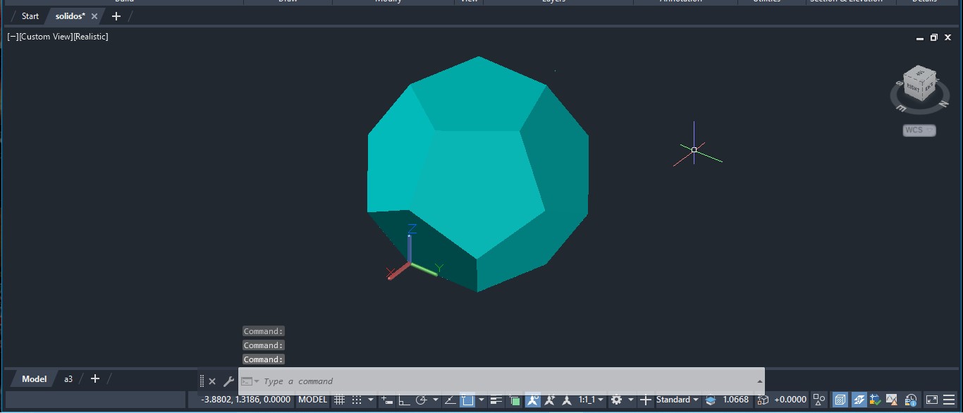 Utilização de comandos como: UCS (para alterar os eixos), XLINE e LINE, CIRCLE, POLYGON, REGION, COPY, MIRROR, 3DPOLY, ALIGN e ARRAYCLASSIC.