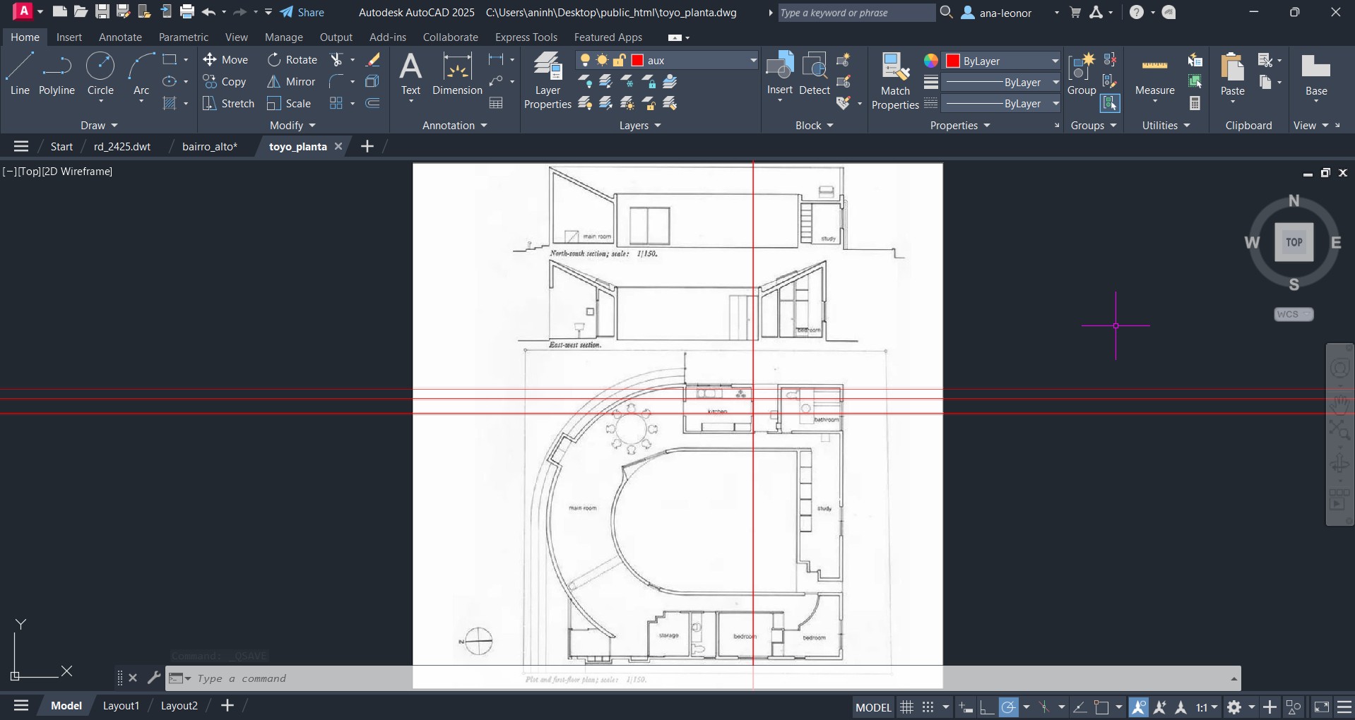 Continuação do estudo da planta a Toyo Ito House, escalando a sua forma, através do comando SCALE,de modo a que as medidas correspodam à medida real.