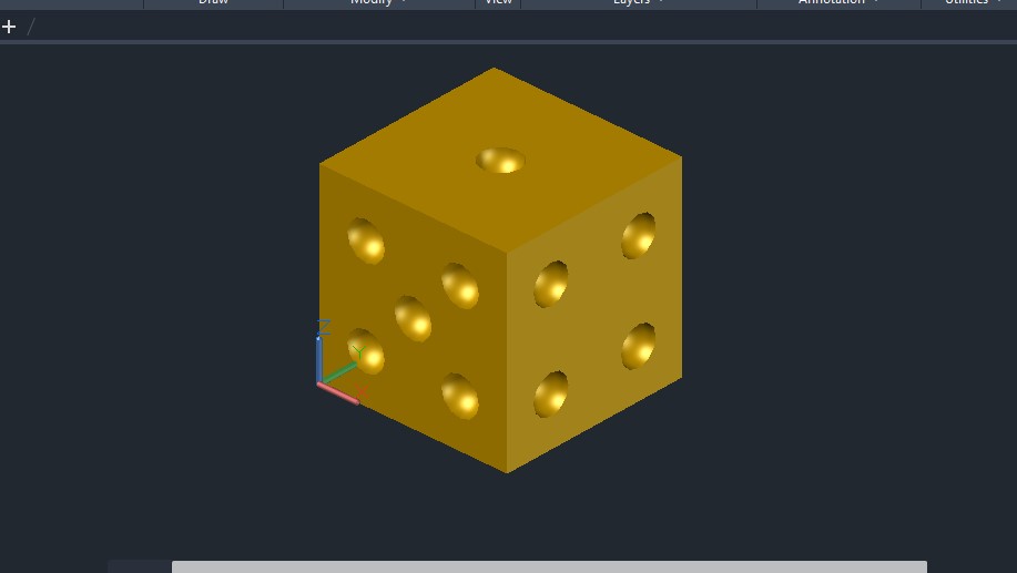 Representação de uma volumetria semelhante a um dado de jogo, através de diversos passos e novos comandos.