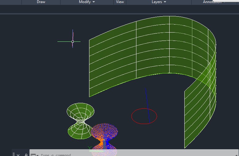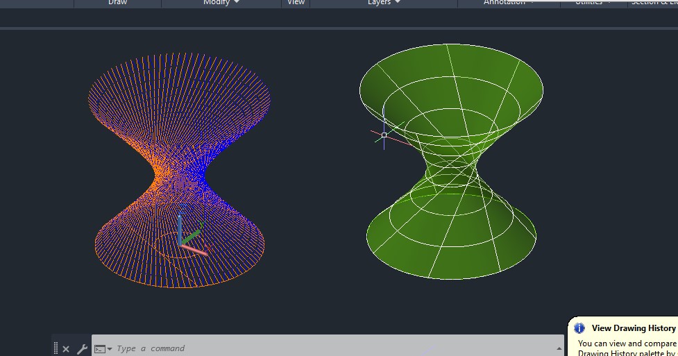 Nova representação de hipérboloides, atraves dos comandos ARRAYCLASSIC e REVOLVE (gera um solido 3D ou superficie 3D ao rodar um perfil 2D, em torno de um eixo definido).
