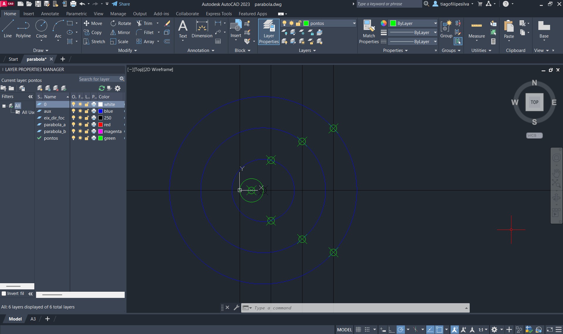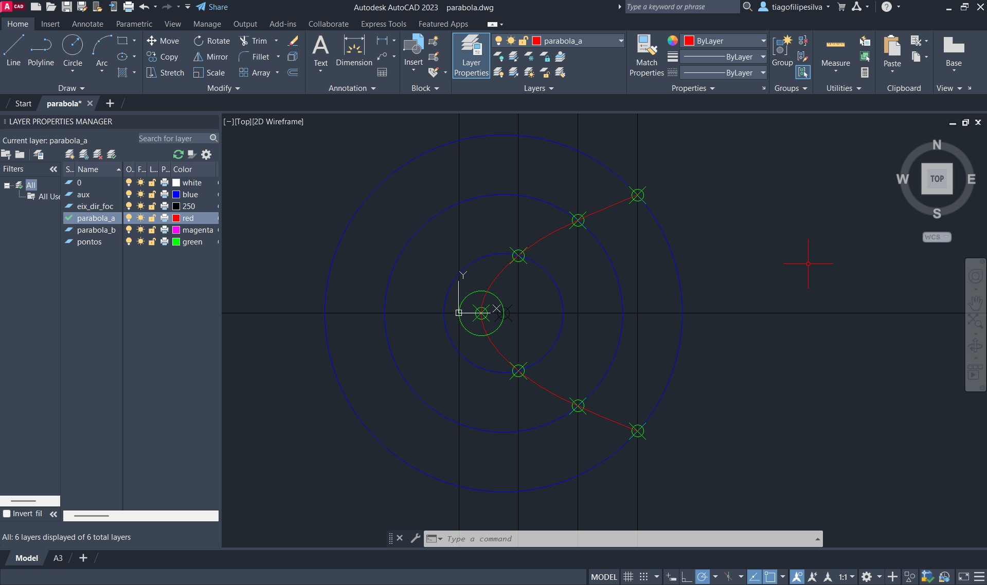 Início da realização do exercício da criação de uma parabola segundo um referencial no AutoCAD.