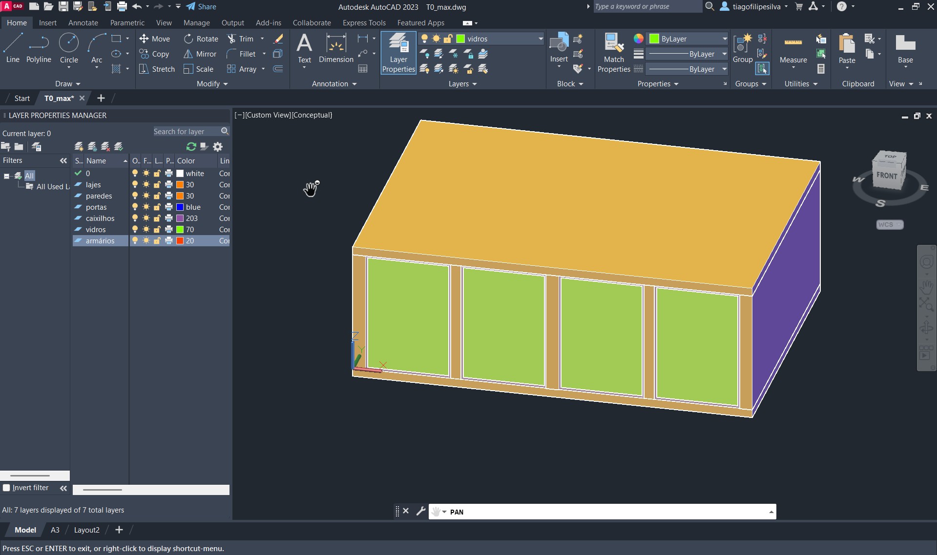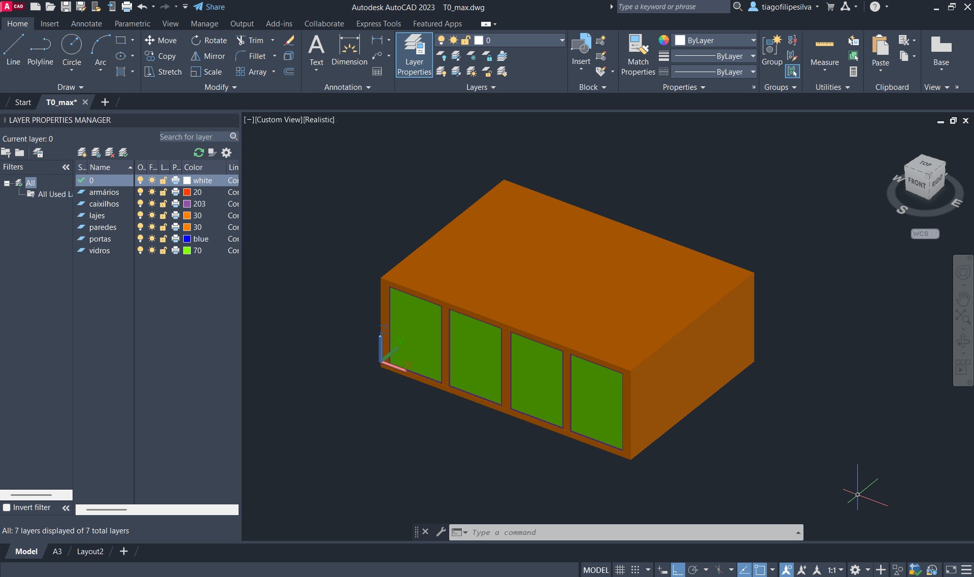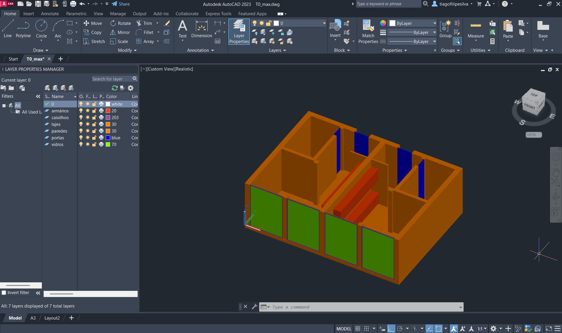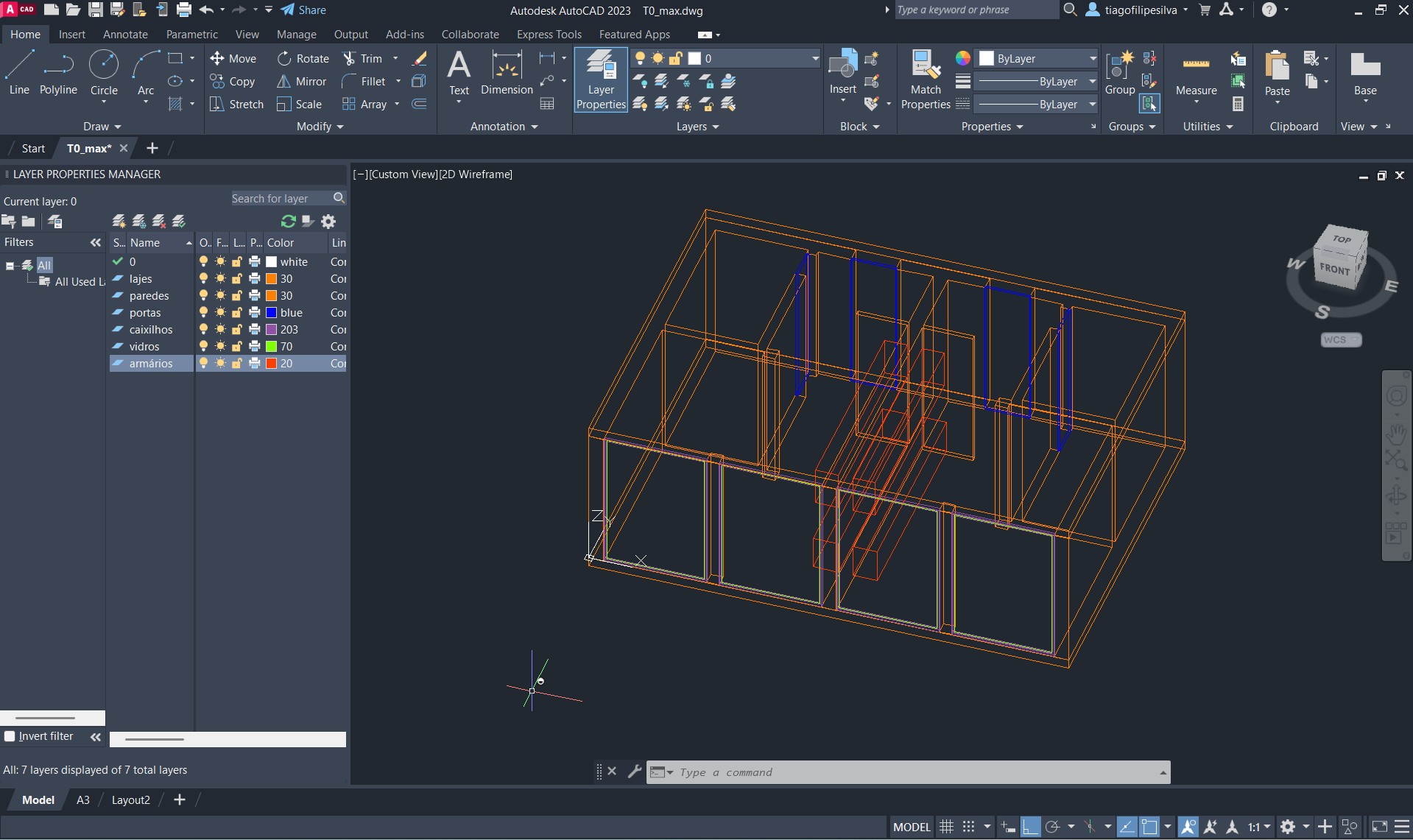 Importação de um novo comando T0, através de: APPLOAD. Criação de layers, cada uma com uma cor associada ao seu conteúdo.