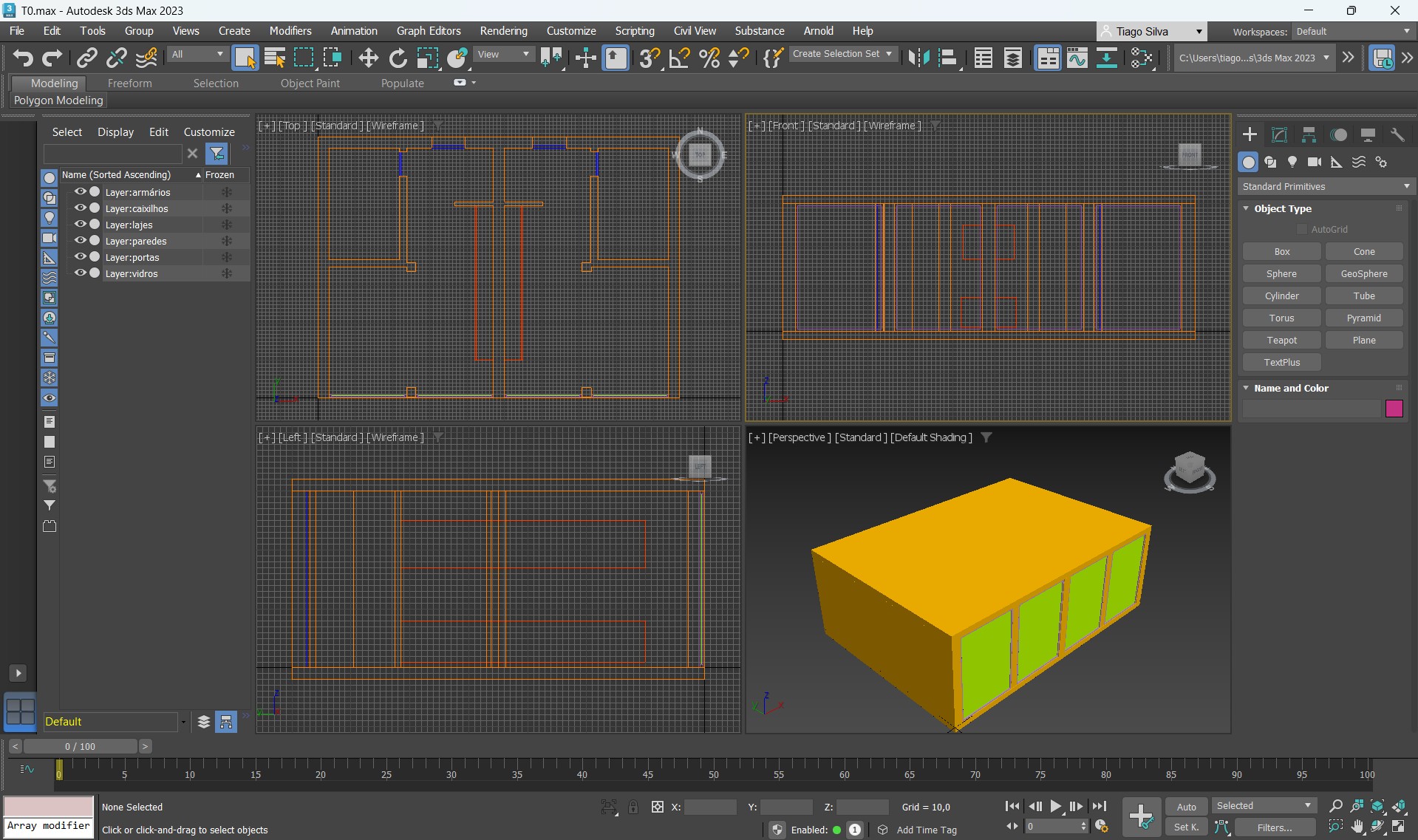 Preparação de um T0 para a primeira utilização do 3ds MAX, num novo ficheiro AutoCAD.