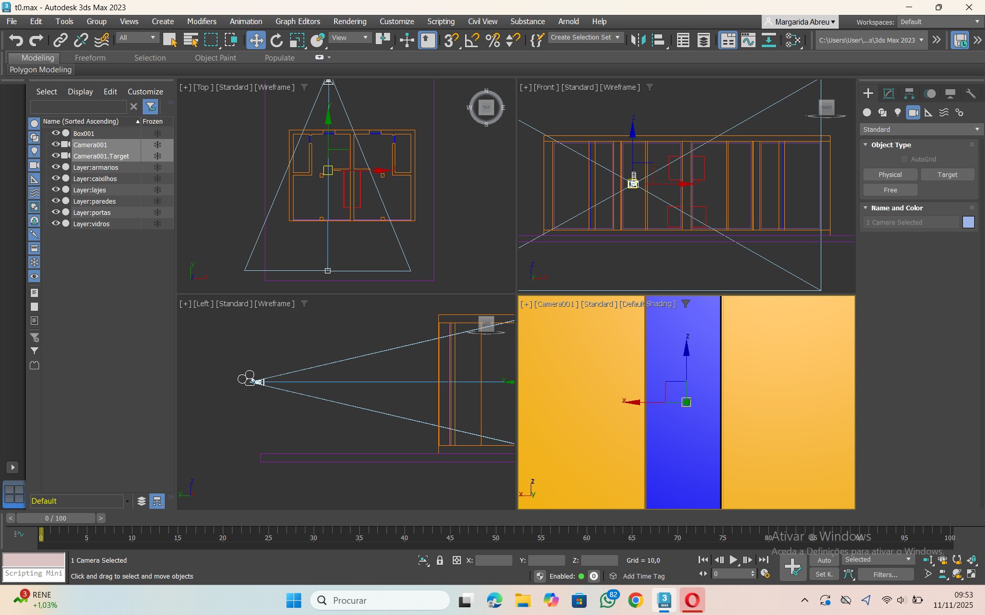 Criação e manuseamento de uma câmera target, Câmera 1.