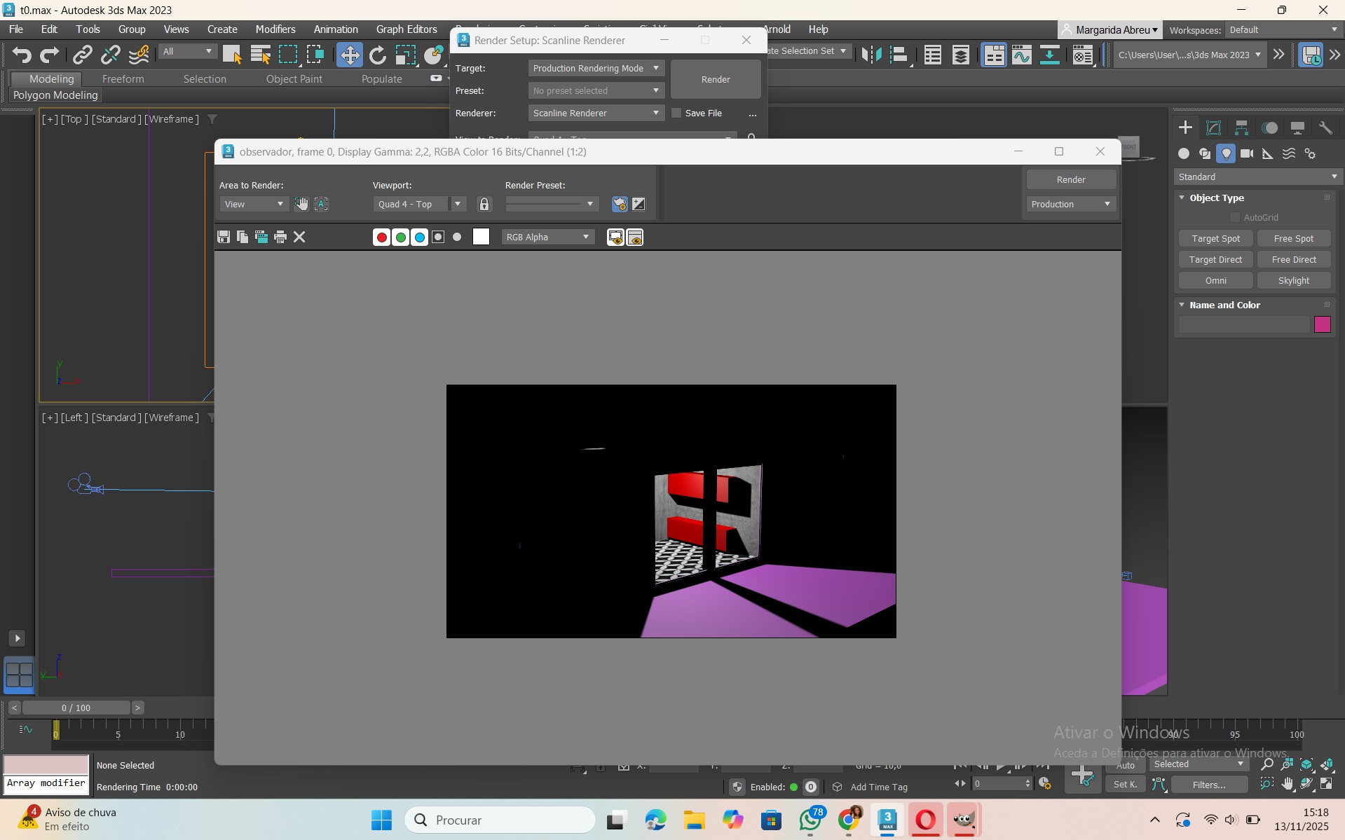 Colocação de outra câmera e outra experiência com o comando Rendering.
