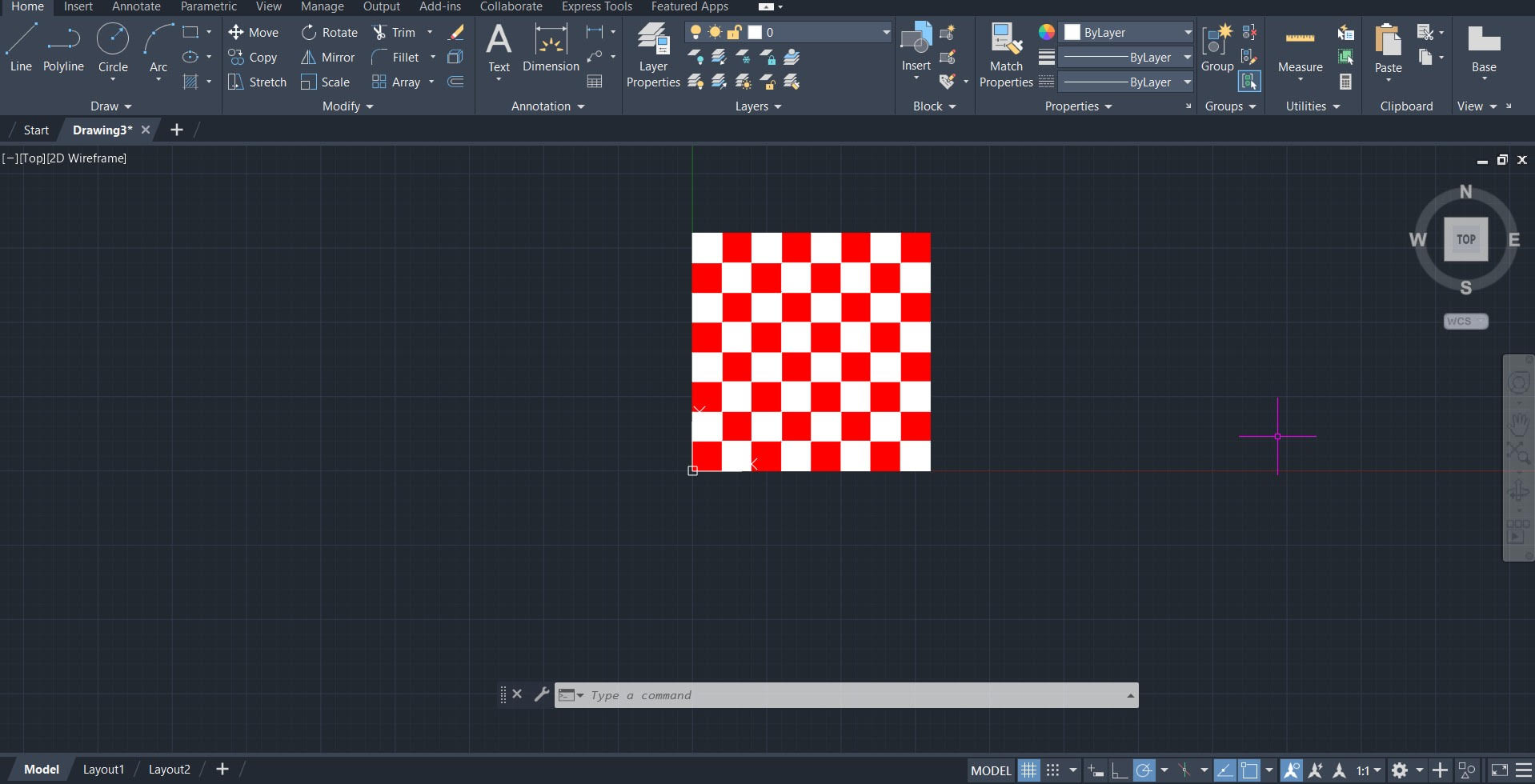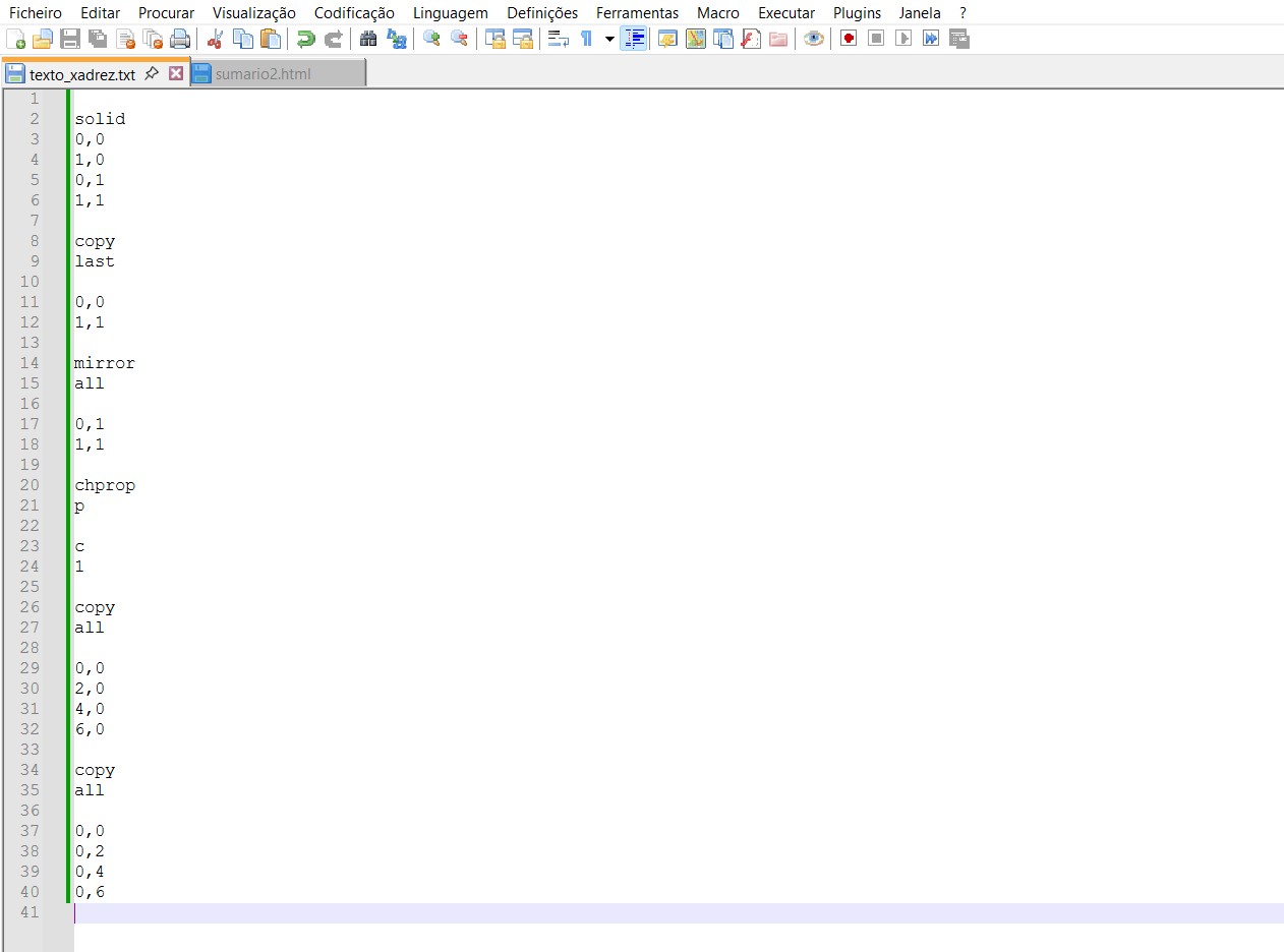 Anotação do processo de representação de um xadrez no AutoCAD, num ficheiro de texto.