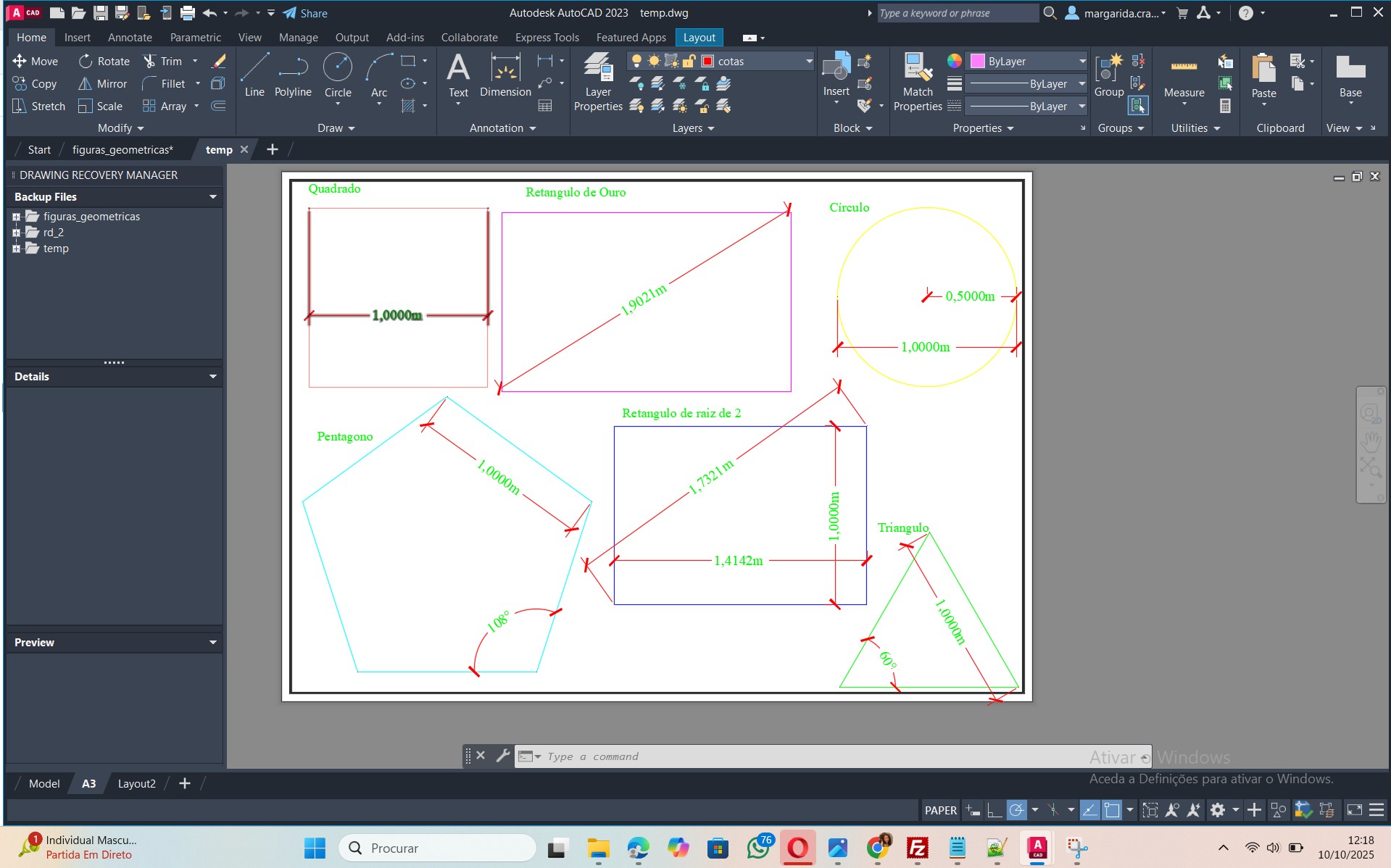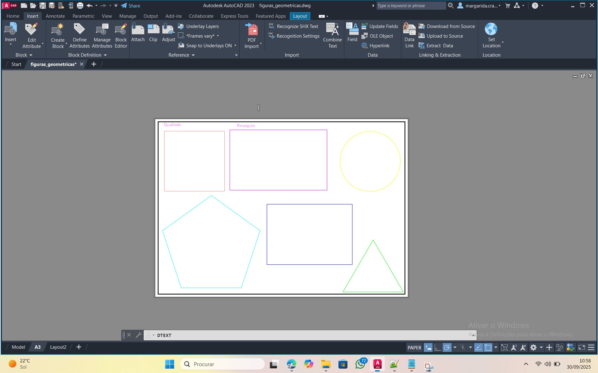 Conclusão do exercício das figuras geométricas no AutoCAD.