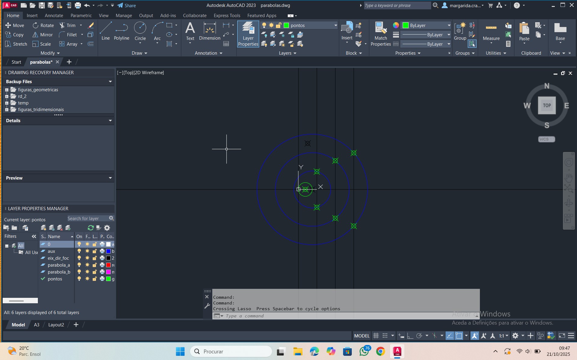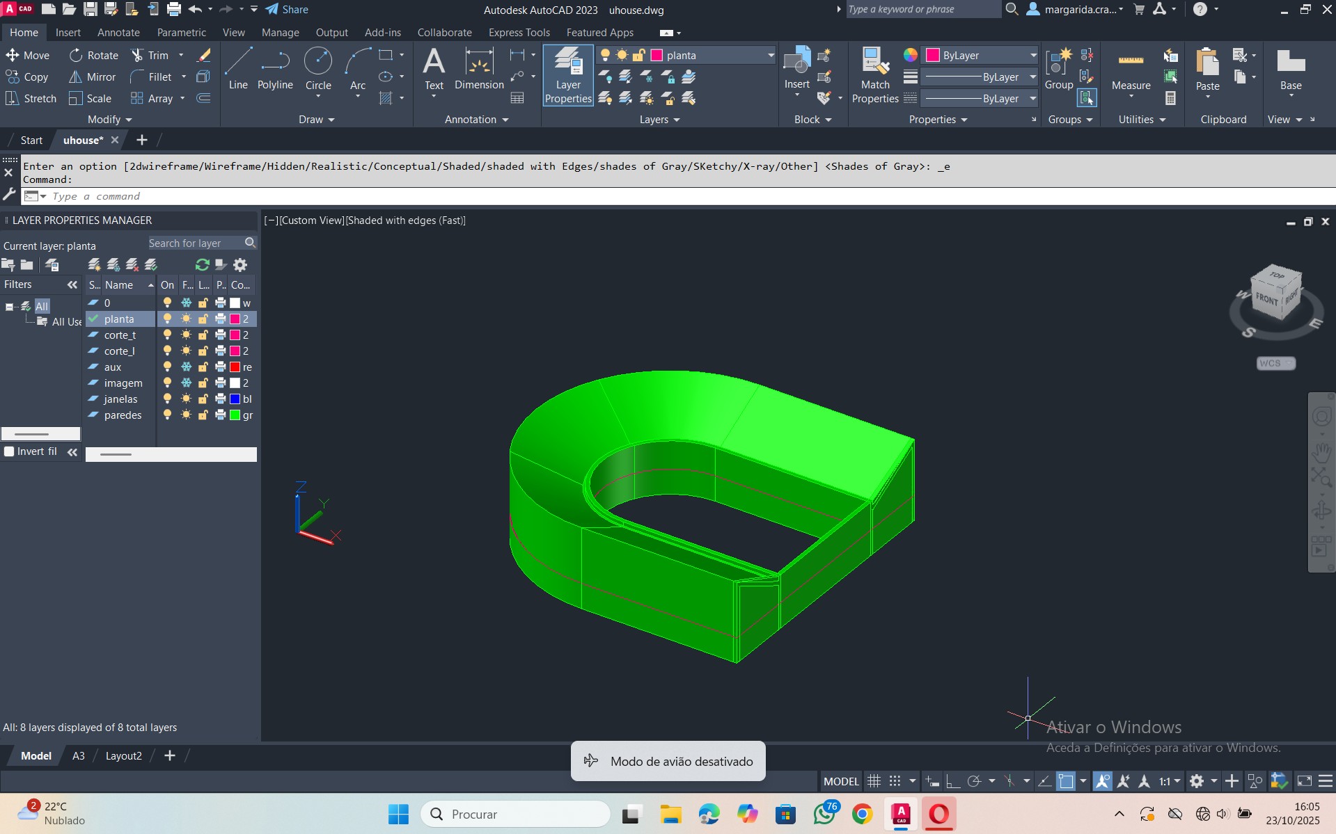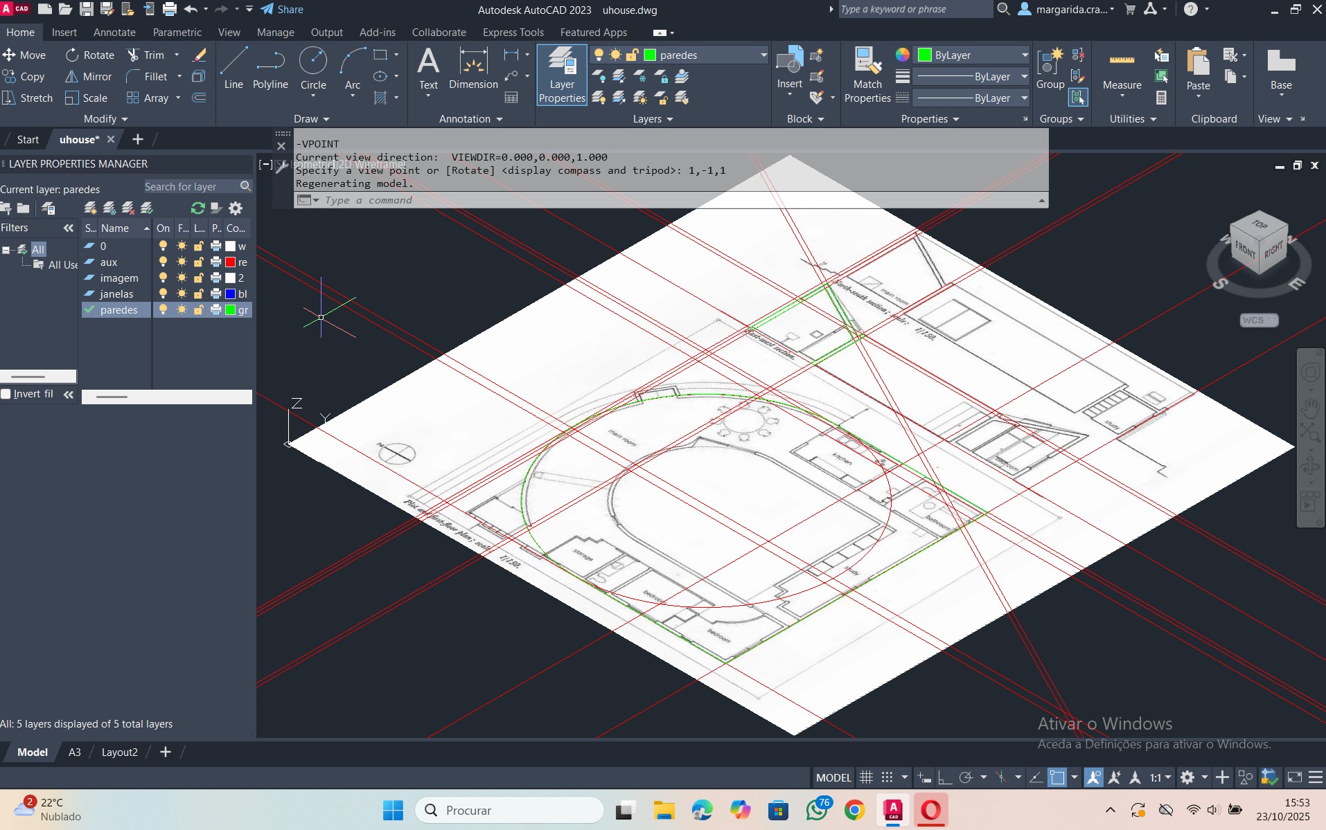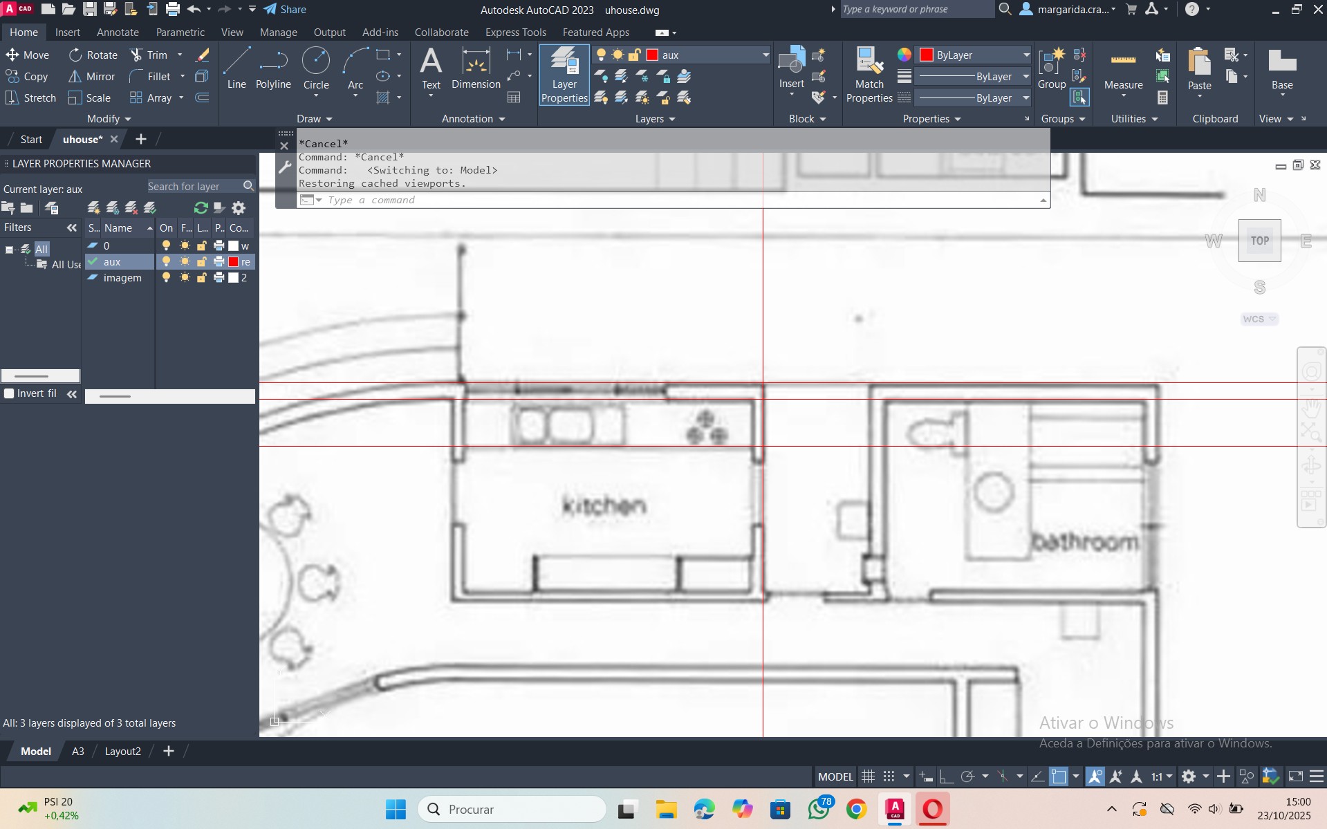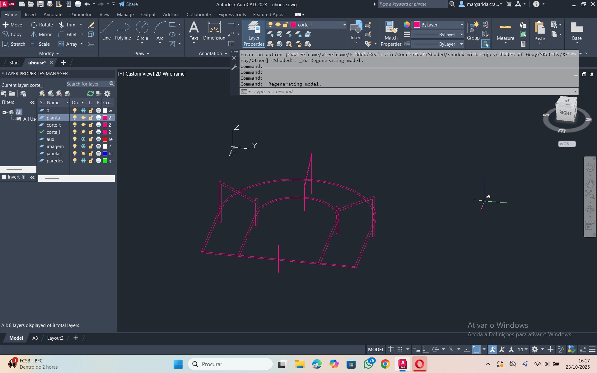 Início de um novo exercício de importação e manuseamento de uma planta, relacionada com a disciplina de Projeto, num novo ficheiro AutoCAD.