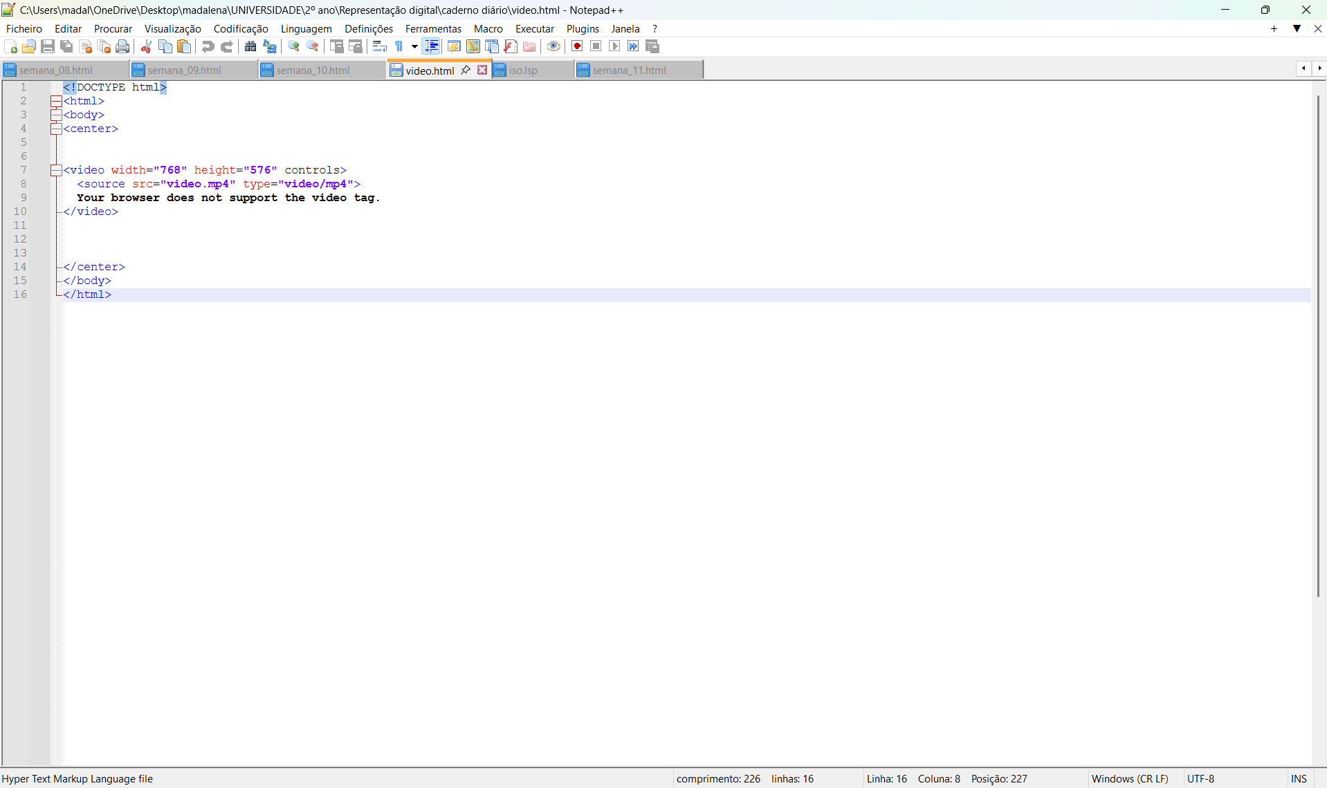 Cópia e modificação de um texto html que permite a inserção de vídeos.